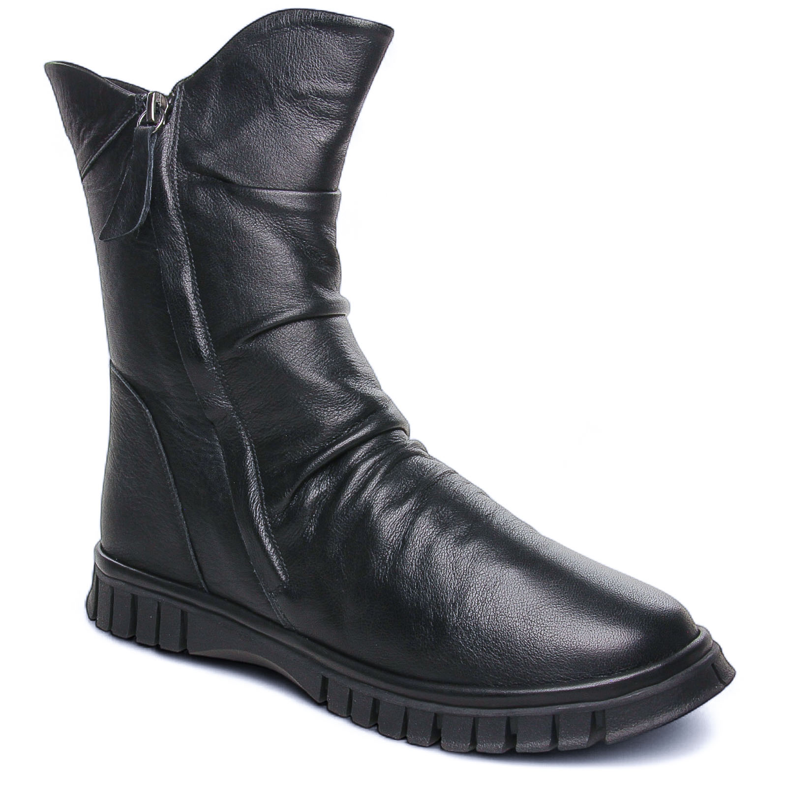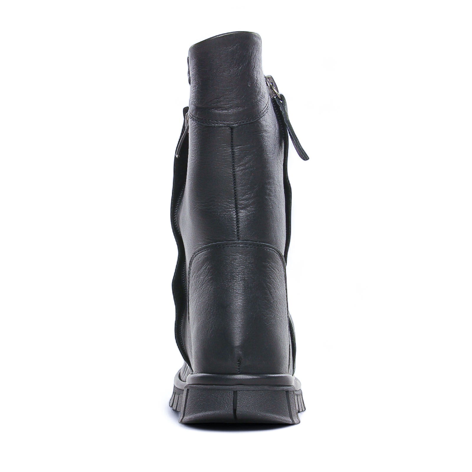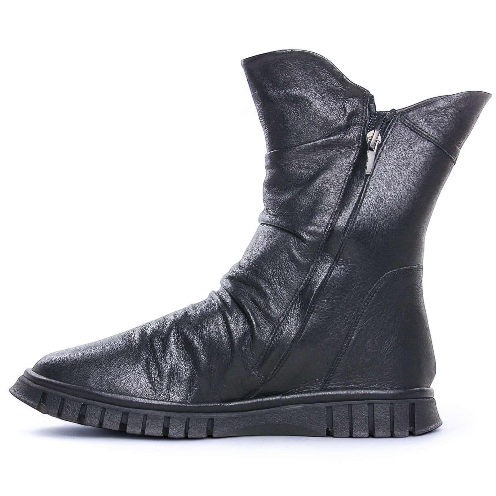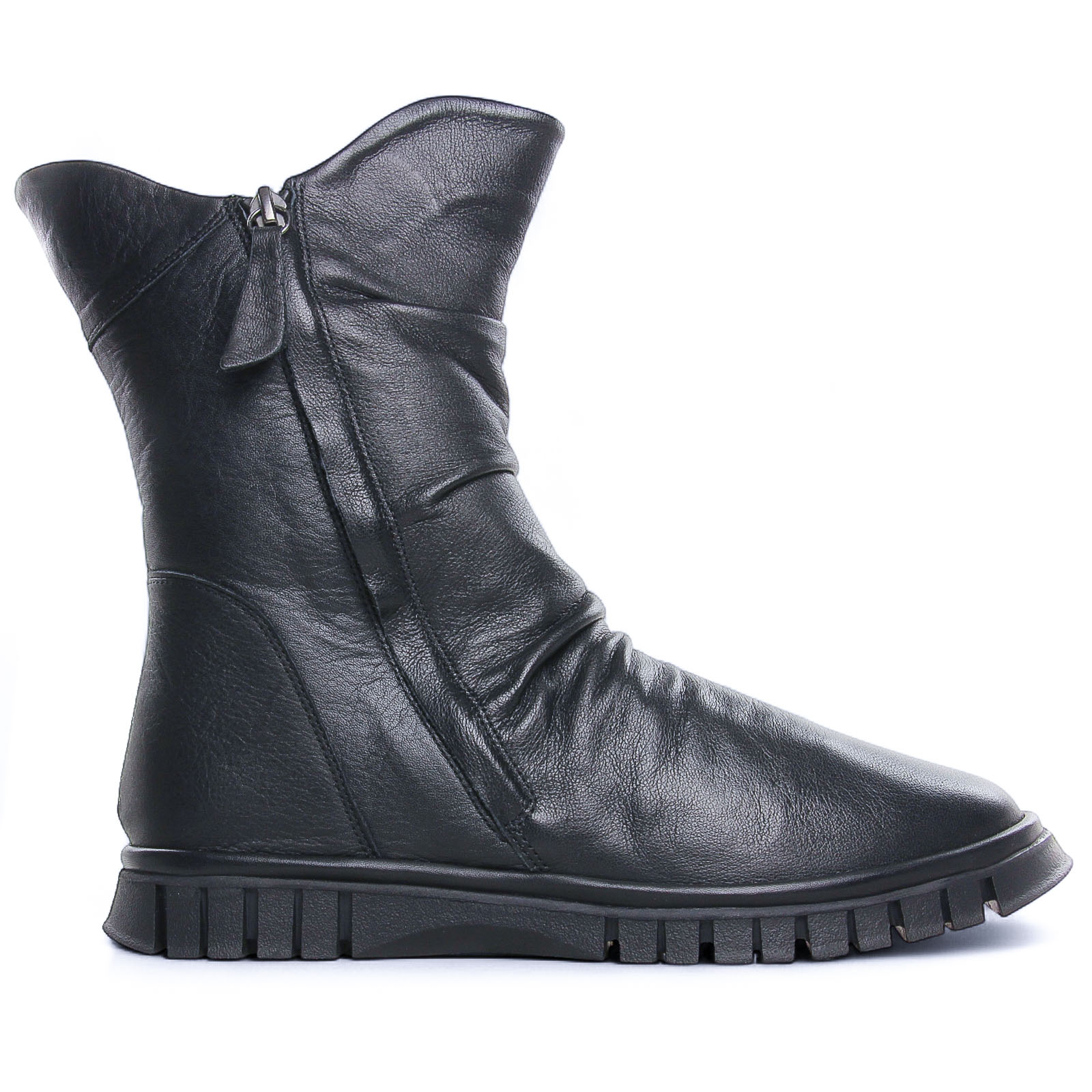 Boots de la marque Altex de couleur noir. Boots à tige haute en cuir, hauteur de tige 13 cm au dessus du coup de pied, inspiration bikerboots, un double zip de chaque coté pour un enfilage plus facile, doublure intérieure en textile chaud, une première en cuir, une semelle externe en caoutchouc anti-dérapante.