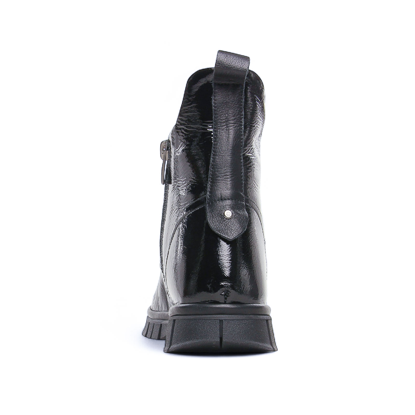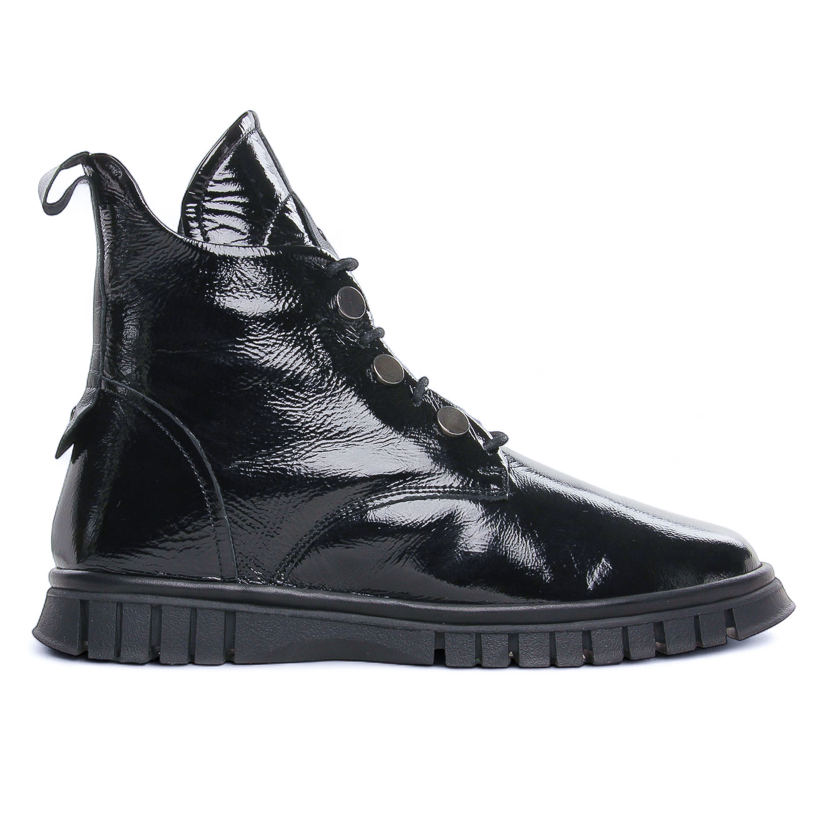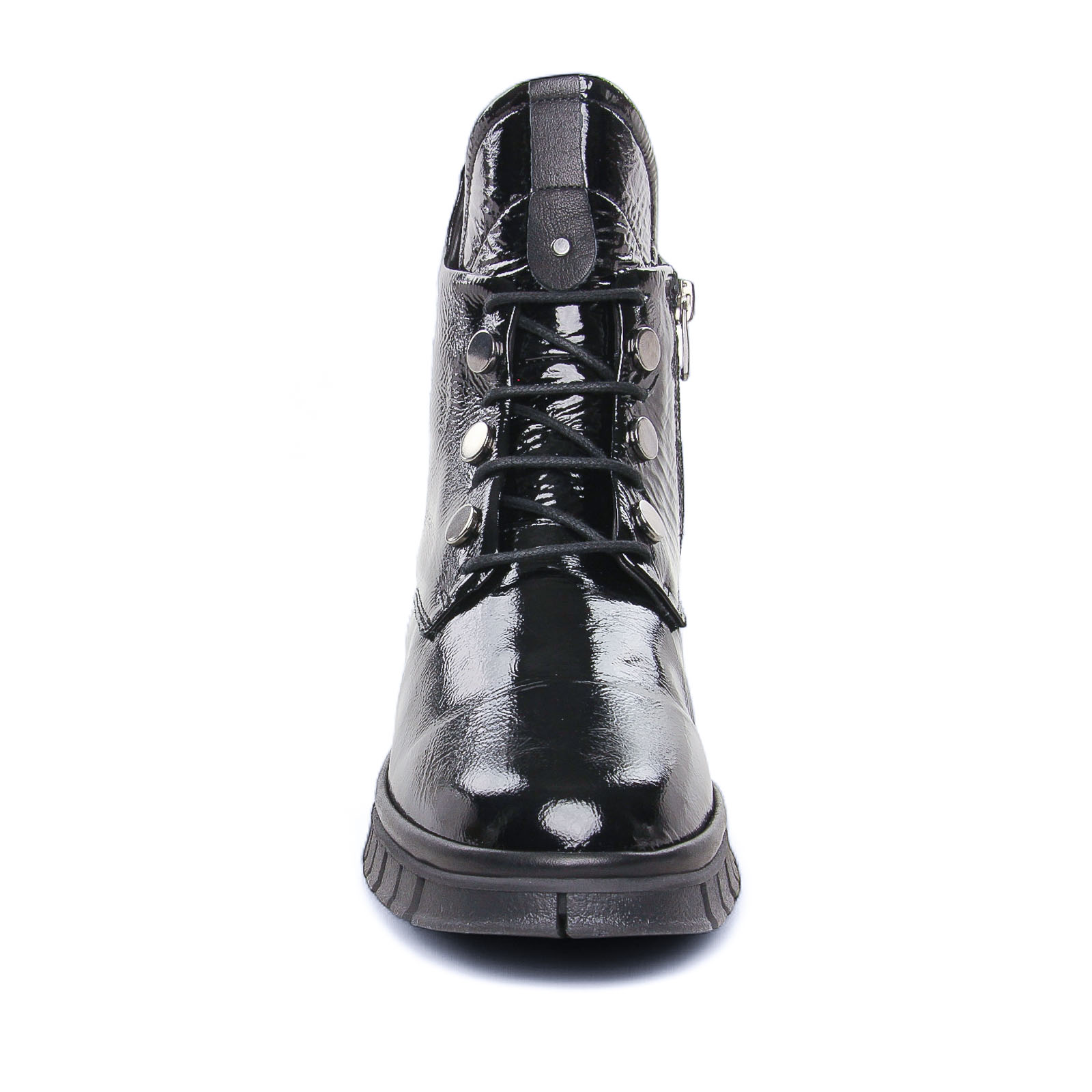 Bottines À Lacets de la marque Altex de couleur noir. Chaussures montantes avec une tige en cuir vernis noir, bottines doublée avec un textile chaud, un zip et des lacets, les passants des lacets avec un effet métal pour une touche glamour supplémentaire, semelle externe en caoutchouc, anti dérapante.