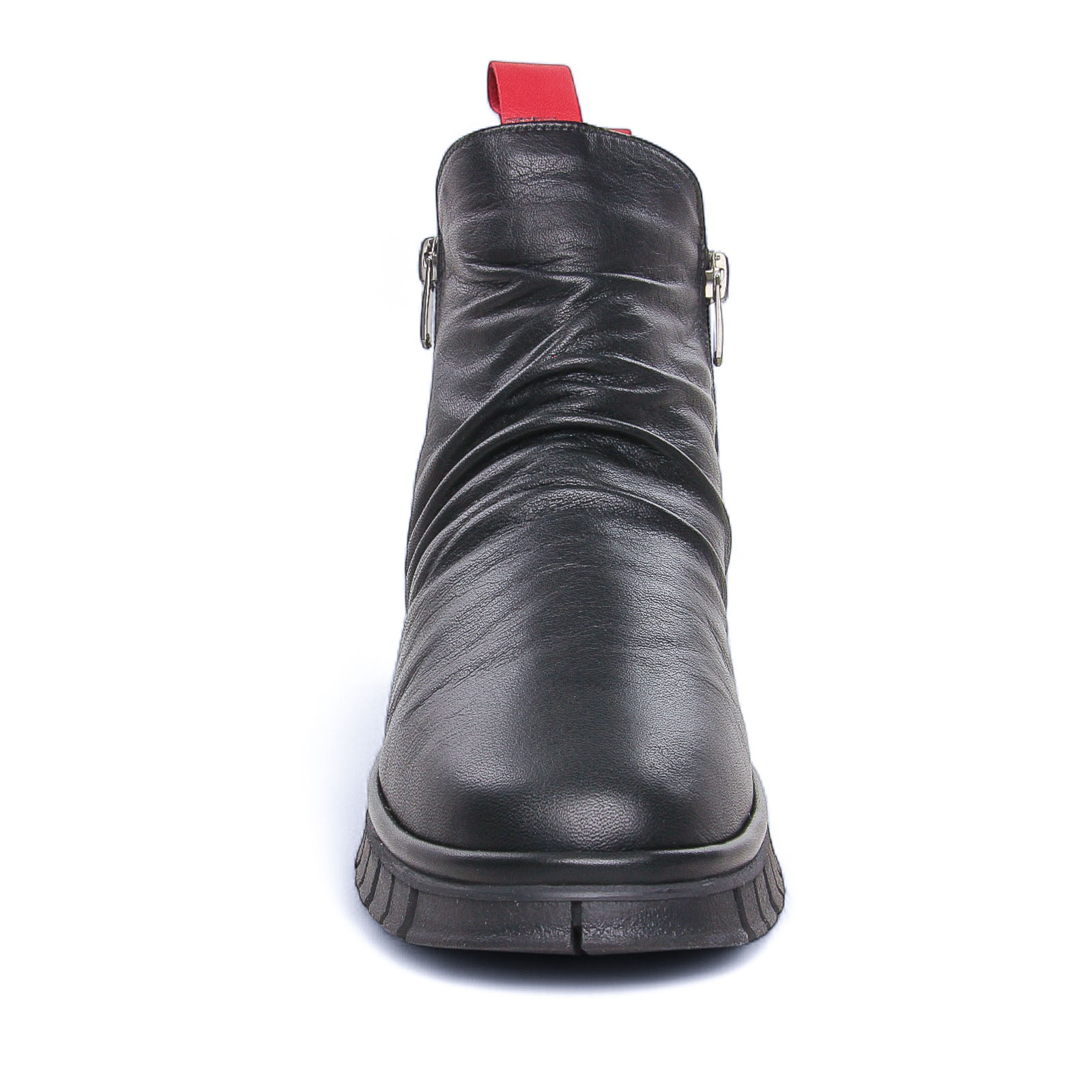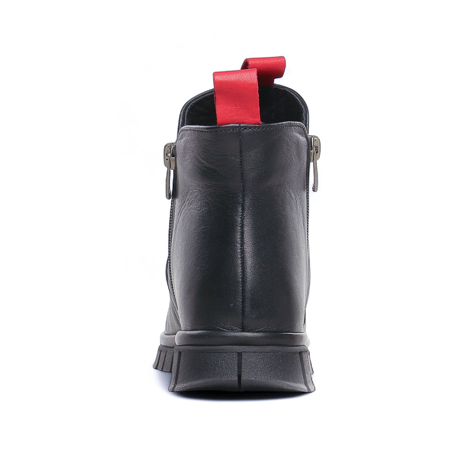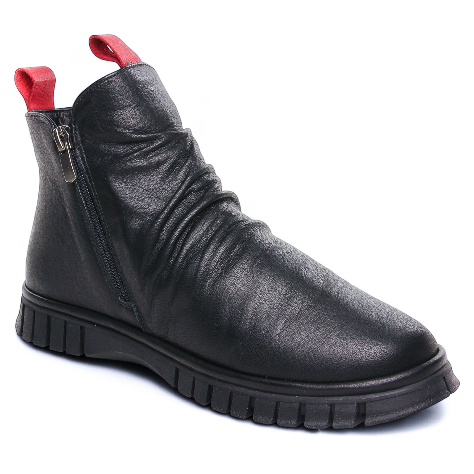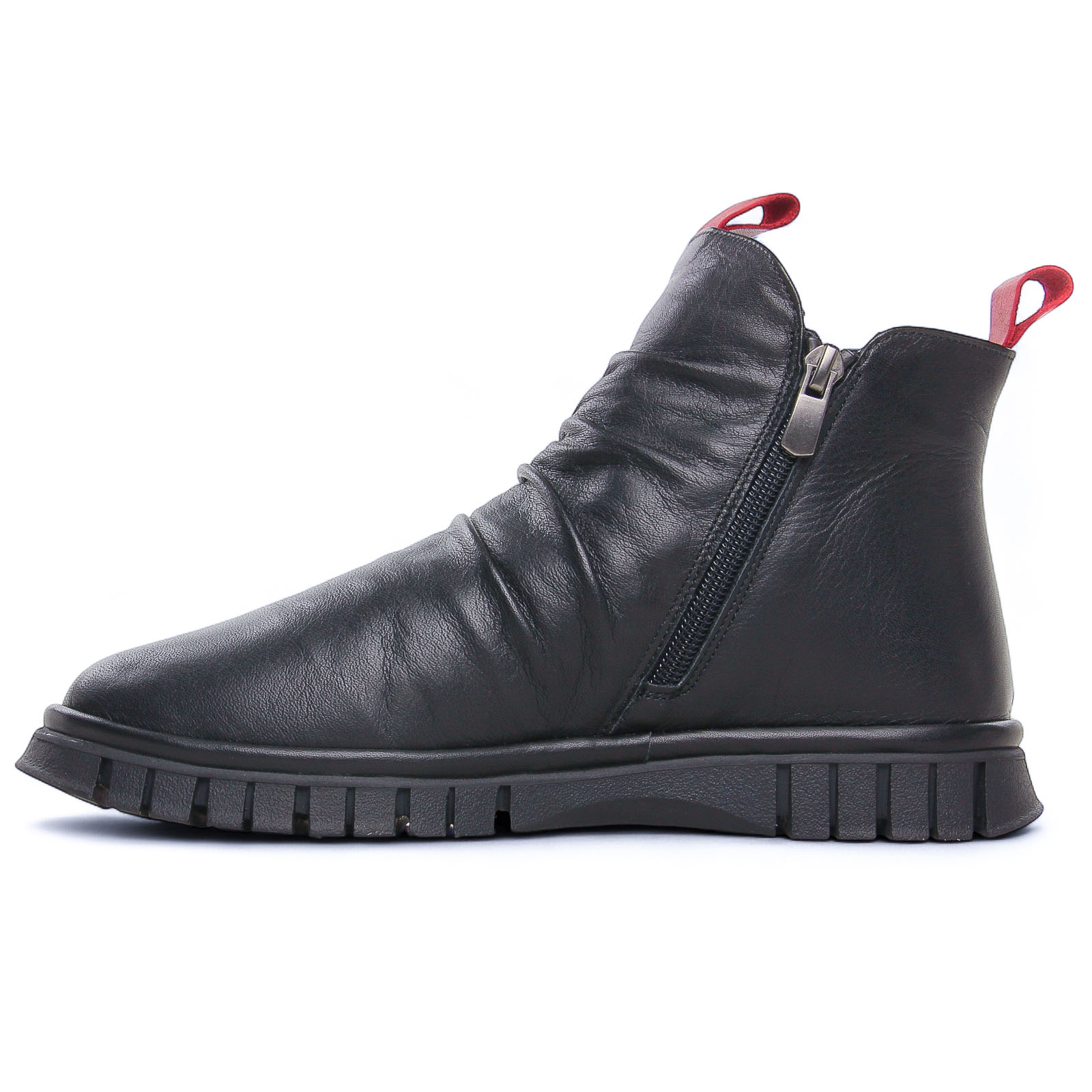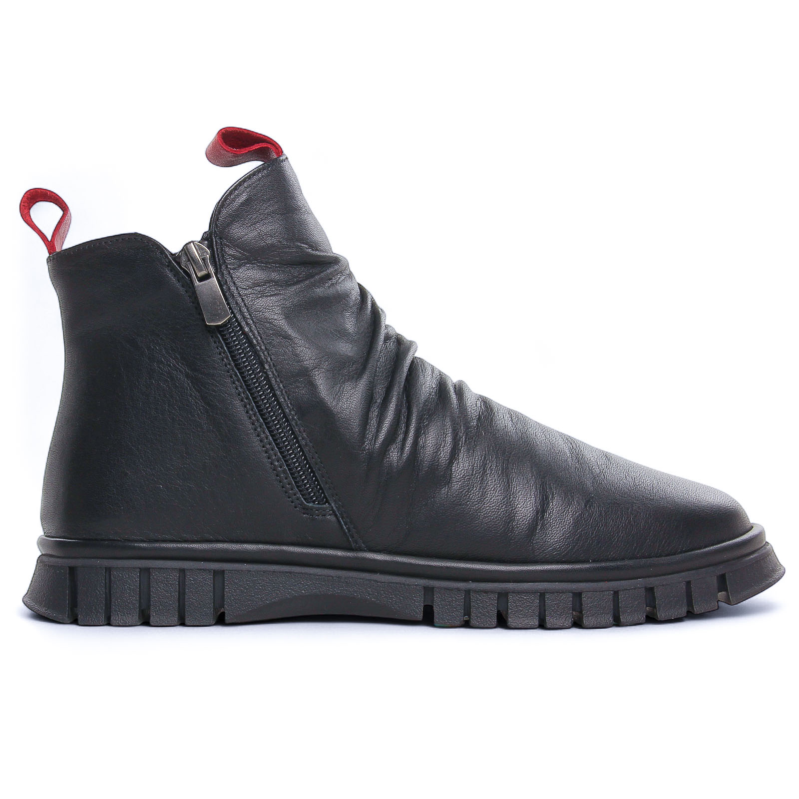 Boots de la marque Altex de couleur noir. Jolies bottines en cuir noir ou rouge, doublées polaire, chaussant large, 2 fermetures à glissières sur chaque coté pour une chausse aisée, une première de propreté en cuir, plateau d'une hauteur de 2 cm, une semelle externe en caoutchouc et anti-glisse.