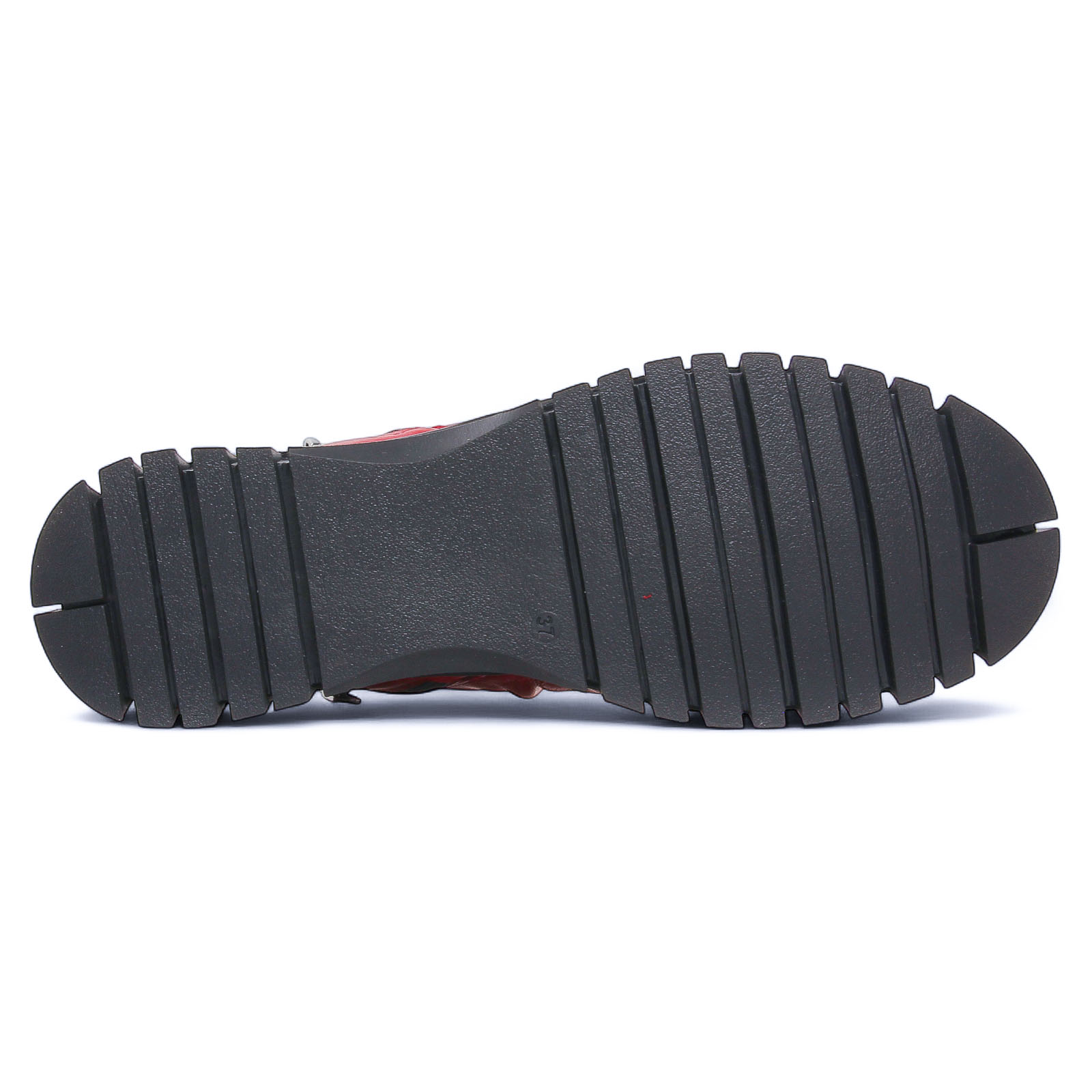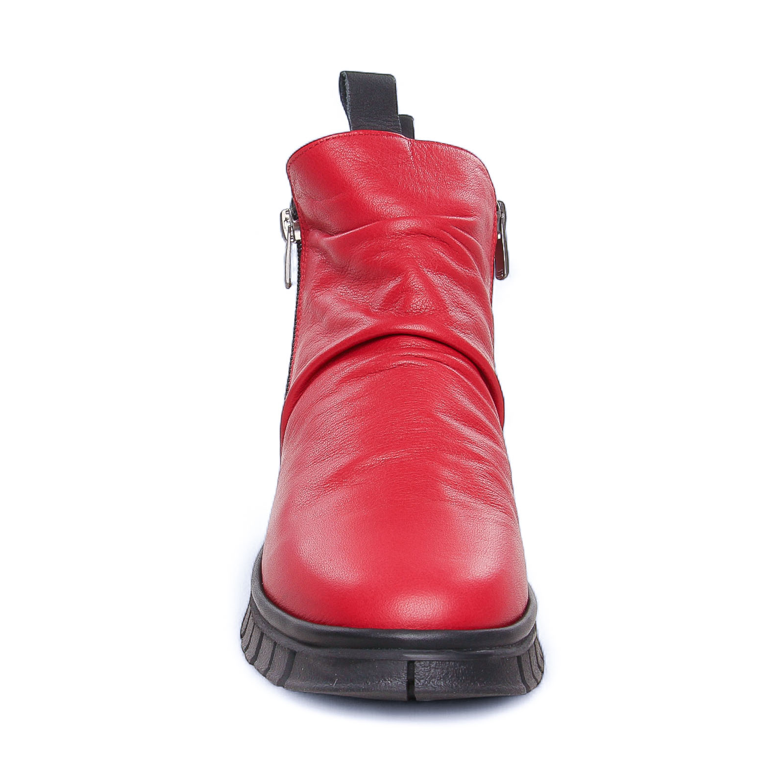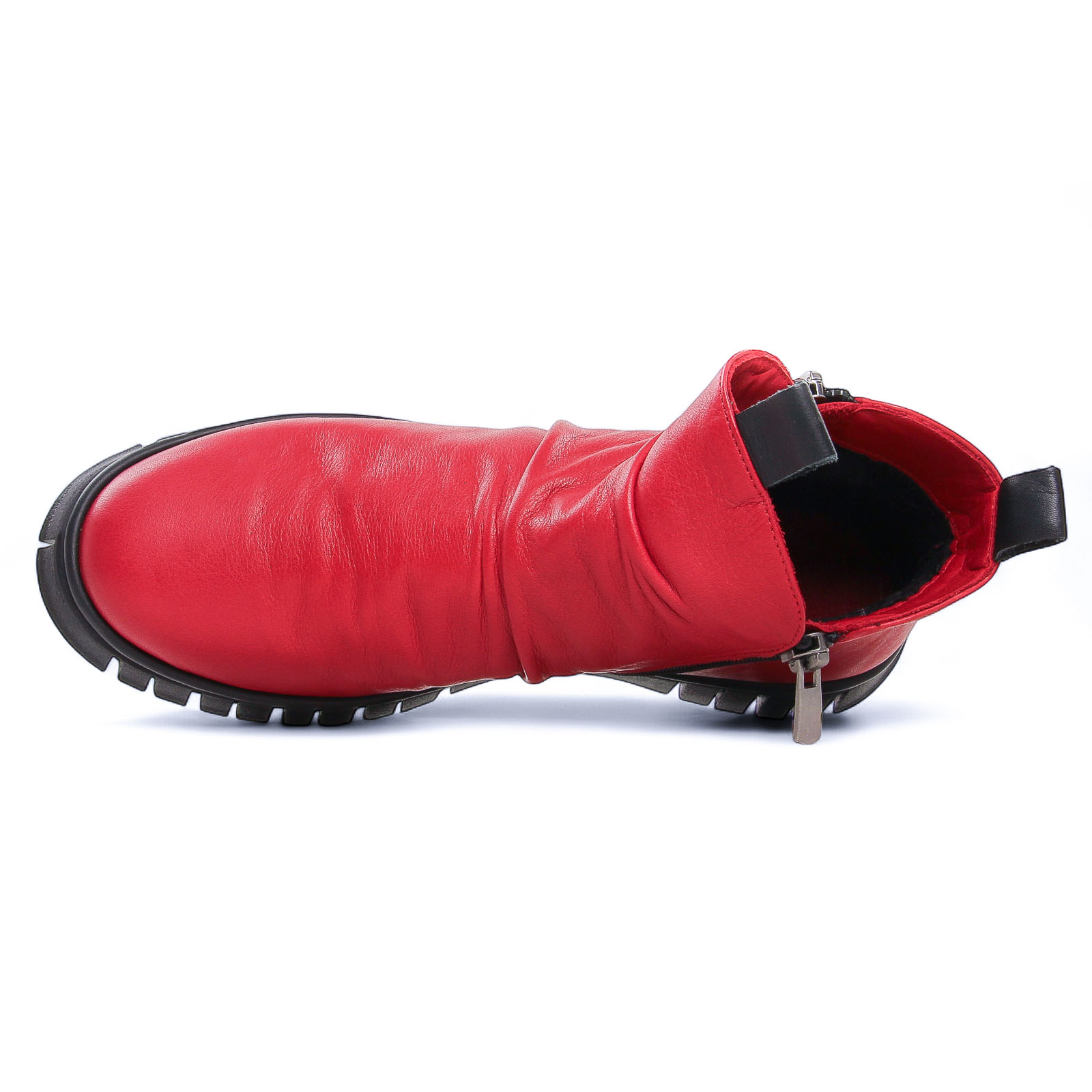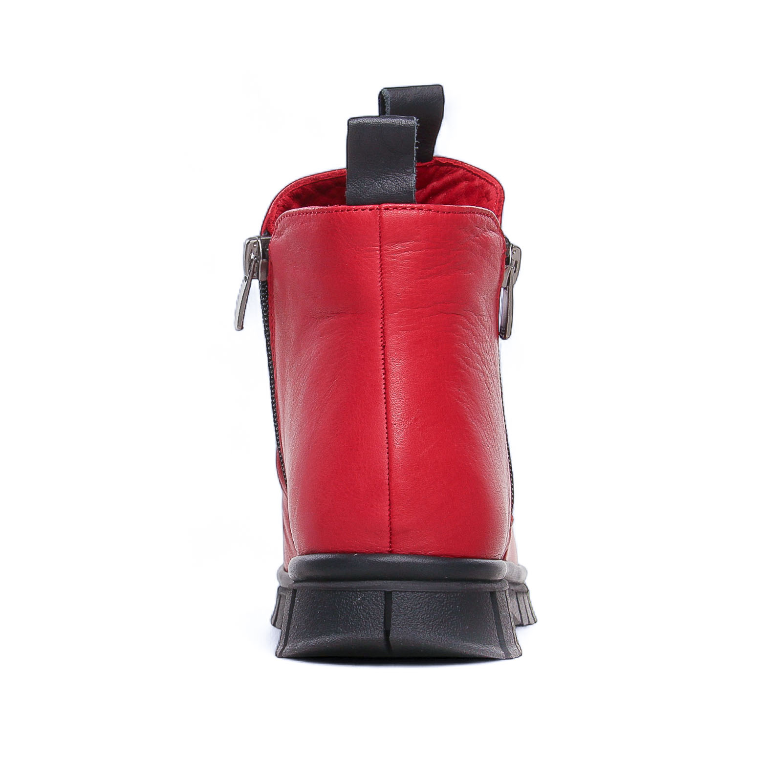Boots de la marque Altex de couleur rouge. Jolies bottines en cuir noir ou rouge, doublées polaire, chaussant large, 2 fermetures à glissières sur chaque coté pour une chausse aisée, une première de propreté en cuir, plateau d'une hauteur de 2 cm, une semelle externe en caoutchouc et anti-glisse.