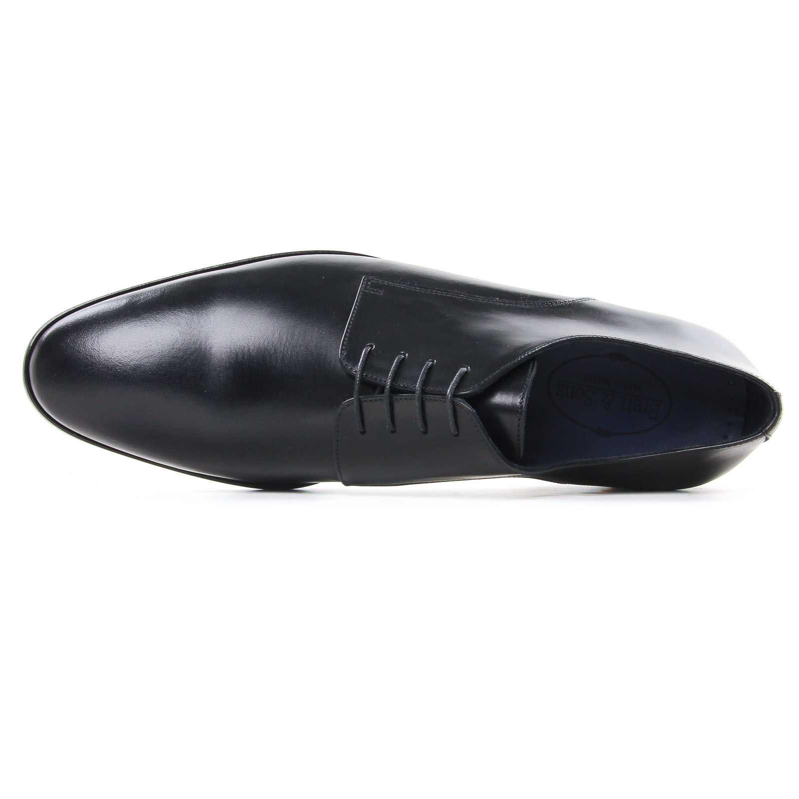 Derbies de la marque Brett And Sons de couleur noir. Superbes derbies chics et élégantes, tige en cuir noir ou en marron gold glacé, chaussures homme signées par la célèbre marque Brett & Sons, doublure cuir, première cuir, semelle souple en cuir, talon recouvert de gomme élastomère.