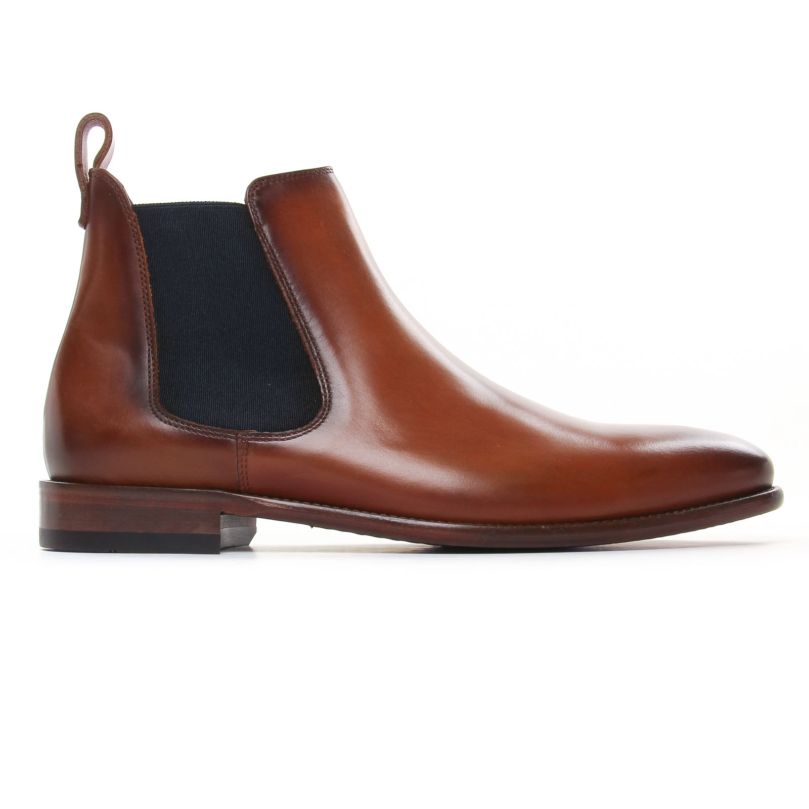 Boots de la marque Brett And Sons de couleur marron cognac. Boots Chelsea pour un look classique indémodable, confortables et élégantes, tige en cuir, chaussures homme signées par la célèbre marque Brett & Sons, doublure cuir, première cuir, semelle en cuir souple, talon en gomme élastomère.