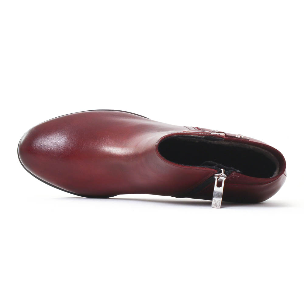 Boots Talon de la marque Caprice de couleur bordeaux. Boots à talon haut de 5 cm, une tige en cuir lisse bordeaux ou noir, tout le confort signé Caprice à l'intérieur : une première de propreté brevetée On Air Insole et un talon antichoc. Un style classique chic assuré !