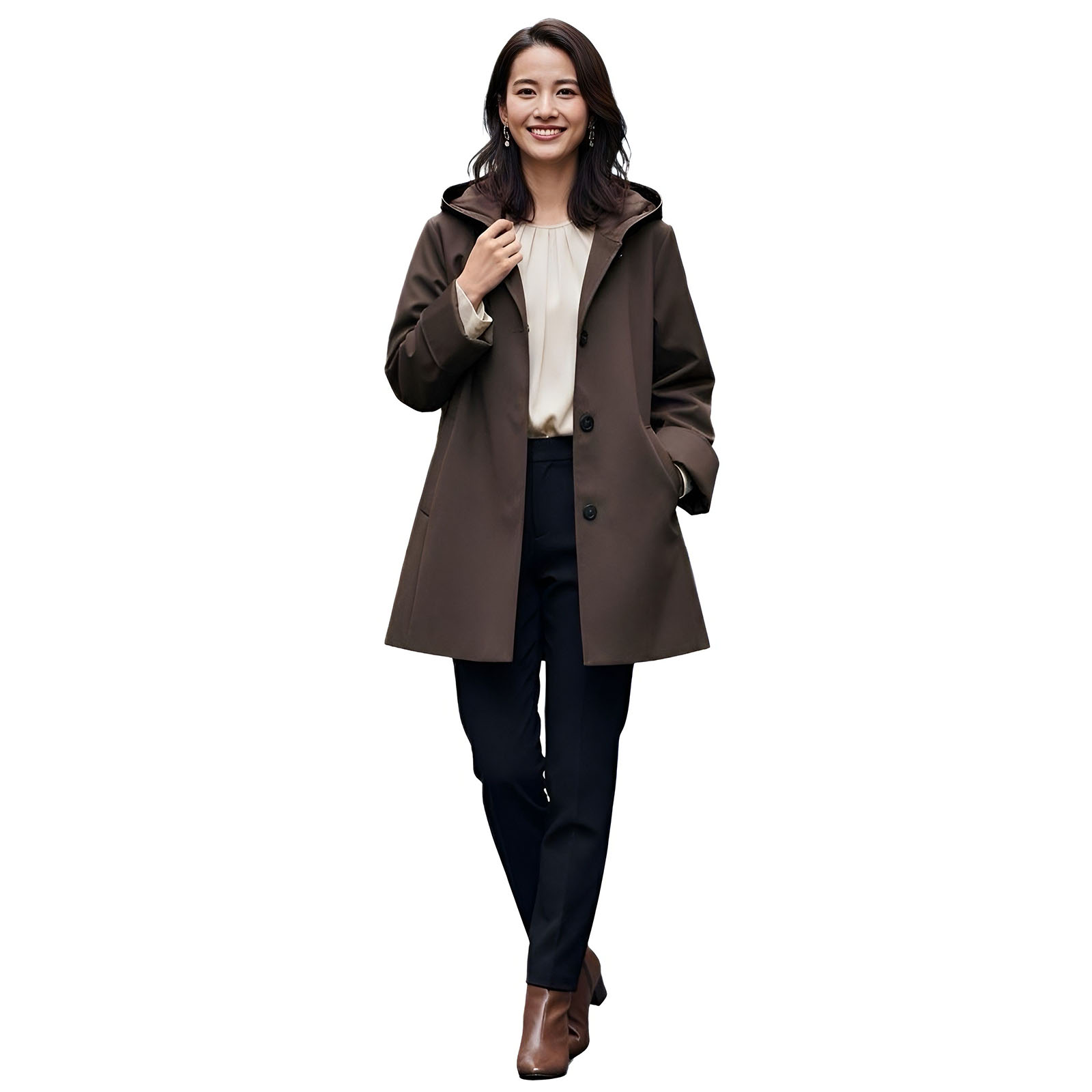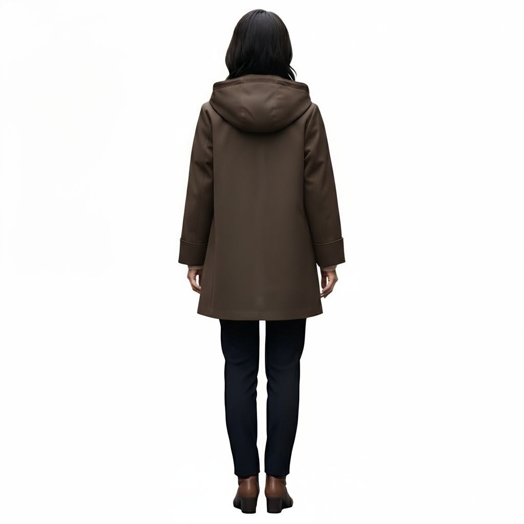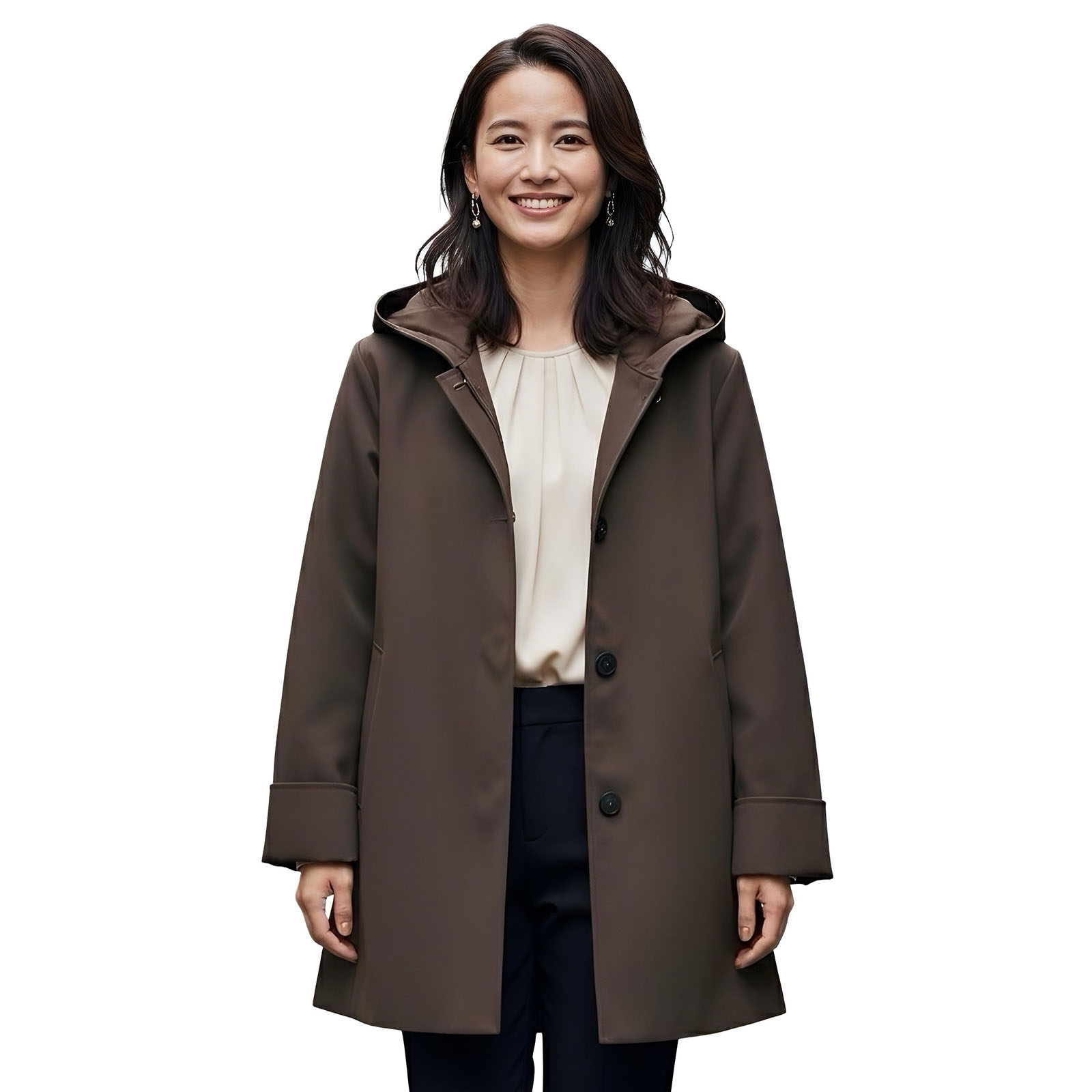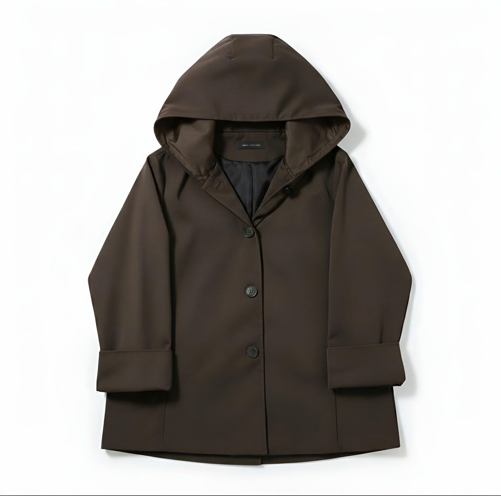 Manteaux de la marque Coutureve de couleur marron. Cet élégant manteau court kaki ou marron est idéal pour la mi-saison, offrant une coupe trapèze flatteuse et un tissu technique parfait pour les intempéries légères. Doté d'une capuche fonctionnelle et d'une fermeture simple à boutons, il allie parfaitement le style décontracté à la sophistication grâce à sa couleur neutre et versatile. Il se porte aisément sur une blouse claire et un pantalon noir pour un look urbain chic et pratique.