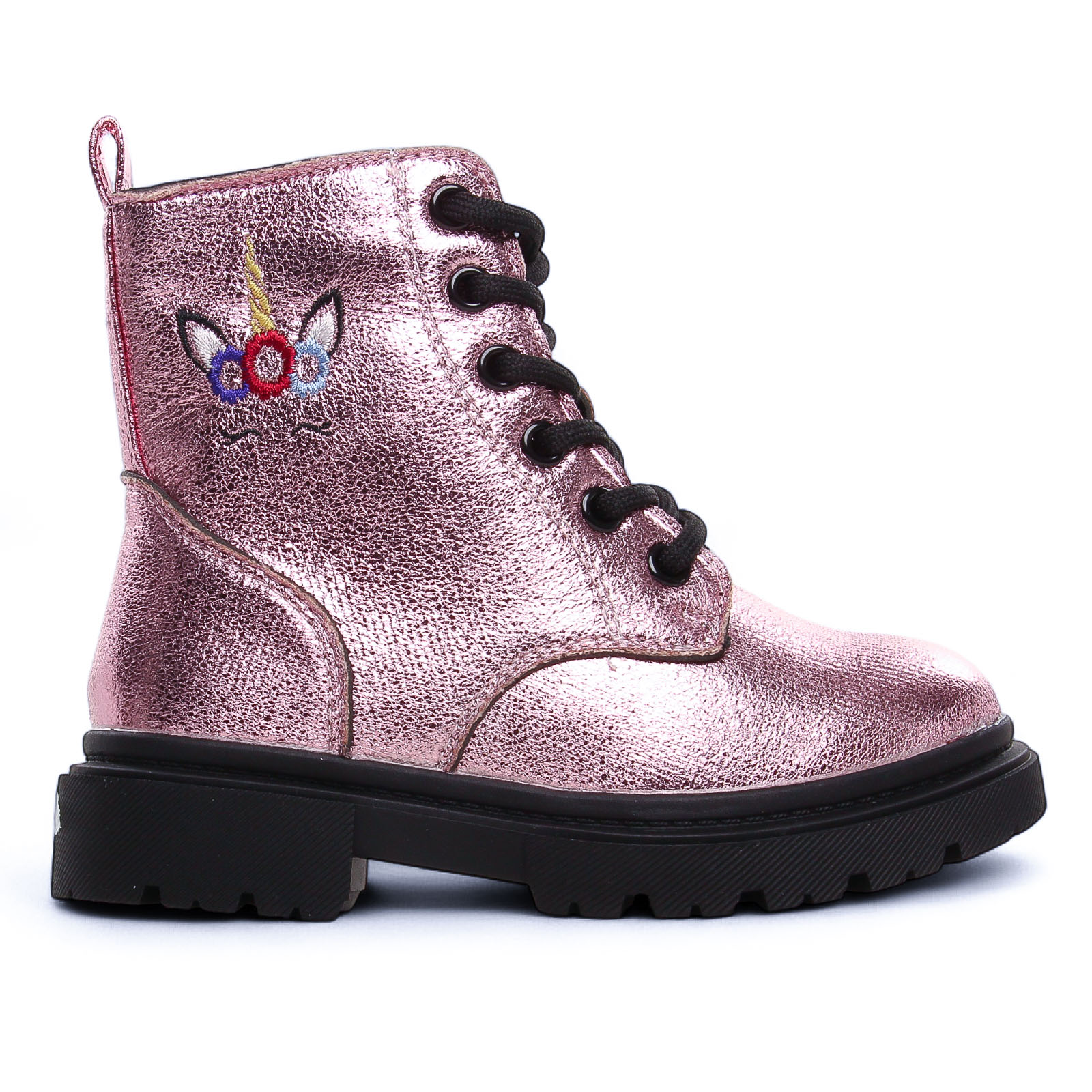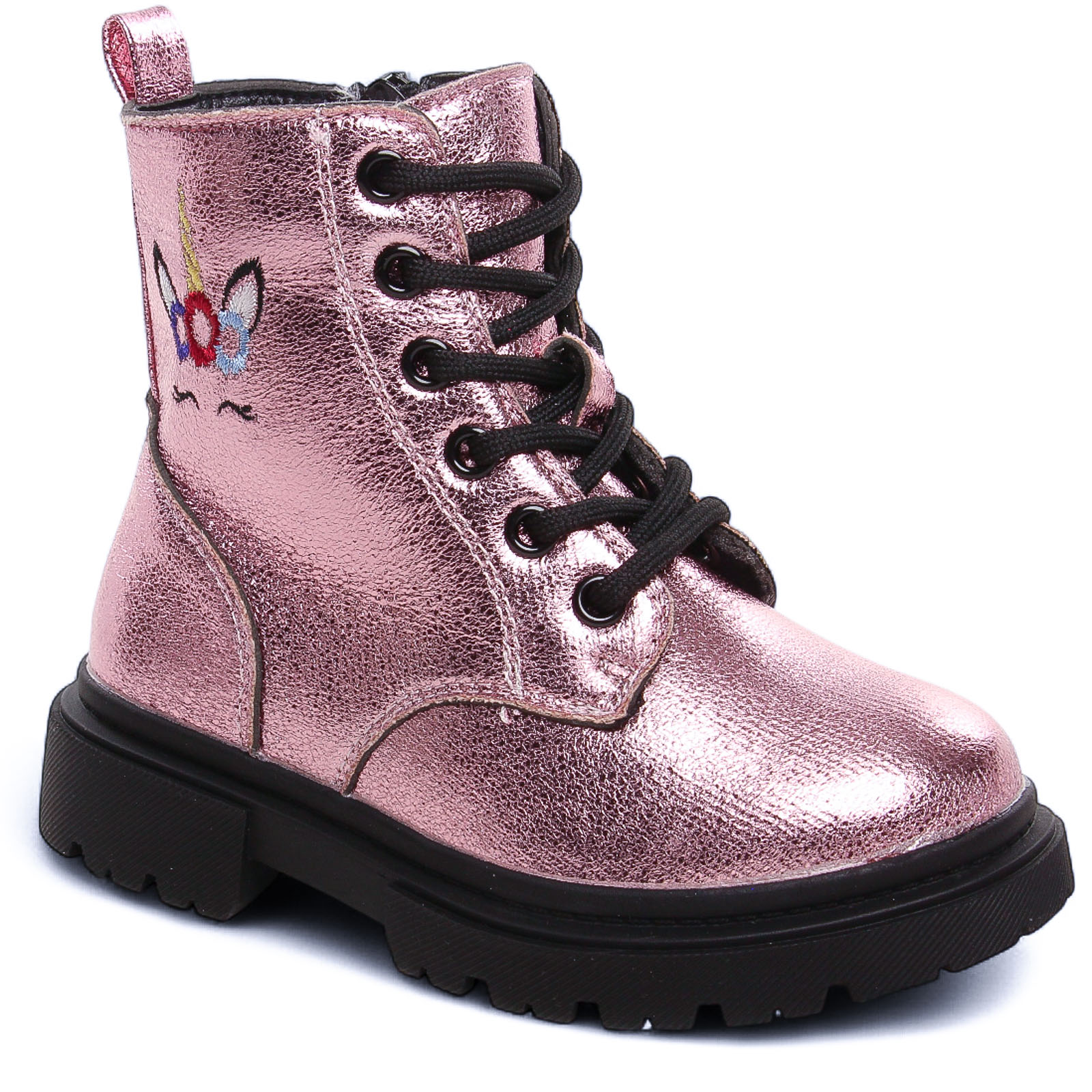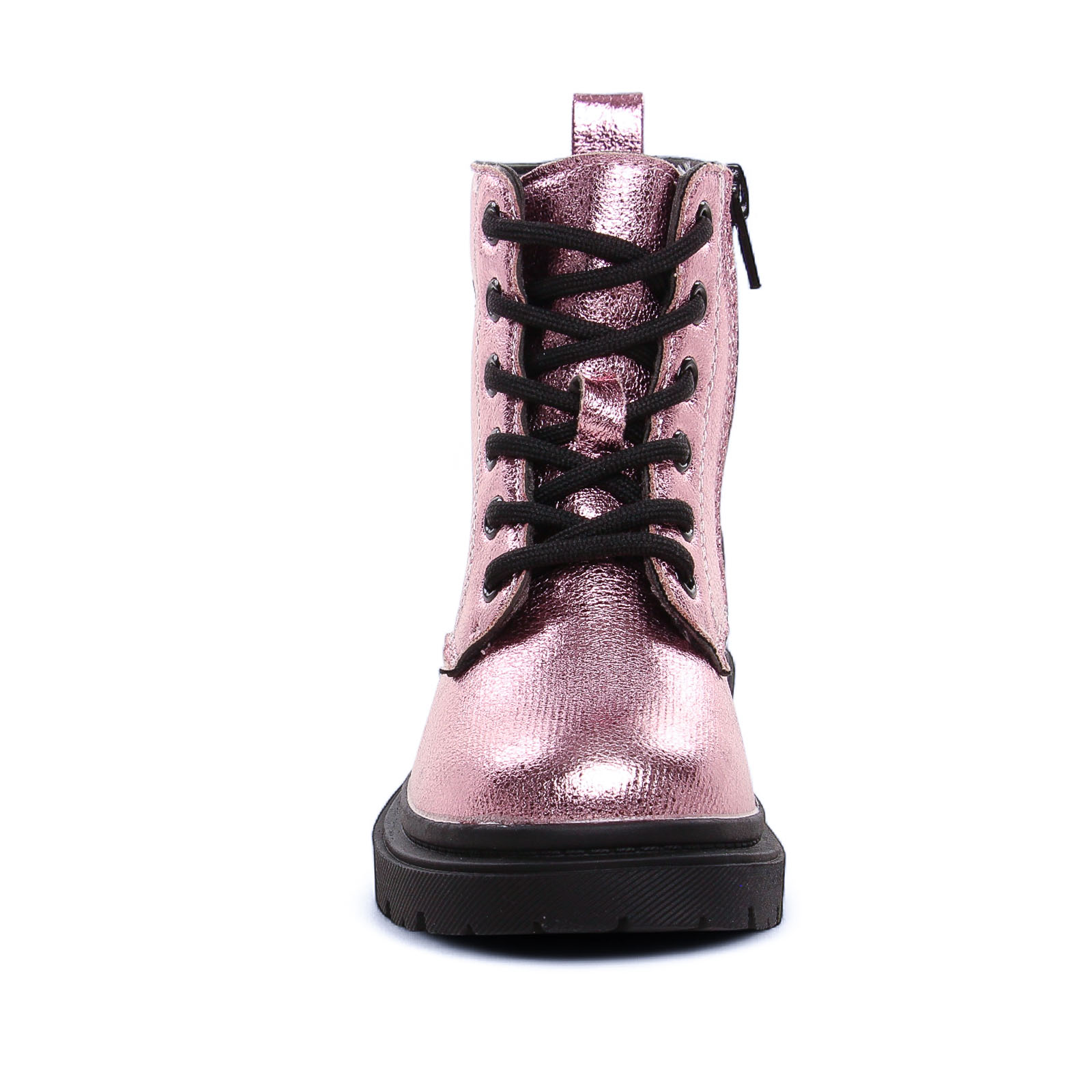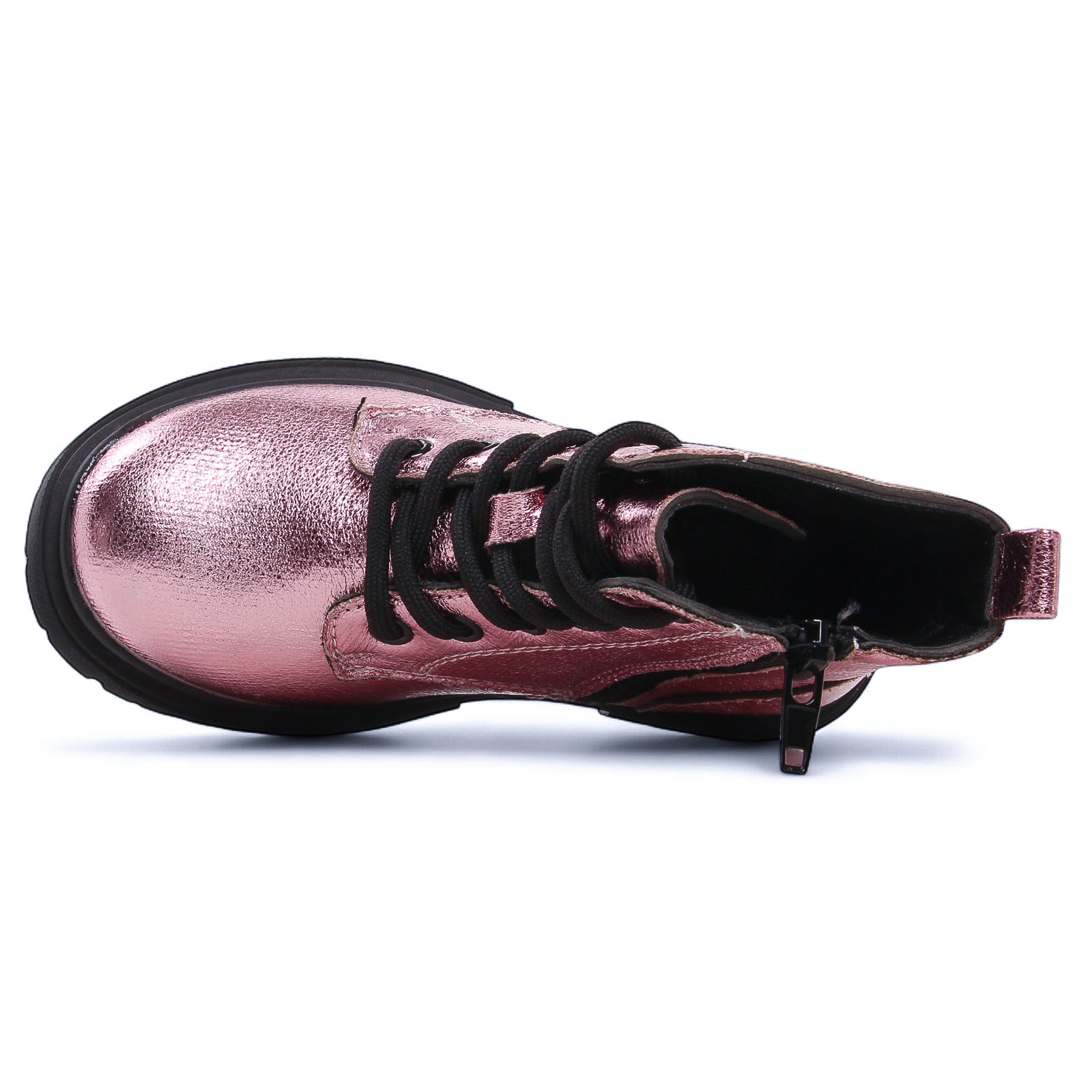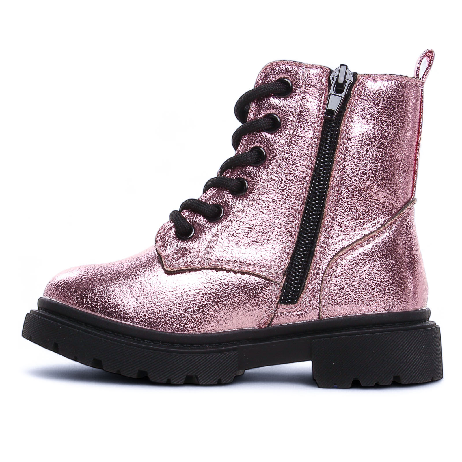 Chaussures Montantes de la marque Happy Bee de couleur rose. Jolies chaussures montantes en simili cuir métallisé or rose, montantes pour enfants, une fermeture lacets et zip, semelle souple, chaussures chics et confortables signées Happy Bee à un prix démocratique !