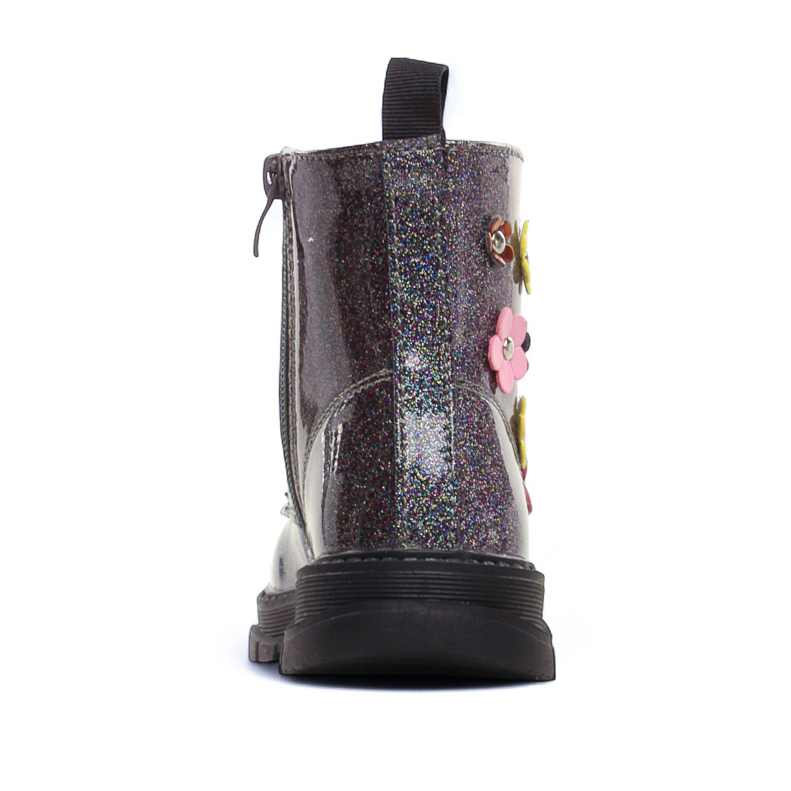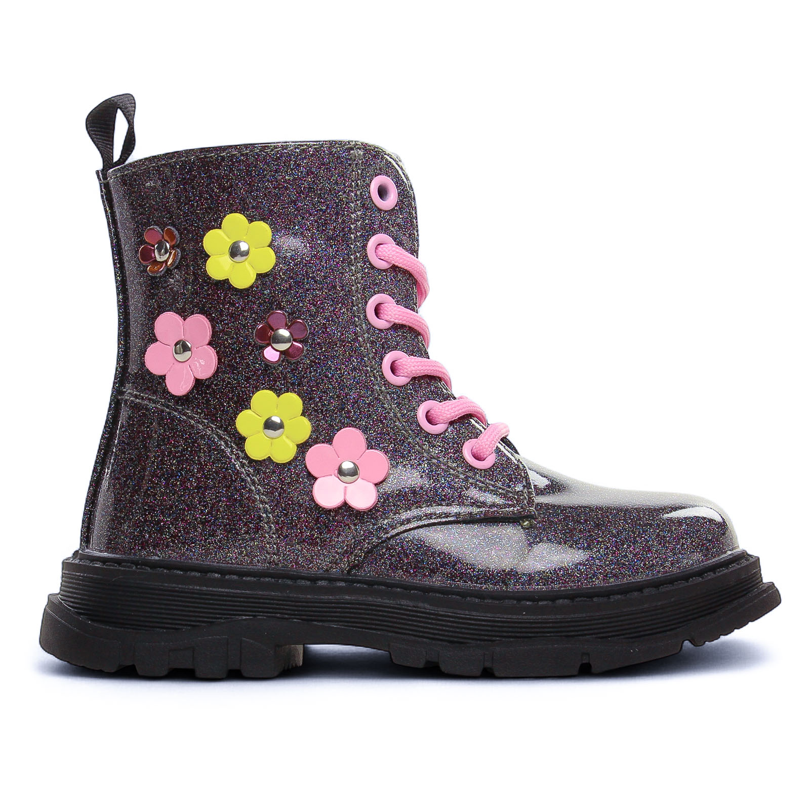Chaussures Montantes de la marque Happy Bee de couleur violet. Jolies chaussures montantes en simili vernis avec des fleurs, montantes pour enfants, une fermeture lacets et zip, semelle souple, chaussures chics et confortables signées Happy Bee à un prix démocratique !