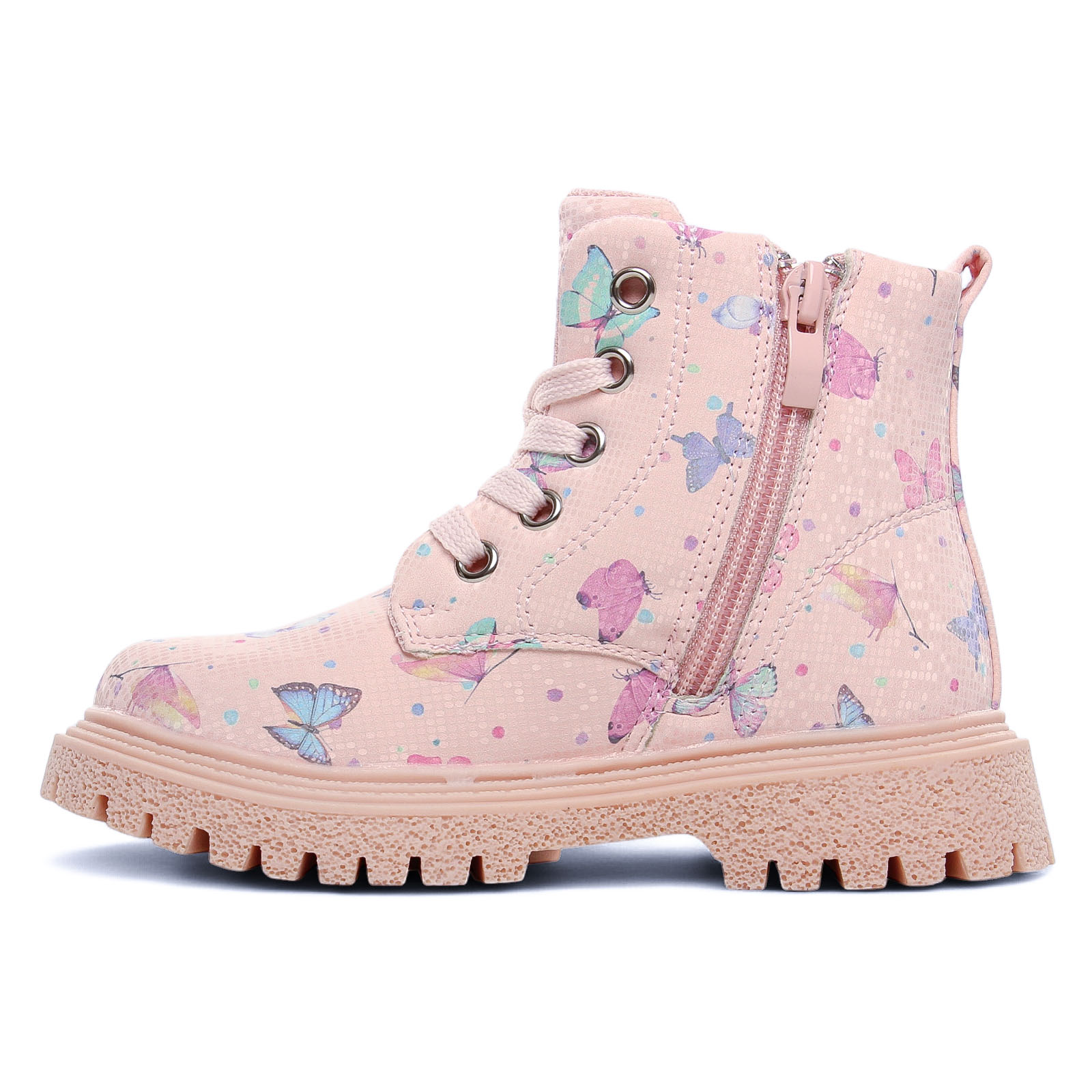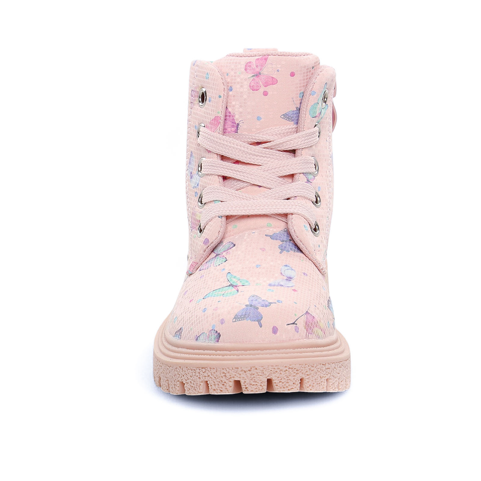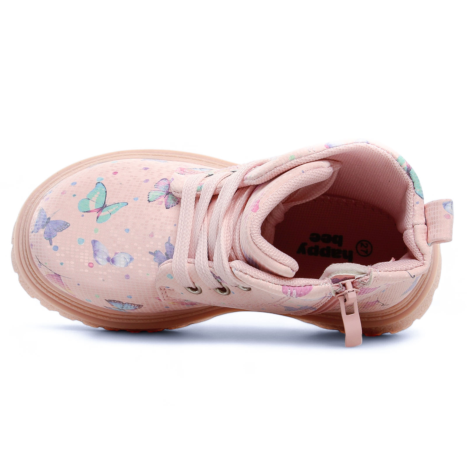 Chaussures Montantes de la marque Happy Bee de couleur rose. Jolies chaussures montantes en toile rose et motifs fleuris, montantes pour enfants, une fermeture lacets et zip, semelle souple, chaussures chics et confortables signées Happy Bee à un prix démocratique !