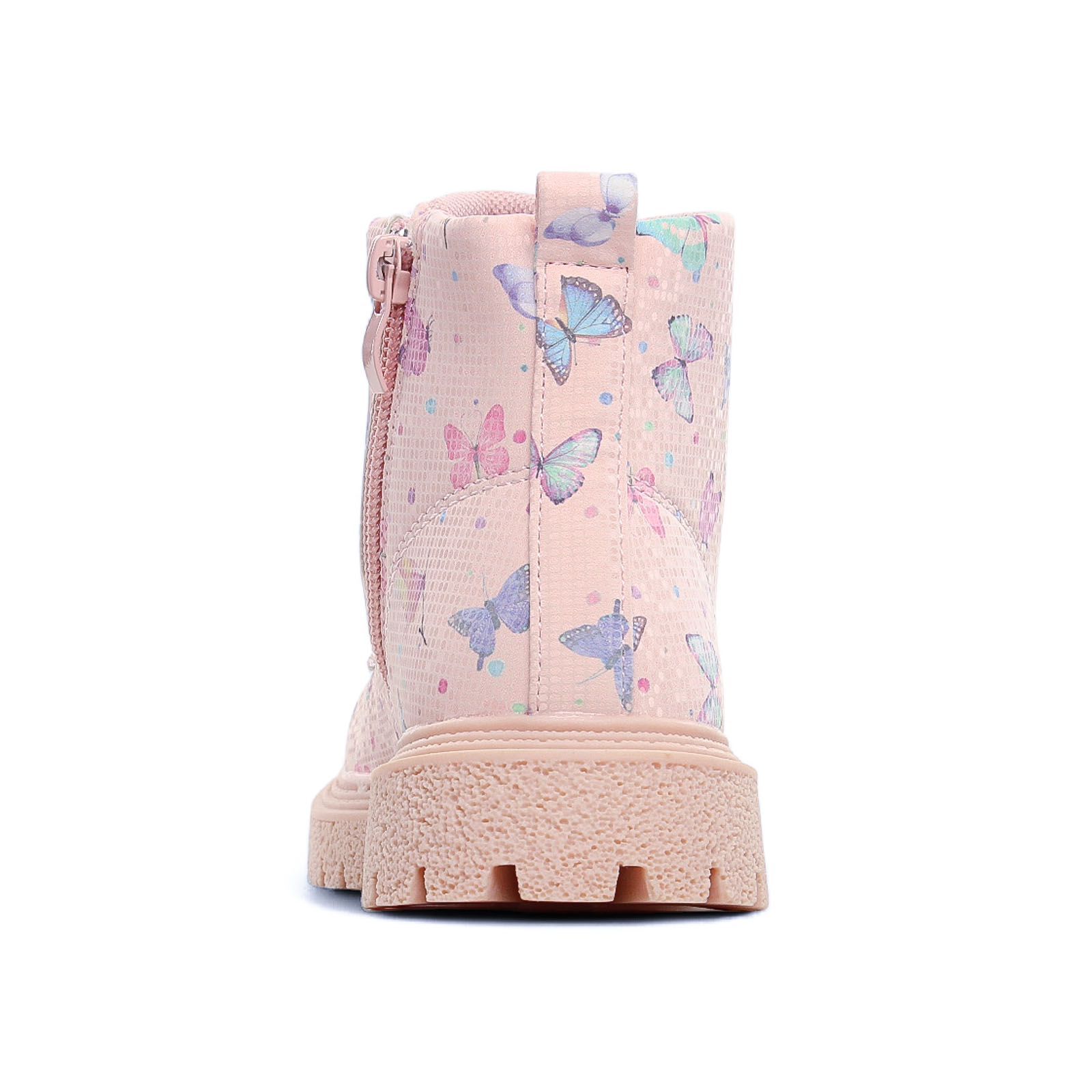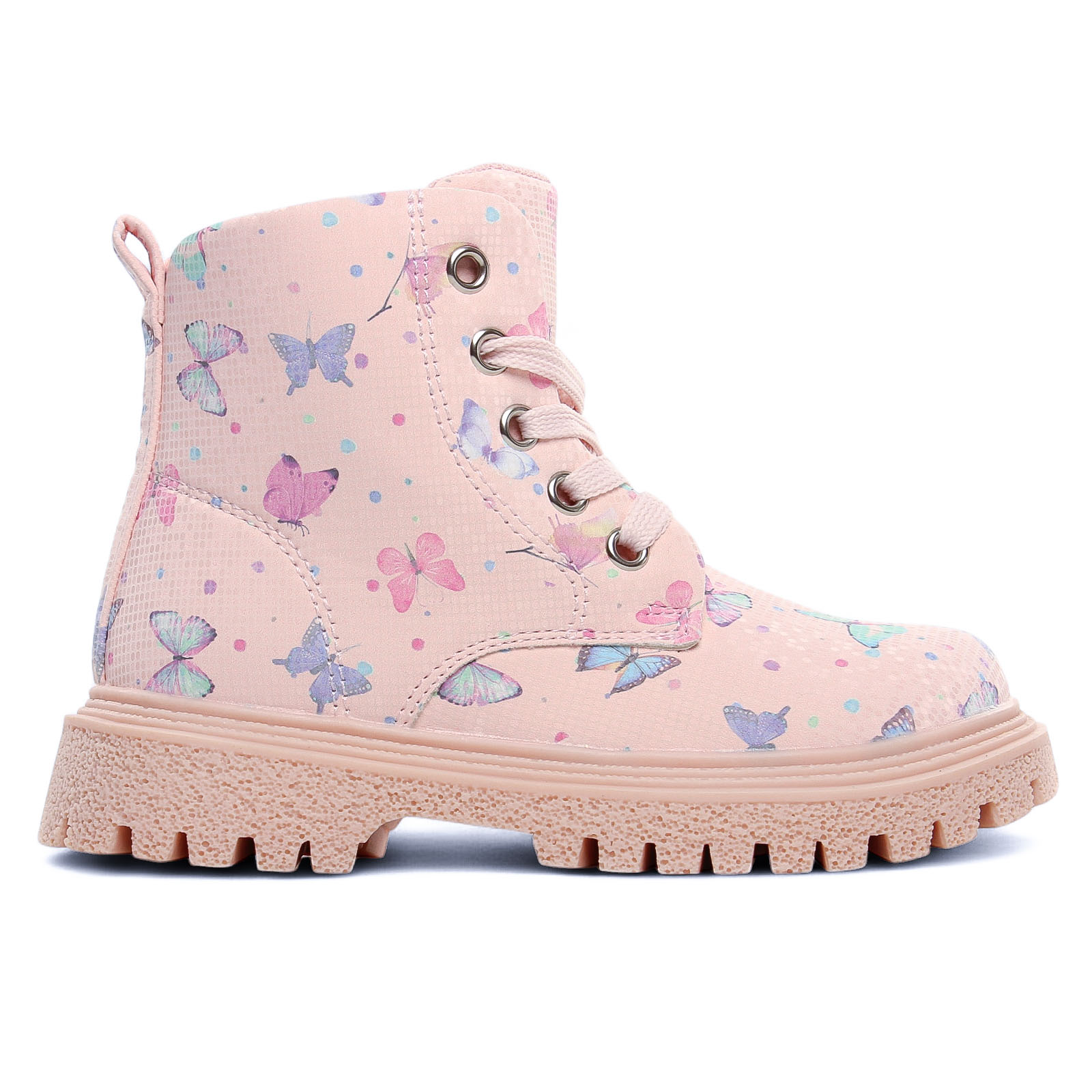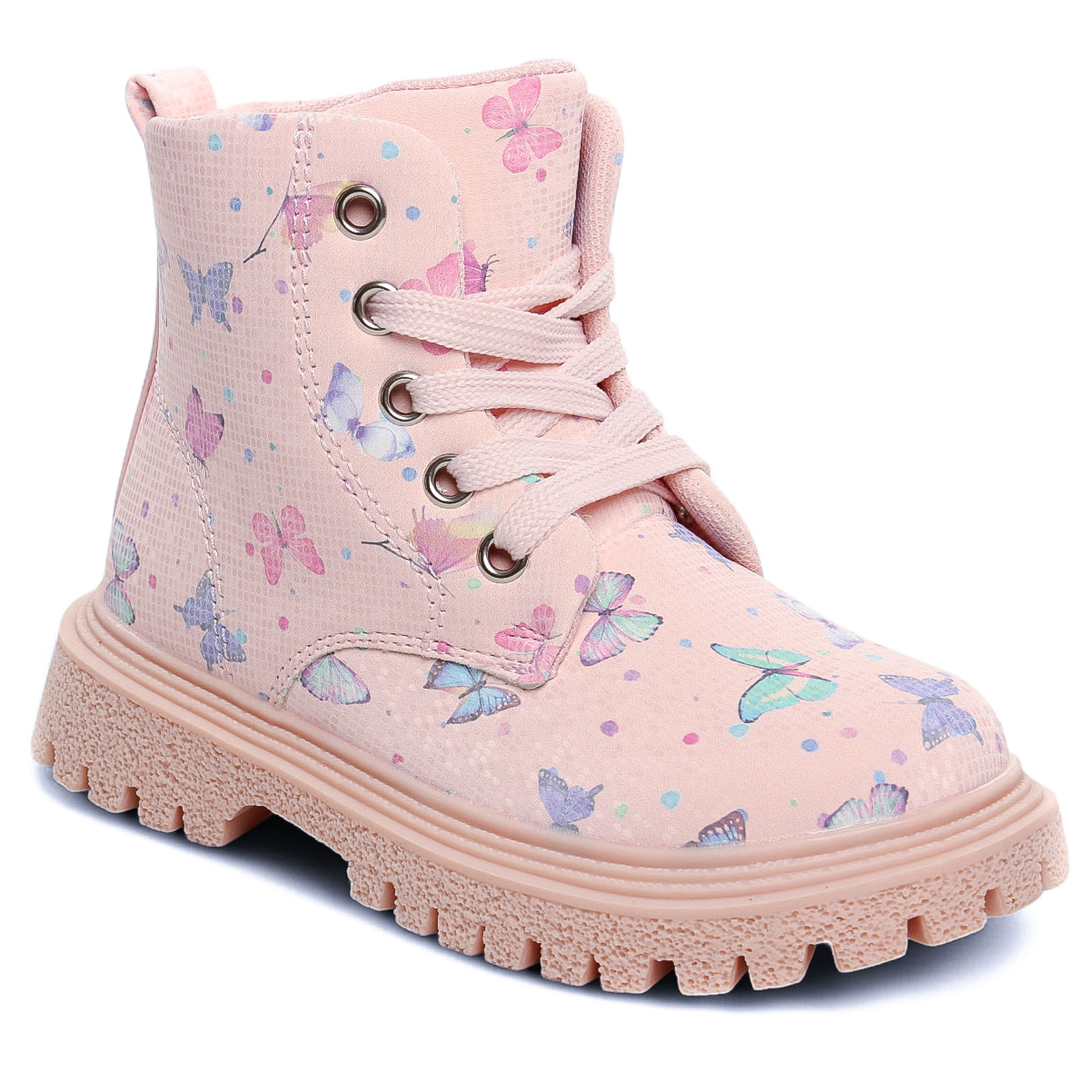 Chaussures Montantes de la marque Happy Bee de couleur rose. Jolies chaussures montantes en toile rose et motifs fleuris, montantes pour enfants, une fermeture lacets et zip, semelle souple, chaussures chics et confortables signées Happy Bee à un prix démocratique !