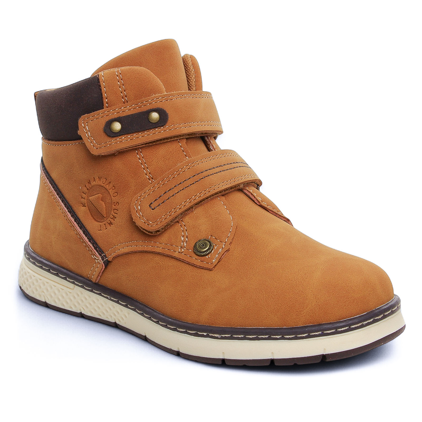 Chaussures Montantes de la marque Happy Bee de couleur marron. Jolies chaussures montantes en simili cuir marron, montantes pour enfants, une fermeture par double scratchs, semelle souple, chaussures chics et confortables signées Happy Bee à un prix démocratique !