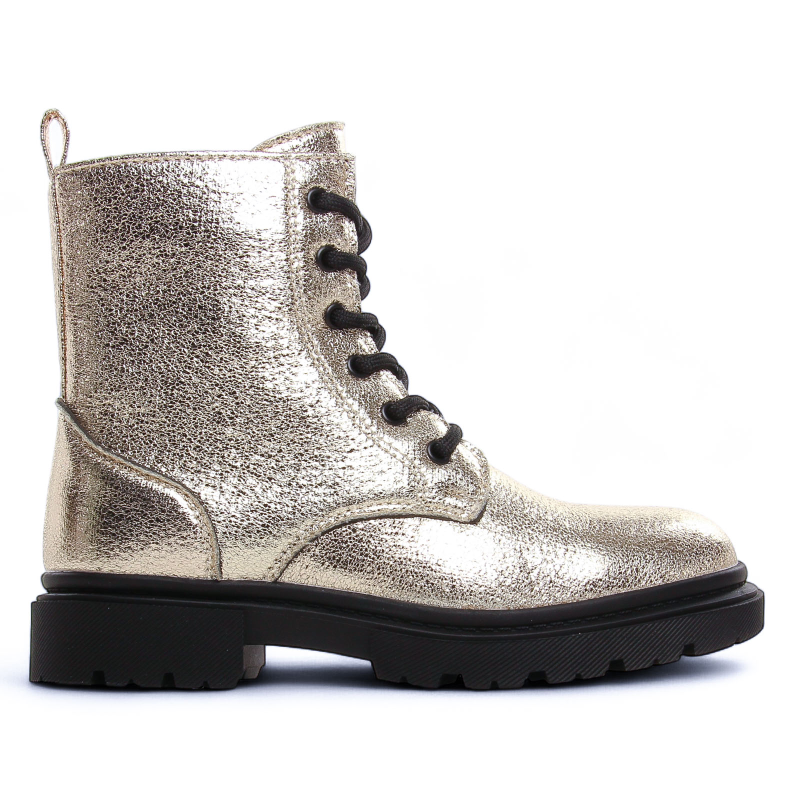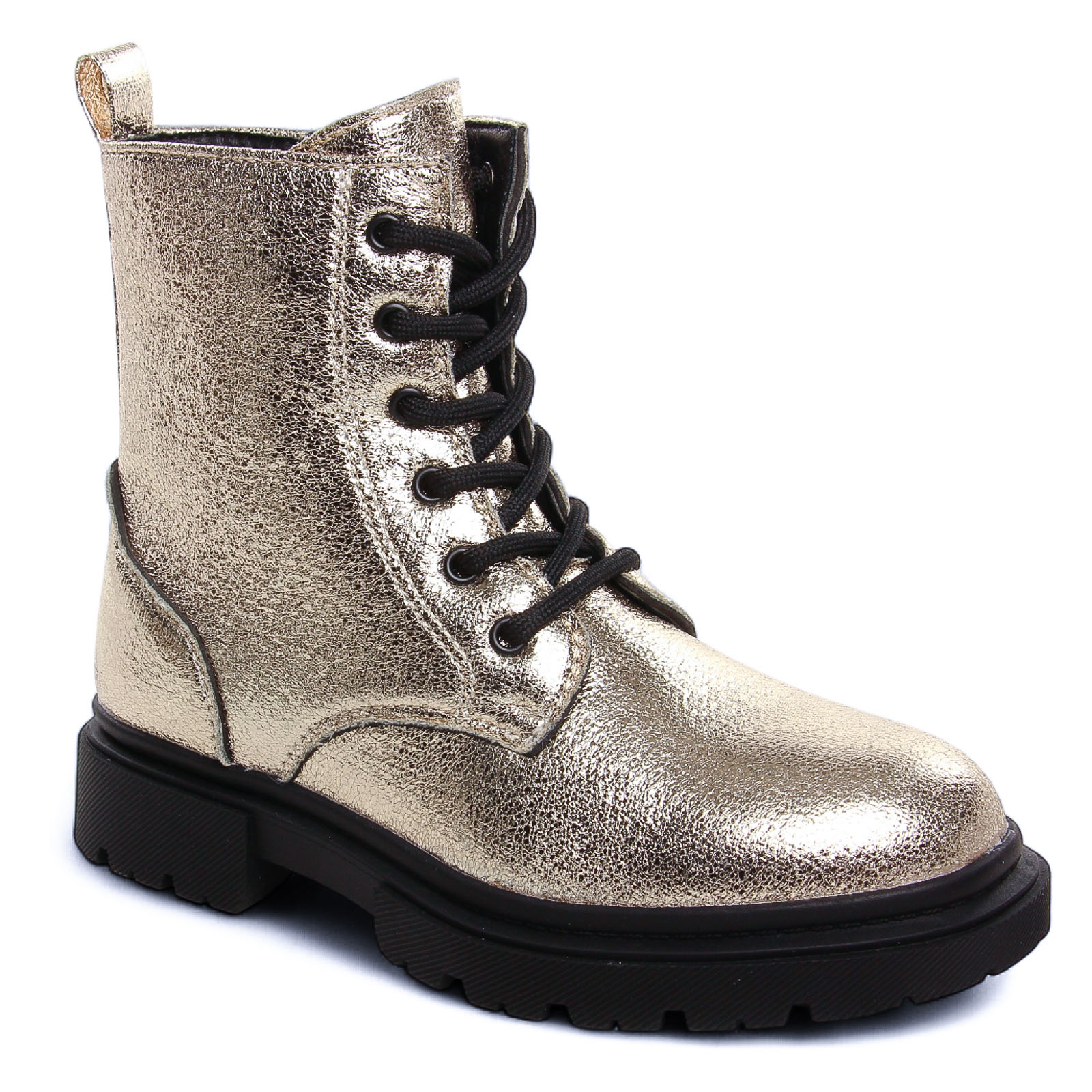 Chaussures Montantes de la marque Happy Bee de couleur beige doré. Jolies chaussures montantes en simili cuir métallisé or, montantes pour enfants, une fermeture lacets et zip, semelle souple, chaussures chics et confortables signées Happy Bee à un prix démocratique !