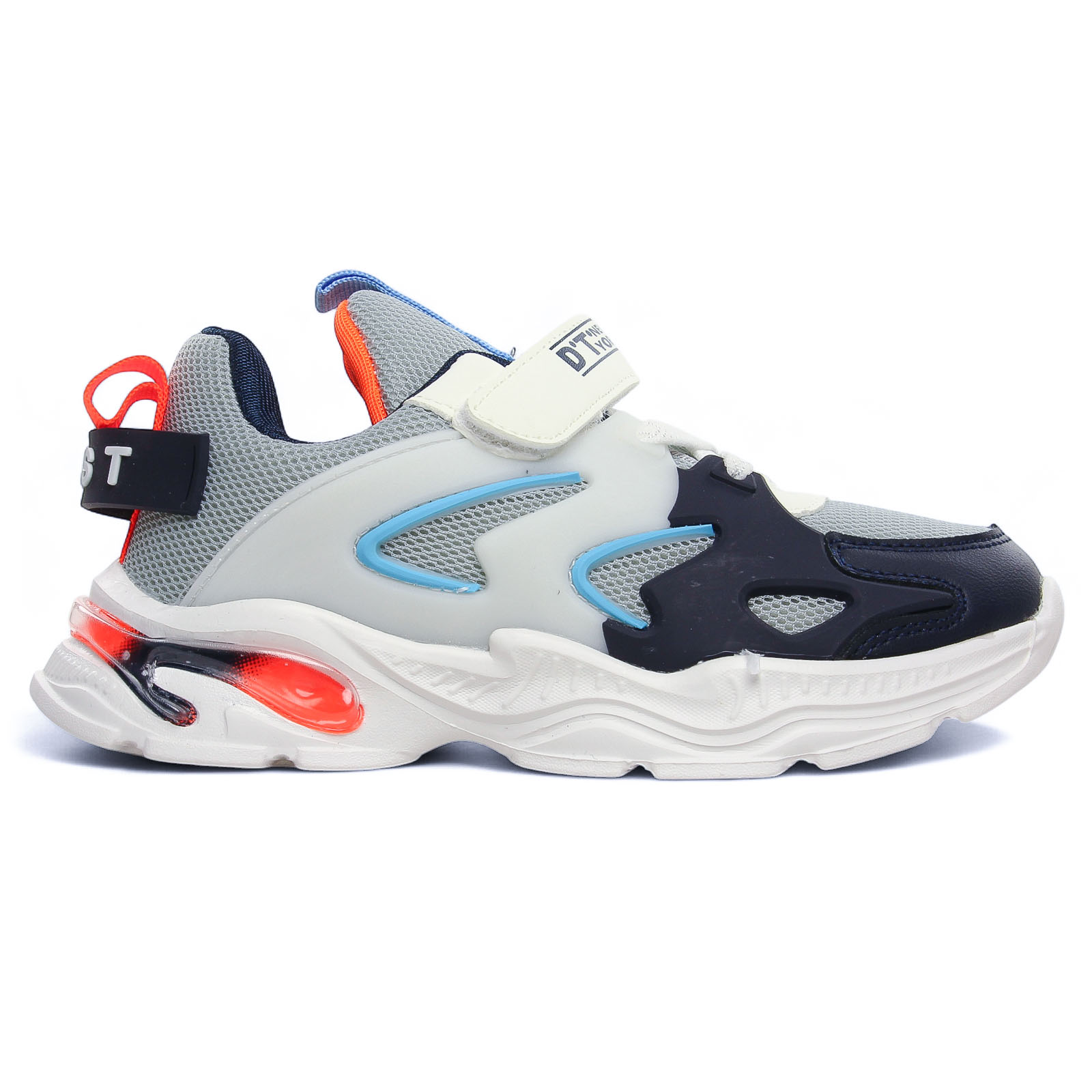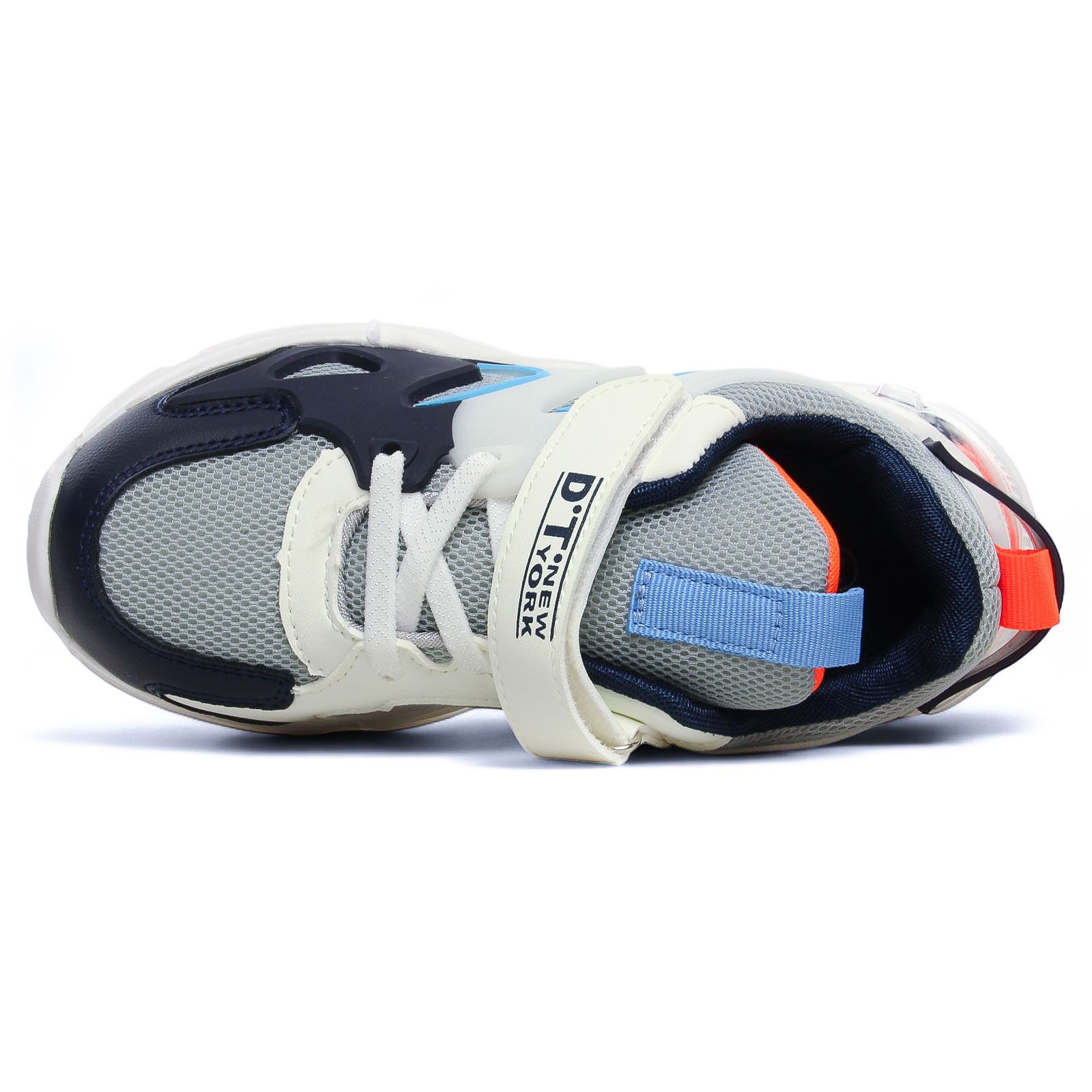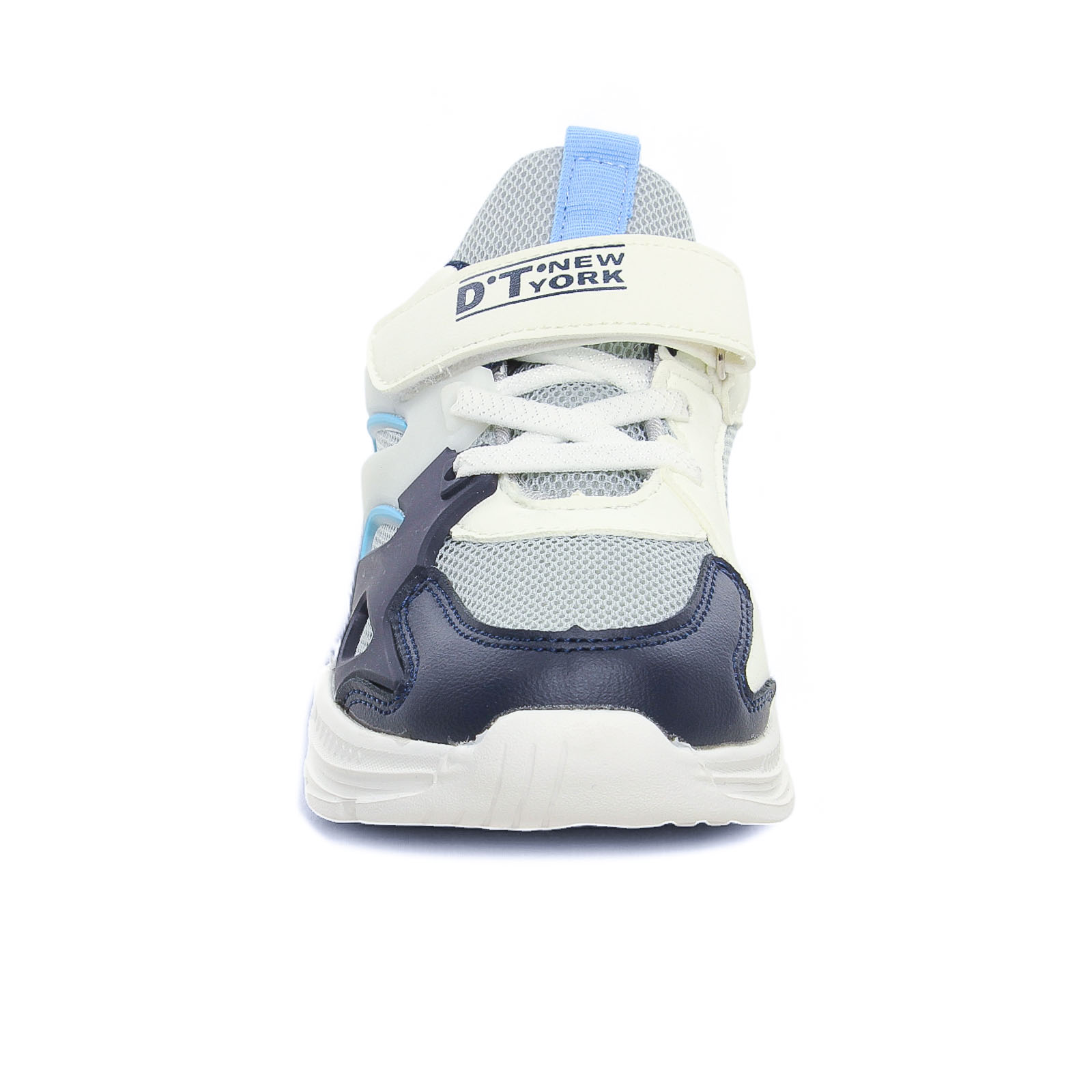 Baskets Enfants de la marque Dt New York de couleur bleu marine. Jolies sneakers basses à velcro et lacets en simili cuir dans des teintes blanches et bleu marine, baskets basses pour enfant, avec une semelle souple, des chaussures confortables signées DT New York avec un prix tout doux !