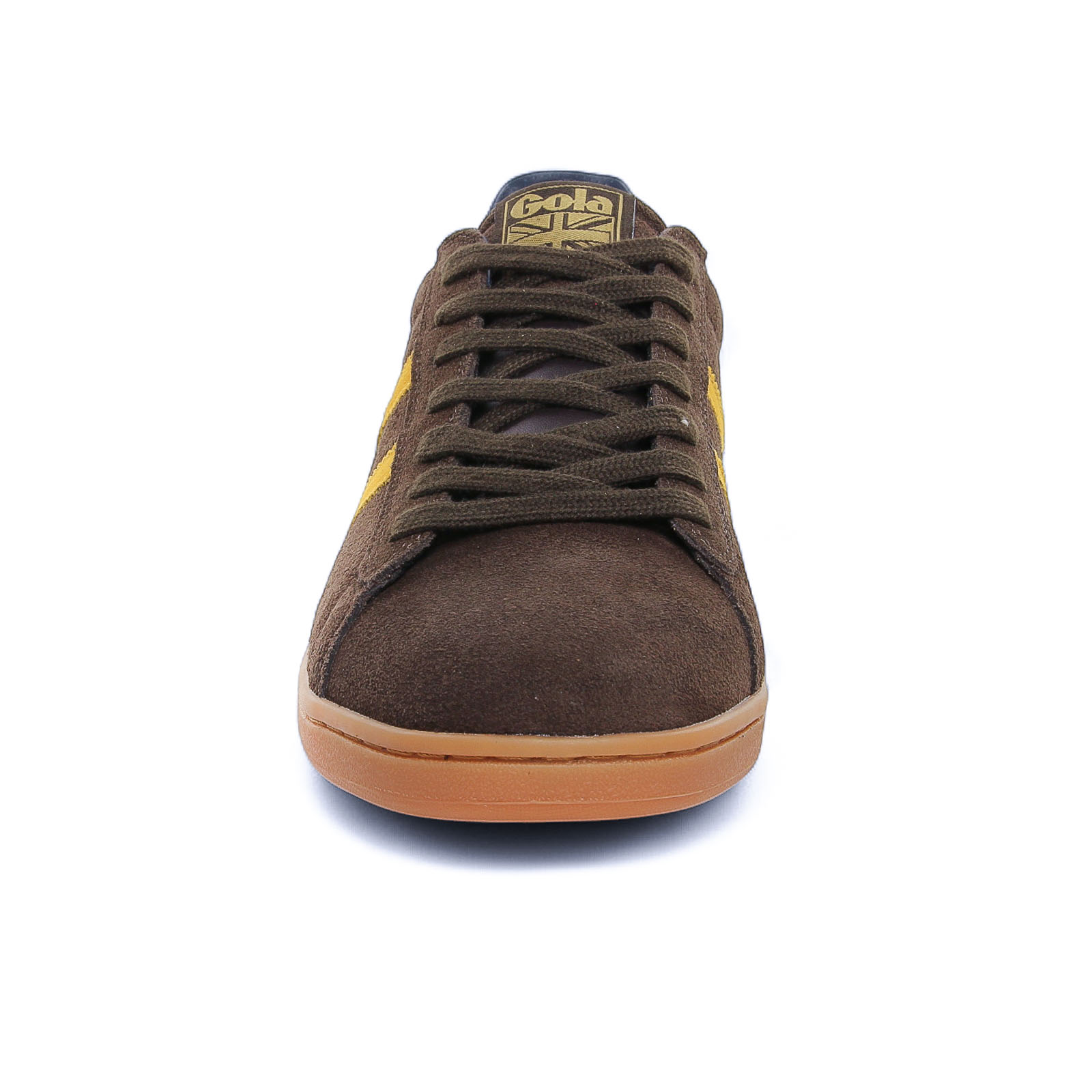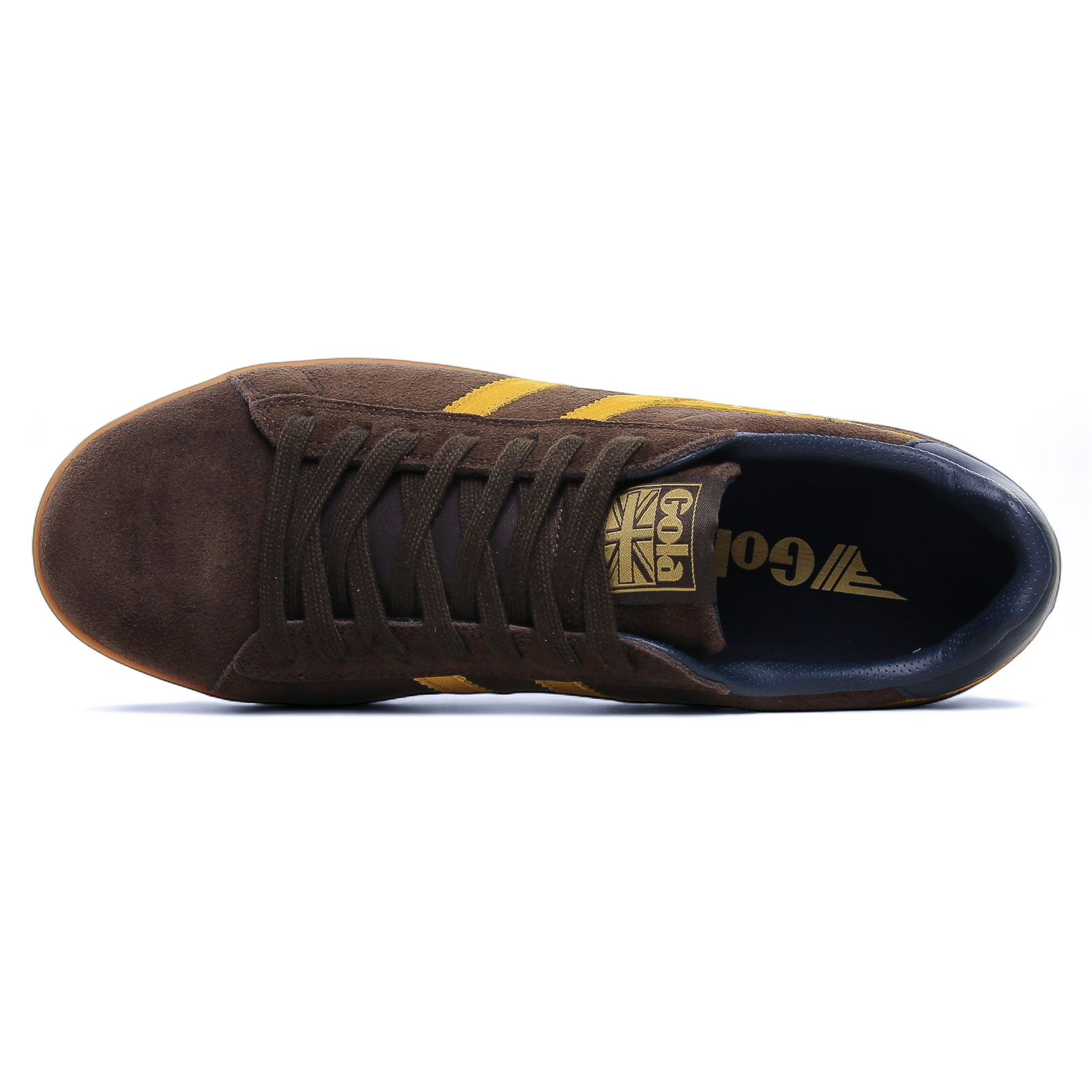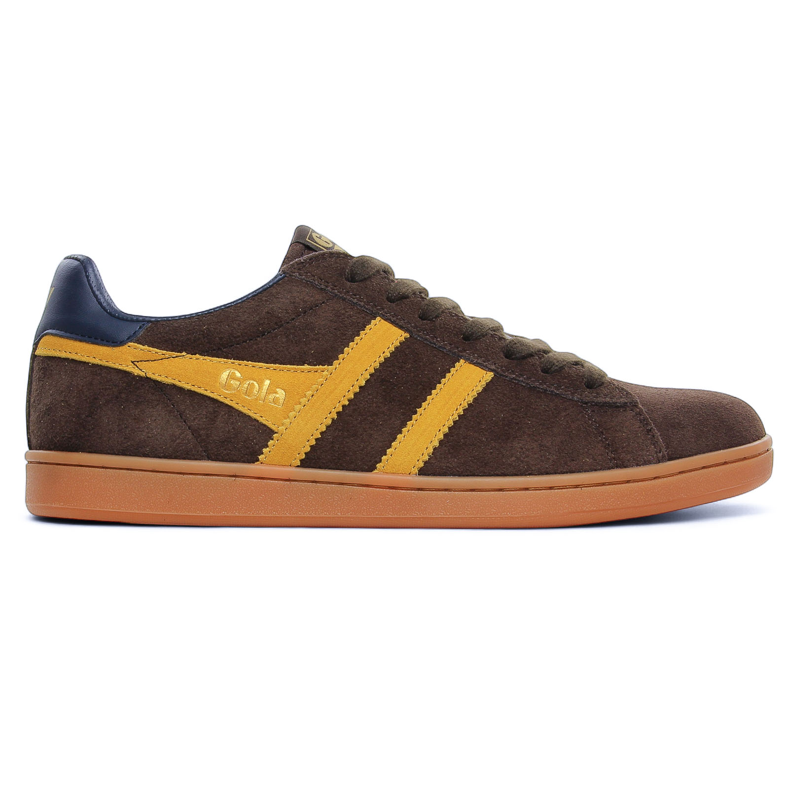Tennis de la marque Gola de couleur marron foncé. La fameuse tennis cuir EQUIPE II dans sa version suédée ou cuir lisse, tennis de la célèbre marque anglaise Gola, hyper mode et confortables, optez pour le style retro tendance football Liverpoll, tennis vintage homme disponibles dans de nombreux coloris, première de propreté textile. Tennis à posséder absolument !