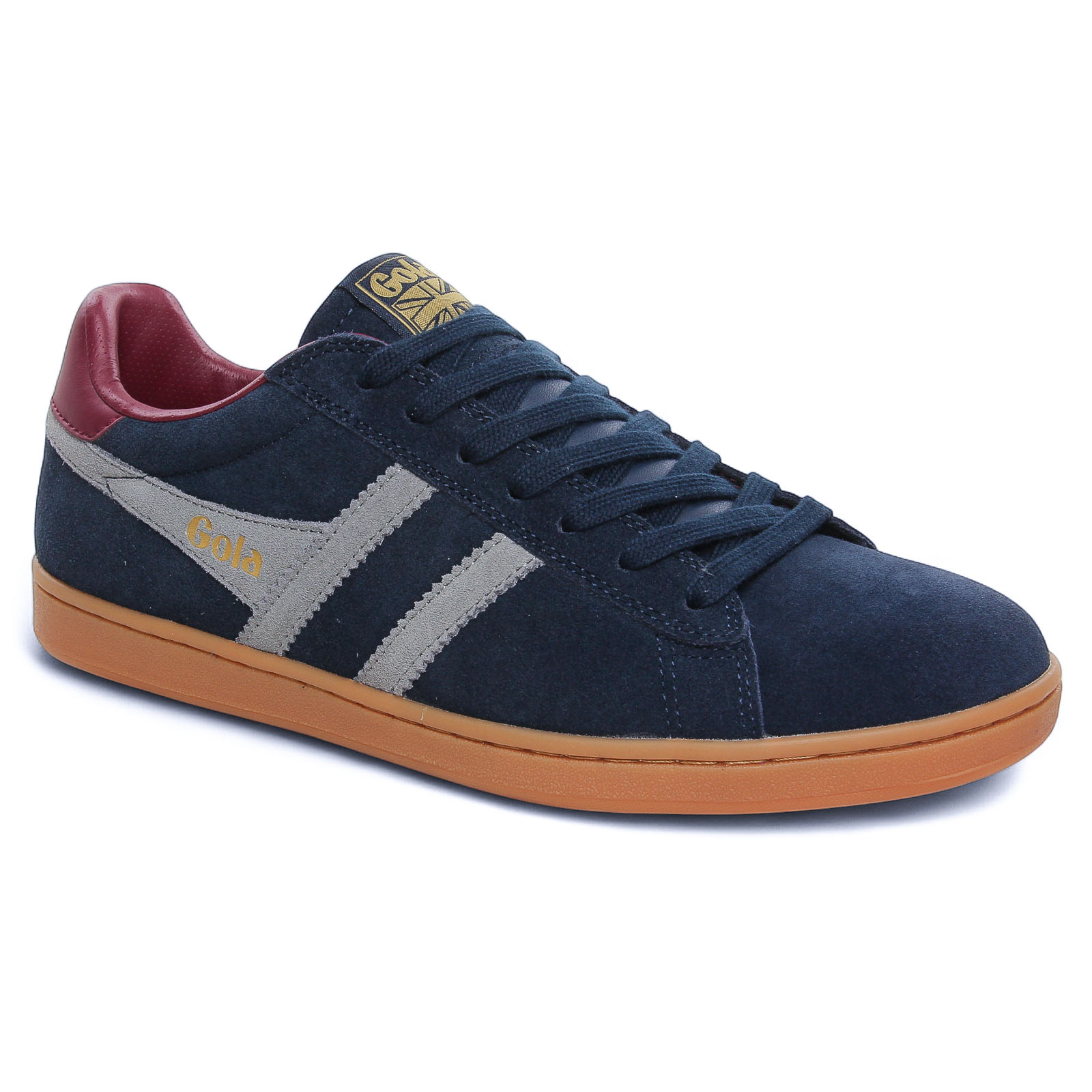 Tennis de la marque Gola de couleur bleu marine. La fameuse tennis cuir EQUIPE II dans sa version suédée ou cuir lisse, tennis de la célèbre marque anglaise Gola, hyper mode et confortables, optez pour le style retro tendance football Liverpoll, tennis vintage homme disponibles dans de nombreux coloris, première de propreté textile. Tennis à posséder absolument !