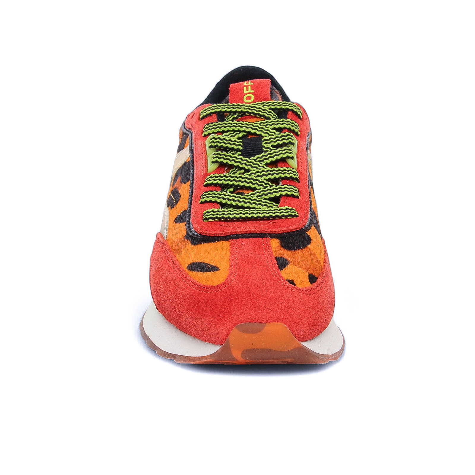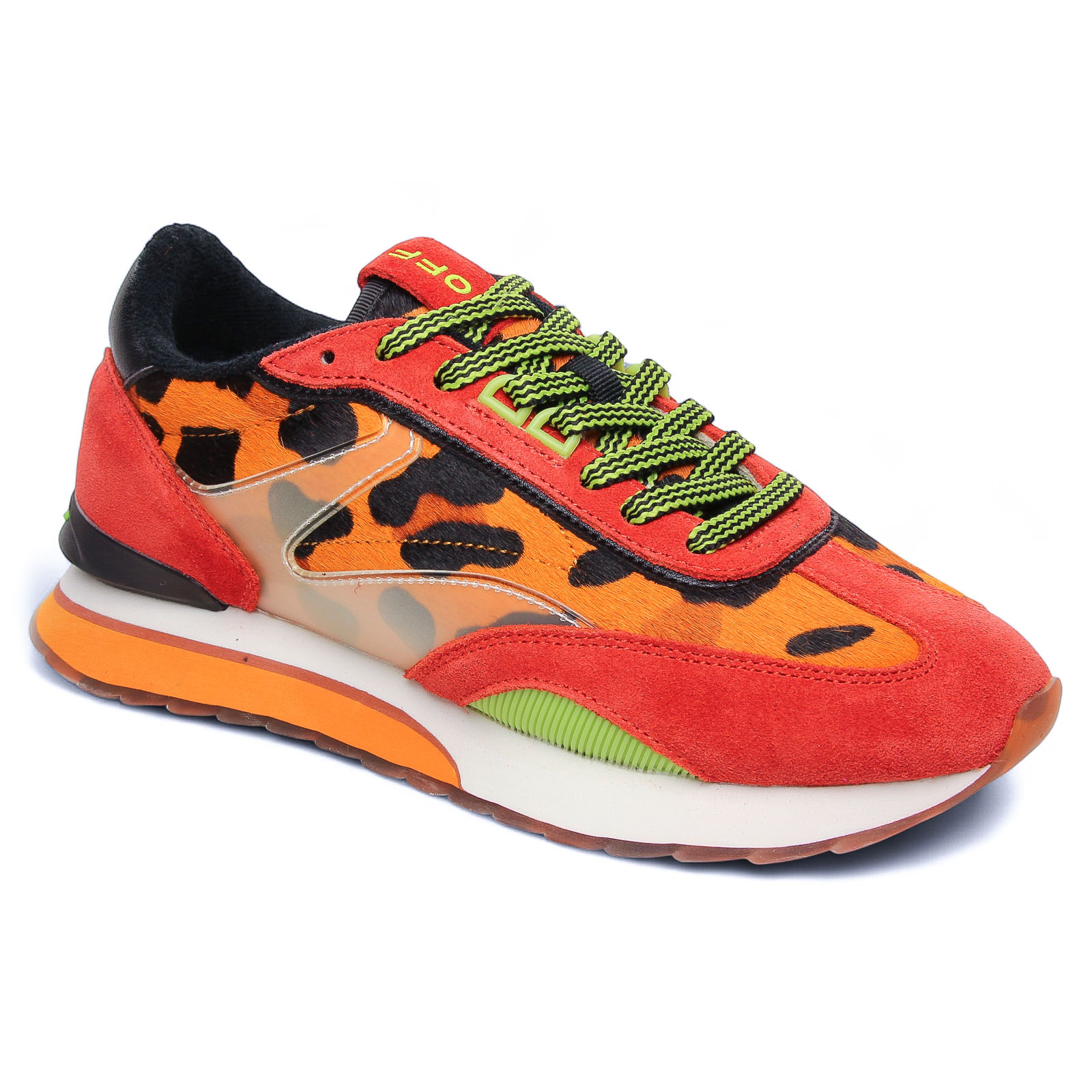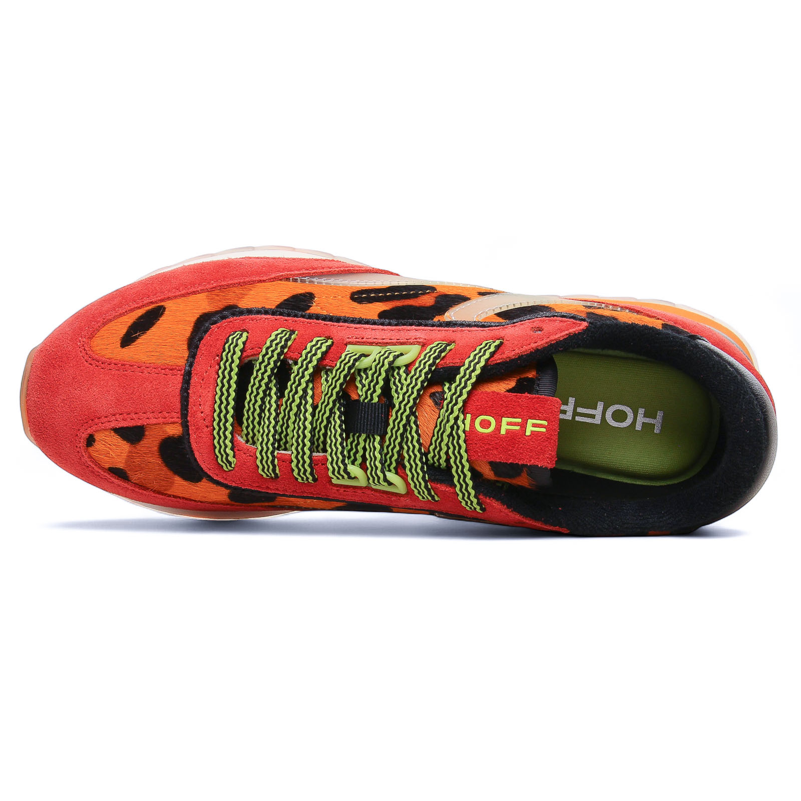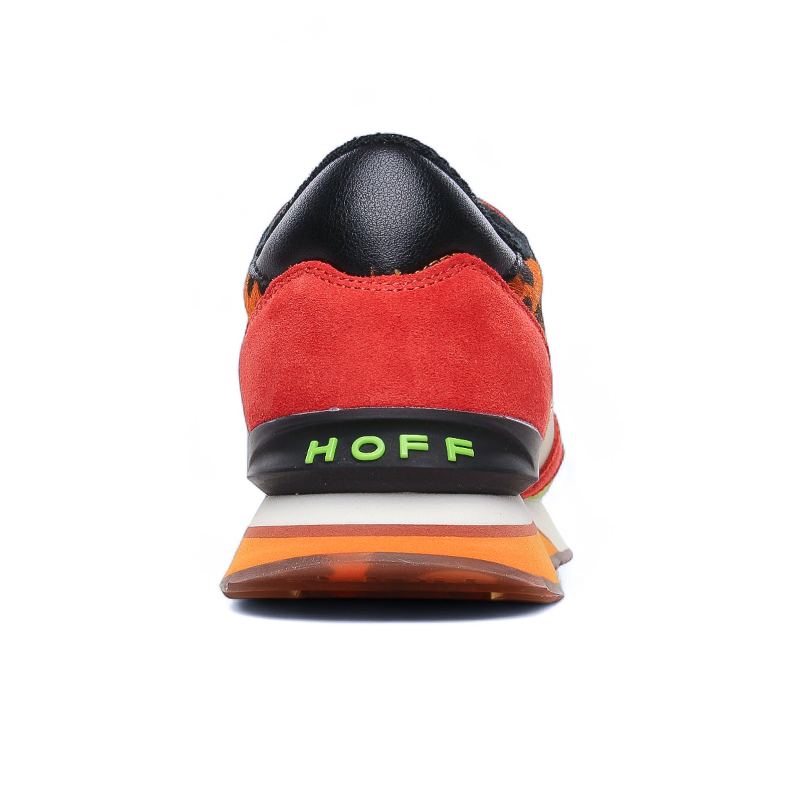 Baskets Mode de la marque Hoff de couleur orange léopard. Les baskets HOFF ART Orange sont un véritable coup de cœur avec leur design audacieux inspiré du rétro-running, caractérisé par un mélange de cuir, daim et textile aux teintes vibrantes d'orange et de motifs imprimés, souvent léopard. Conçues pour le quotidien, elles intègrent la célèbre semelle intérieure en mousse à mémoire de forme (Memory Foam) qui assure un confort exceptionnel et un soutien durable à chaque pas. Cette sneaker, pleine de caractère, est l'accessoire idéal pour apporter une touche de couleur affirmée et un look street-chic original à votre garde-robe.