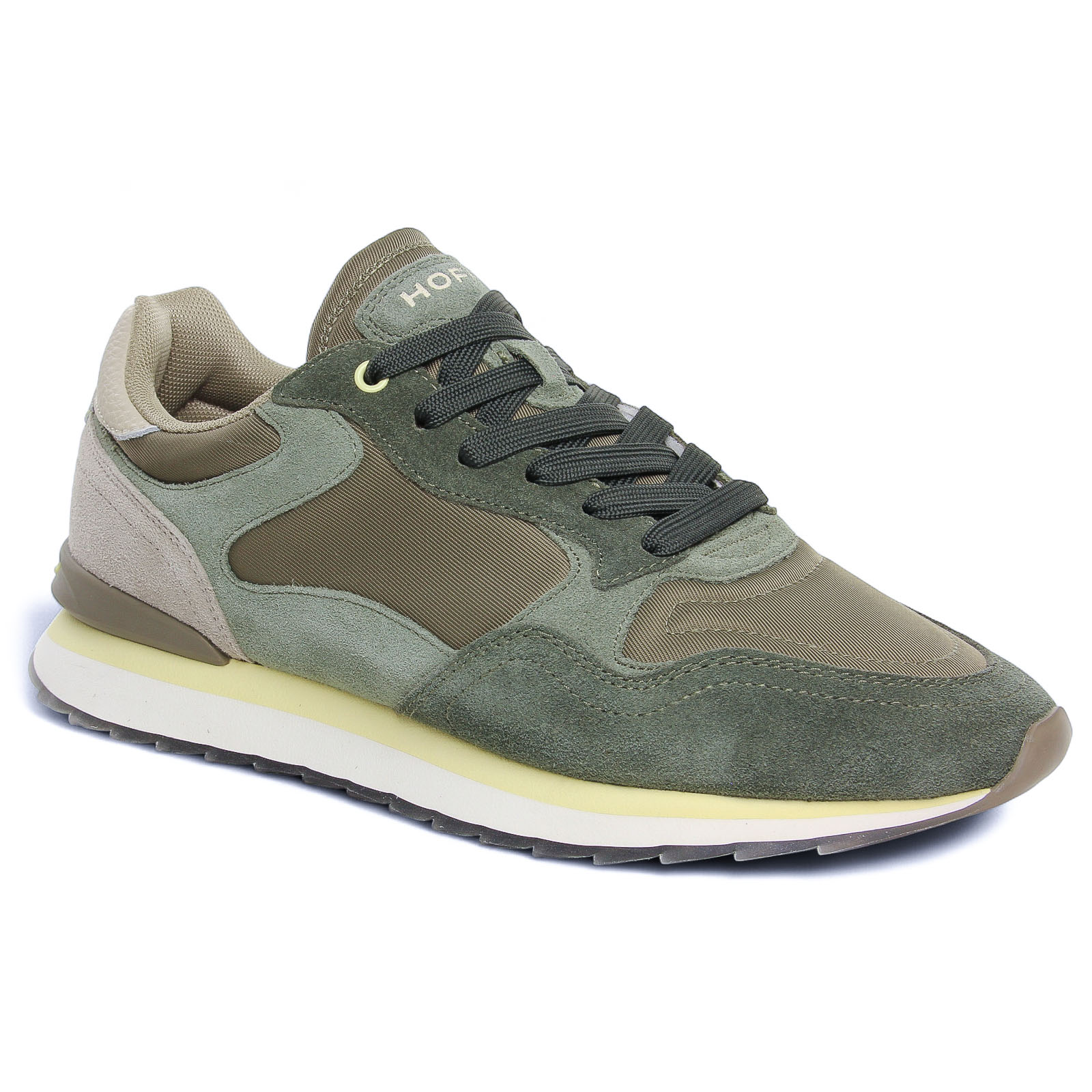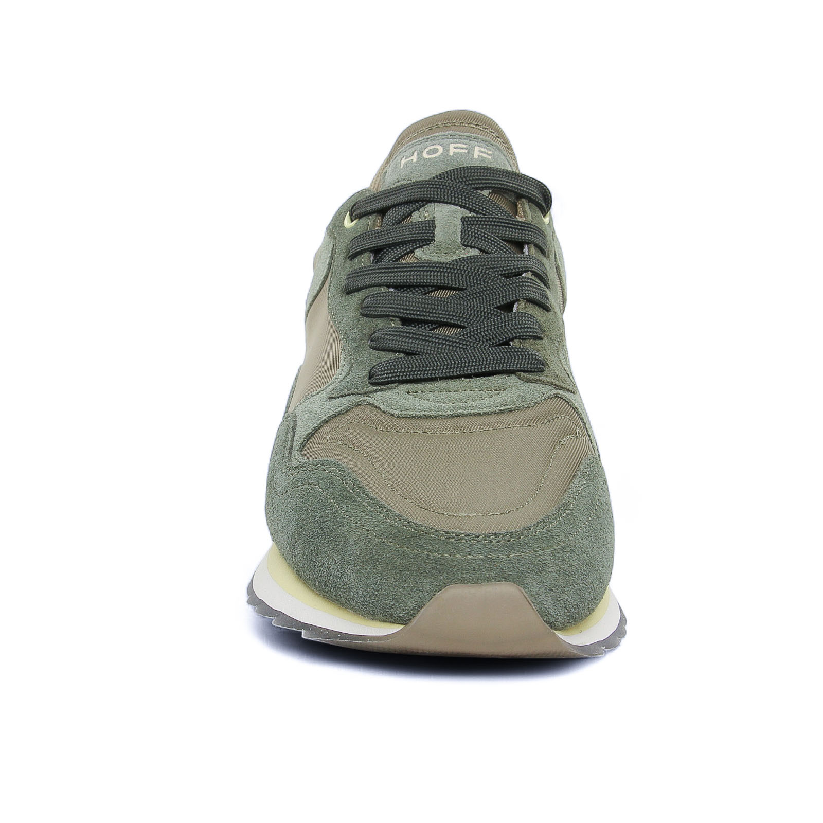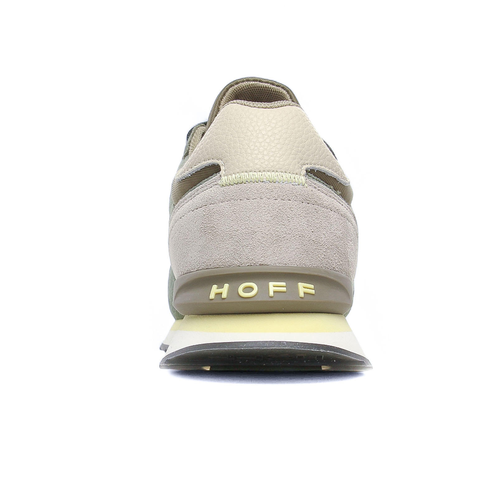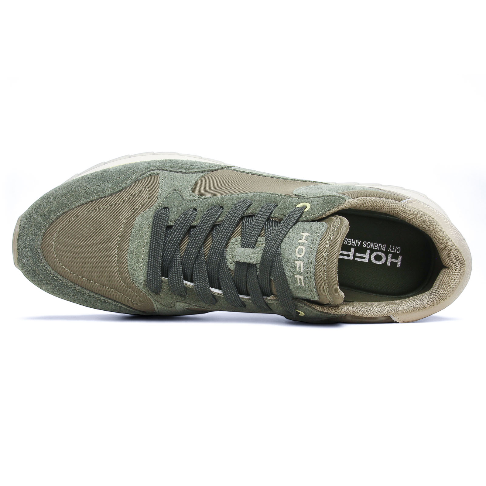 Tennis de la marque Hoff de couleur vert kaki. Superbes baskets Homme HOFF City Buenos Aires, un style rétro-running distinctif, une tige en cuir premium et nylon respirant, offrant à la fois élégance et durabilité, un confort exceptionnel grâce à la semelle intérieure Memory Foam qui amortit chacun de vos pas en milieu urbain. Le design est complété par la semelle extérieure transparente signature HOFF, ornée d'une illustration de la capitale argentine, pour une touche unique !
