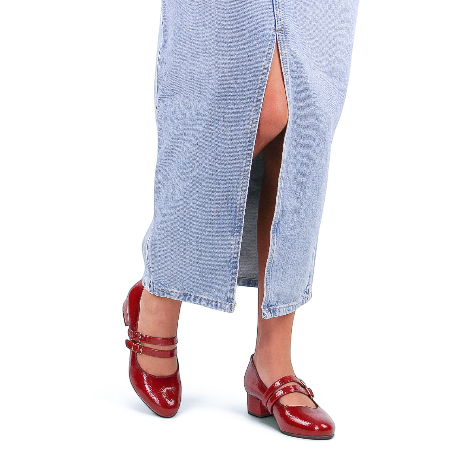 Escarpins Brides de la marque Jana de couleur rouge. Escarpins de la gamme végane de la marque allemande JANA, une version vernis noir et une vernis rouge carmin, tige en simili cuir avec un aspect nervuré, 2 brides sur le coup de pied avec une boucle, un talon carré de 4 cm et une première Soft Line pour plus de confort !