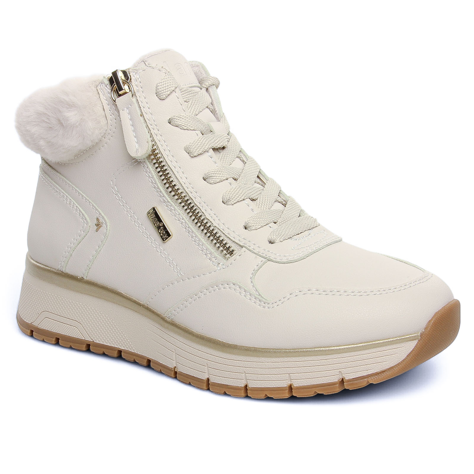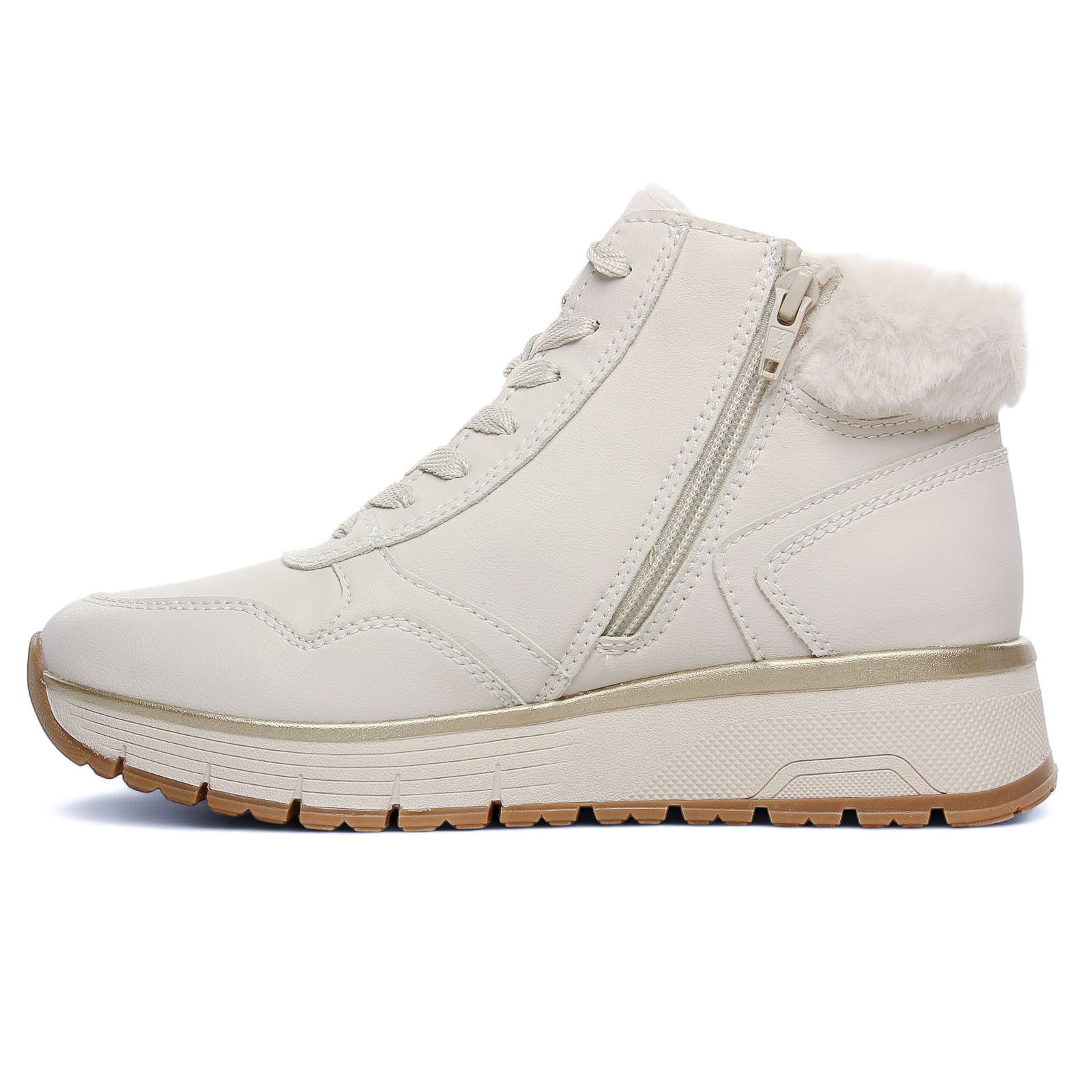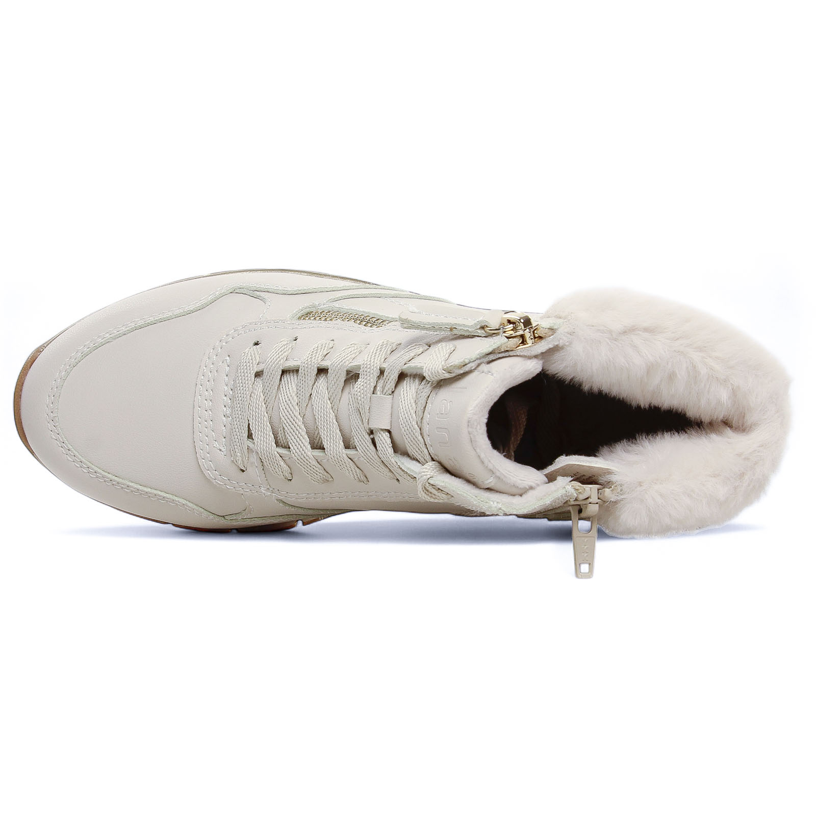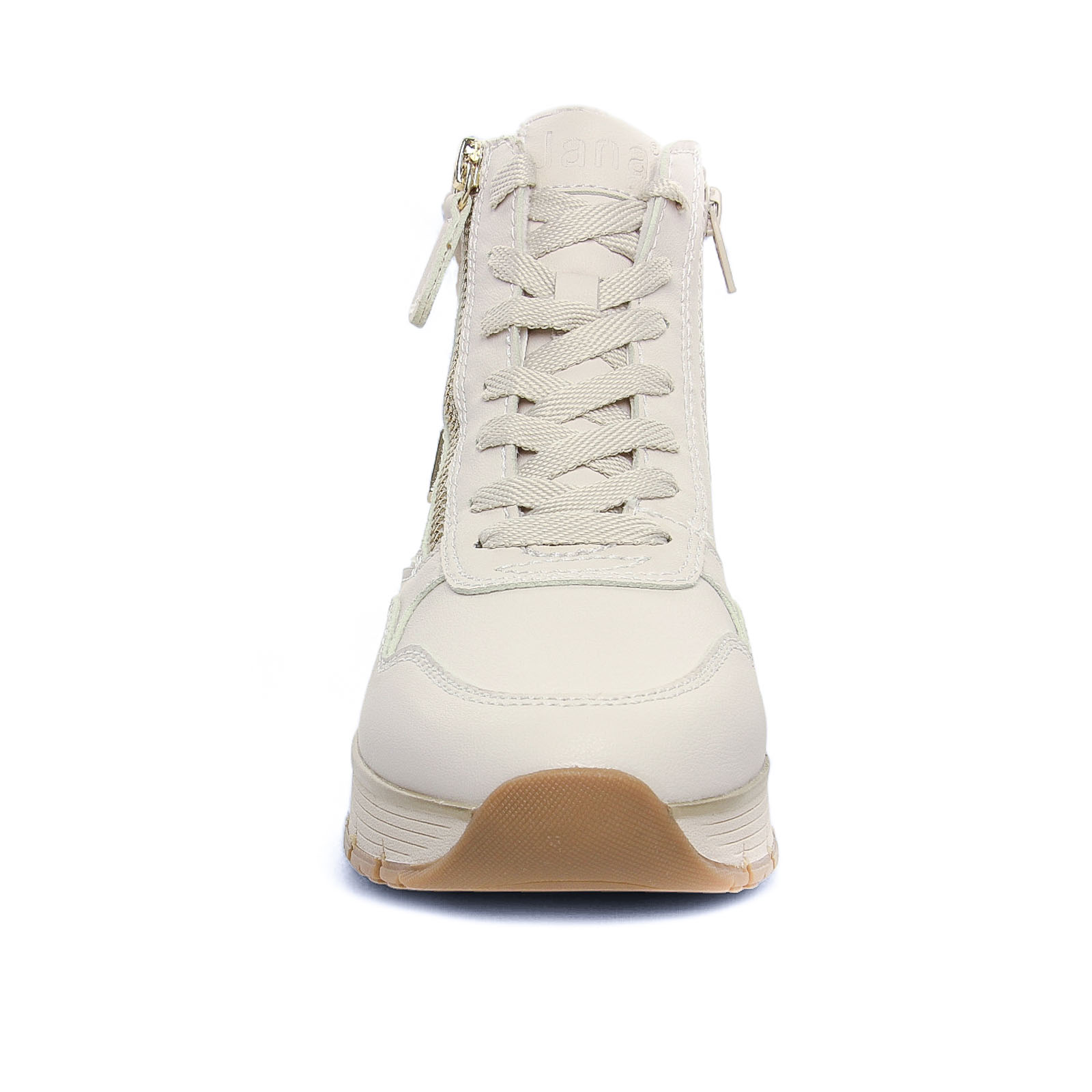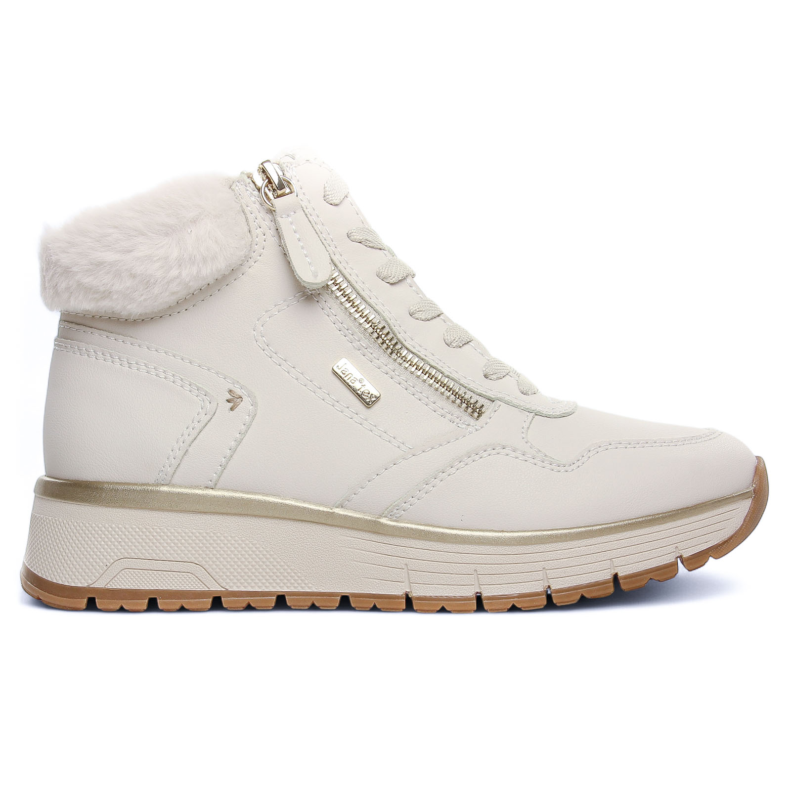 Baskets Fourrées de la marque Jana de couleur blanc creme. Baskets en cuir montantes et fourrées par Jana : être chic en tout confort en plein hiver ! une première amovible, une doublure chaude, une fermeture éclair pour les chausser facilement, une semelle légèrement compensée haute de 4.5 cm au talon, un concentré de confort signé par la marque allemande.