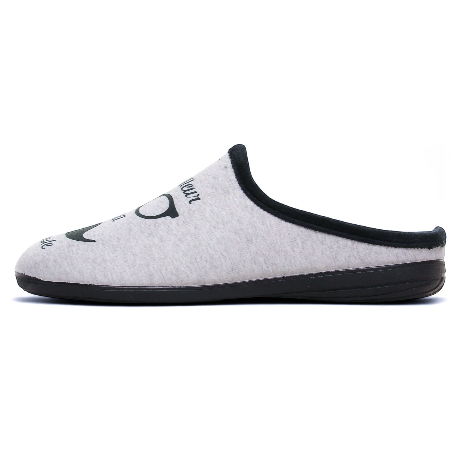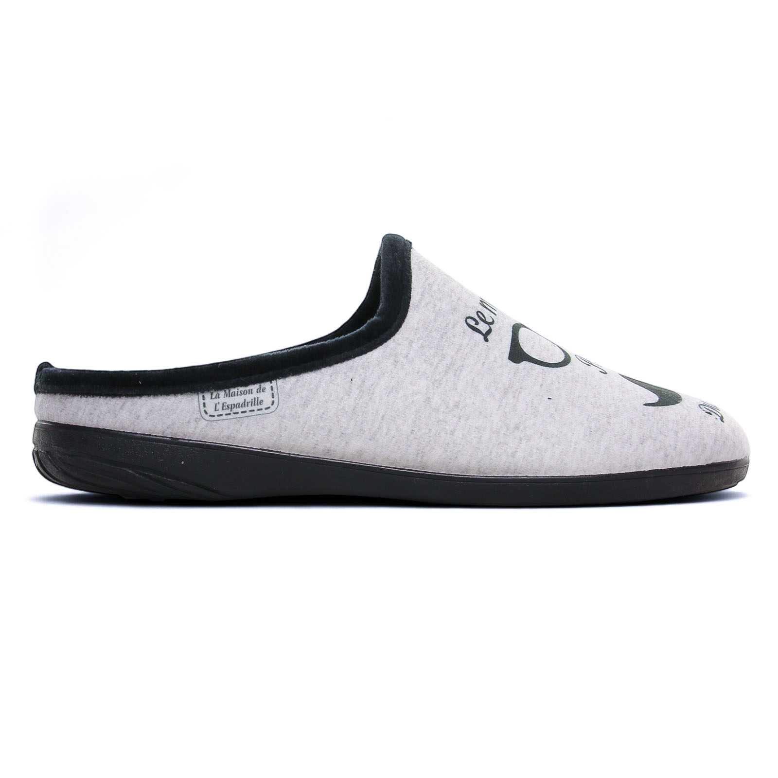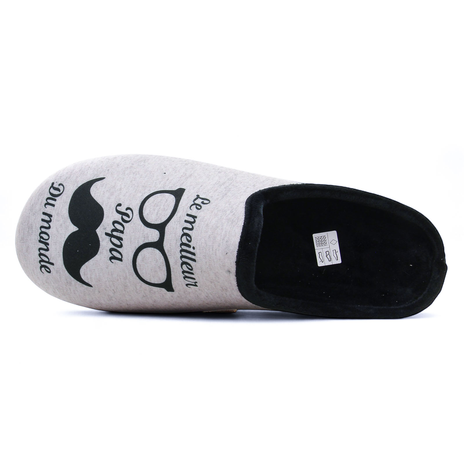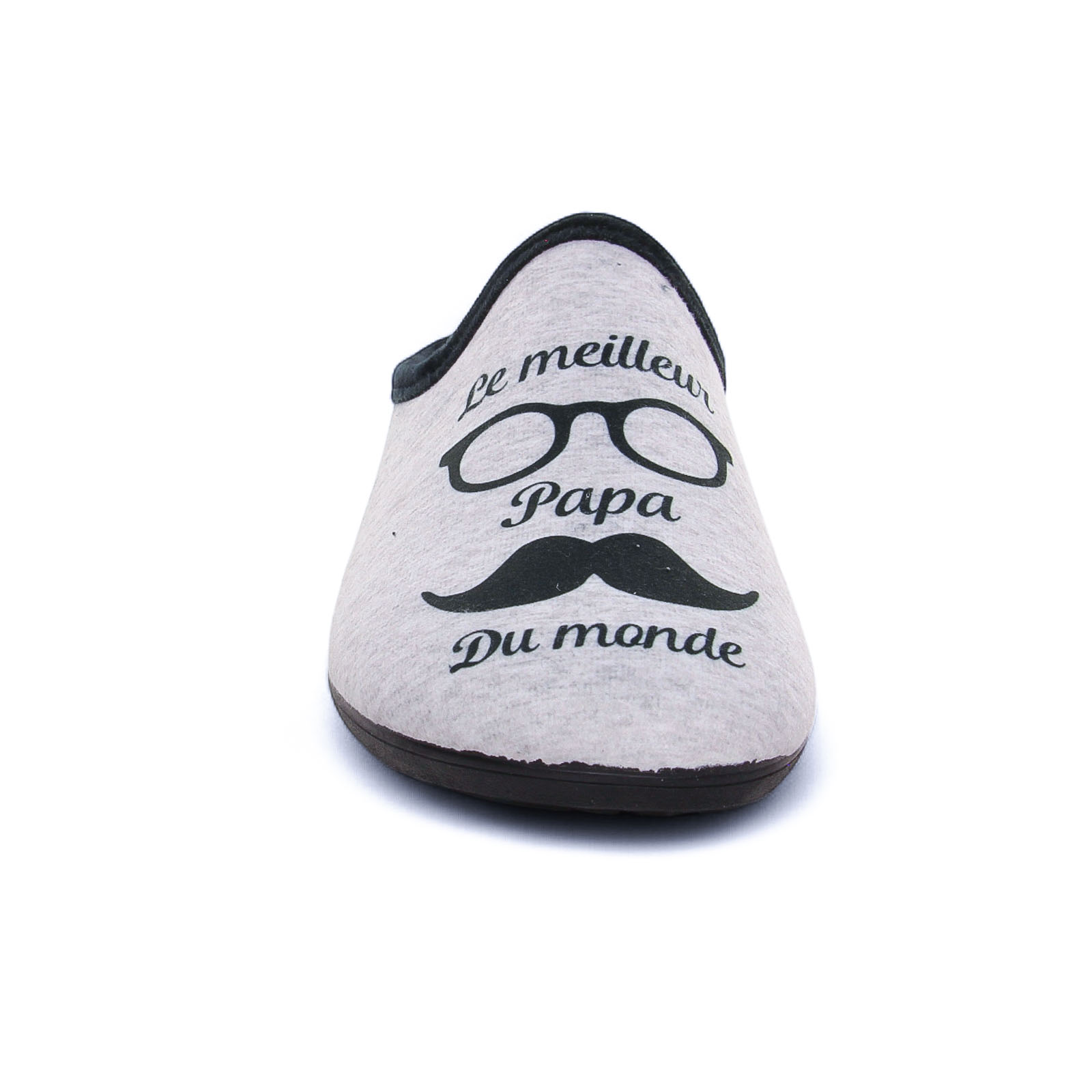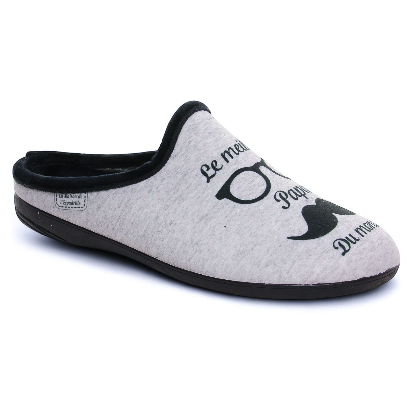 Chaussons de la marque Maison De L'espadrille de couleur gris. Mule chausson avec l'imprimé "Le meilleur Papa du monde" : trop mignon ! Une valeur sure pour vos cocooning d'hiver, les pieds bien au chaud, chaussons signés La Maison de L'espadrille.