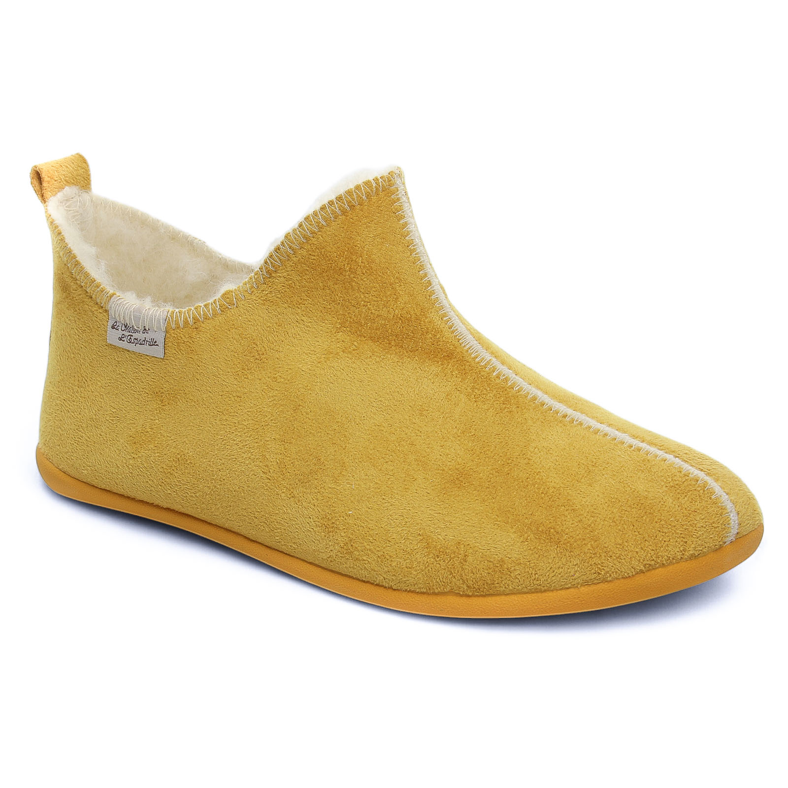 Chaussons de la marque Maison De L'espadrille de couleur jaune. Chaussons avec une doublure chaude 100% laine, une tige textile et une semelle 100% caoutchouc, chaussons signés La Maison de l'Espadrille et disponibles dans de nombreux coloris.