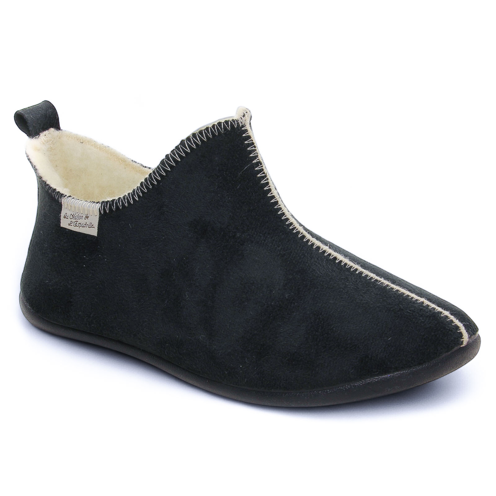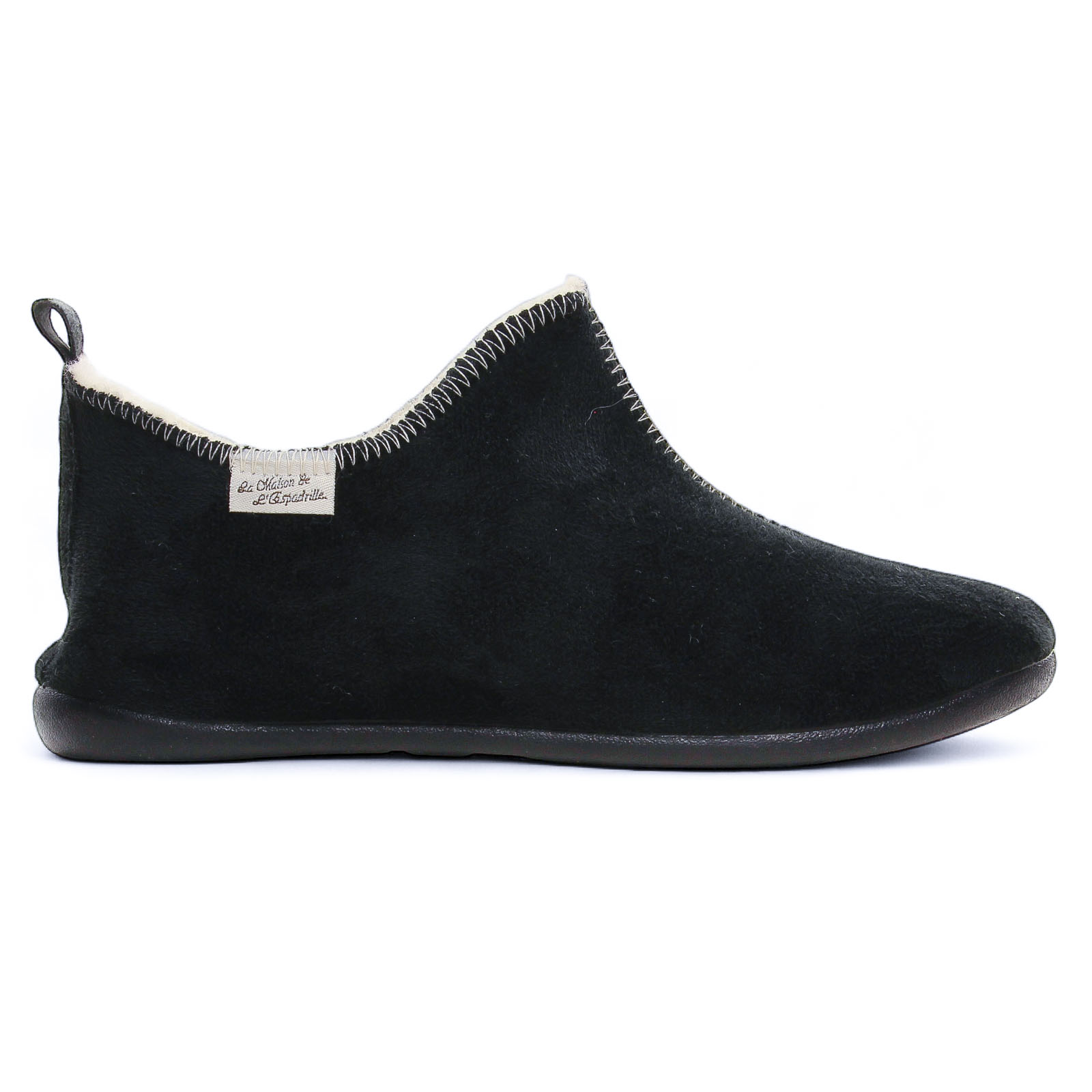 Chaussons de la marque Maison De L'espadrille de couleur noir. Chaussons avec une doublure chaude 100% laine, une tige textile et une semelle 100% caoutchouc, chaussons signés La Maison de l'Espadrille et disponibles dans de nombreux coloris.