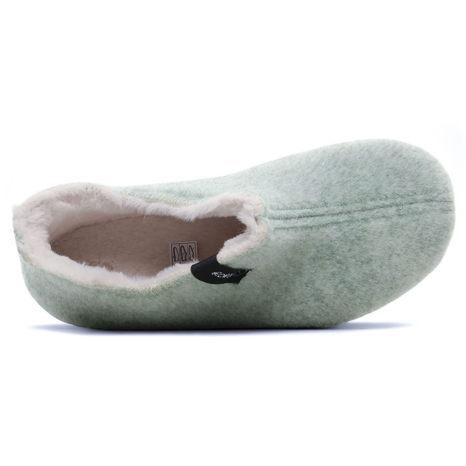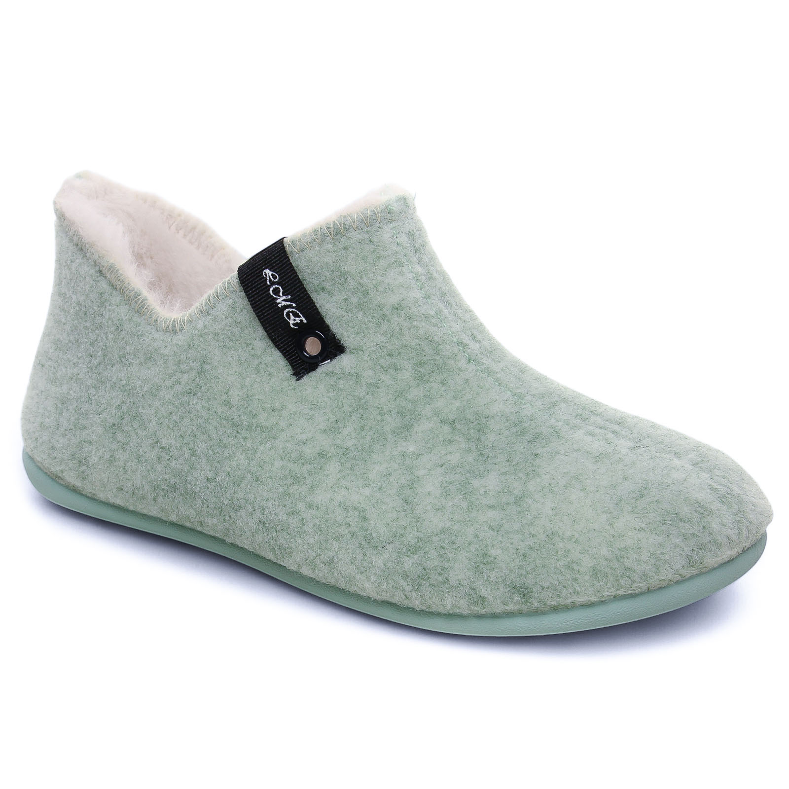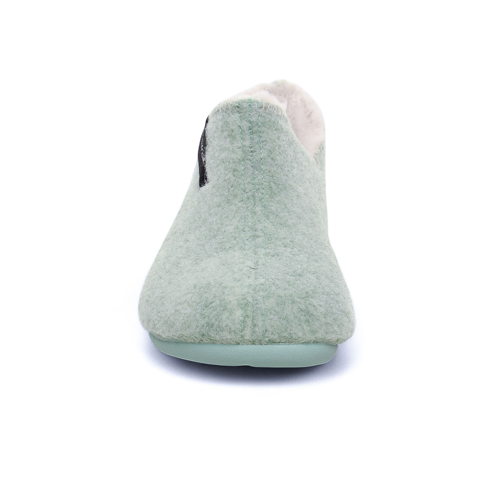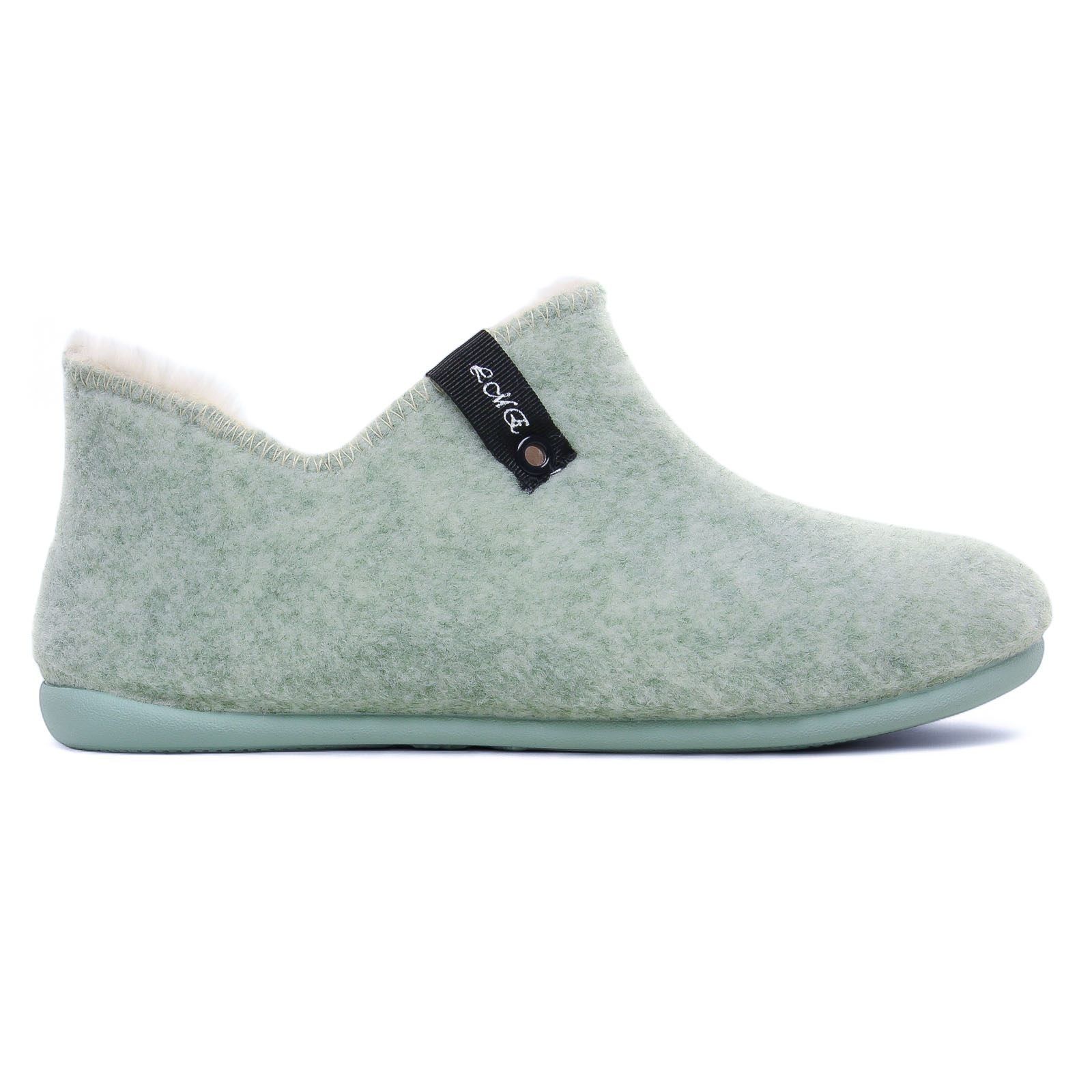 Chaussons de la marque Maison De L'espadrille de couleur vert. Chaussons avec une doublure chaude 100% laine, une tige textile et une semelle 100% caoutchouc, chaussons signés La Maison de l'Espadrille et disponibles dans de nombreux coloris.