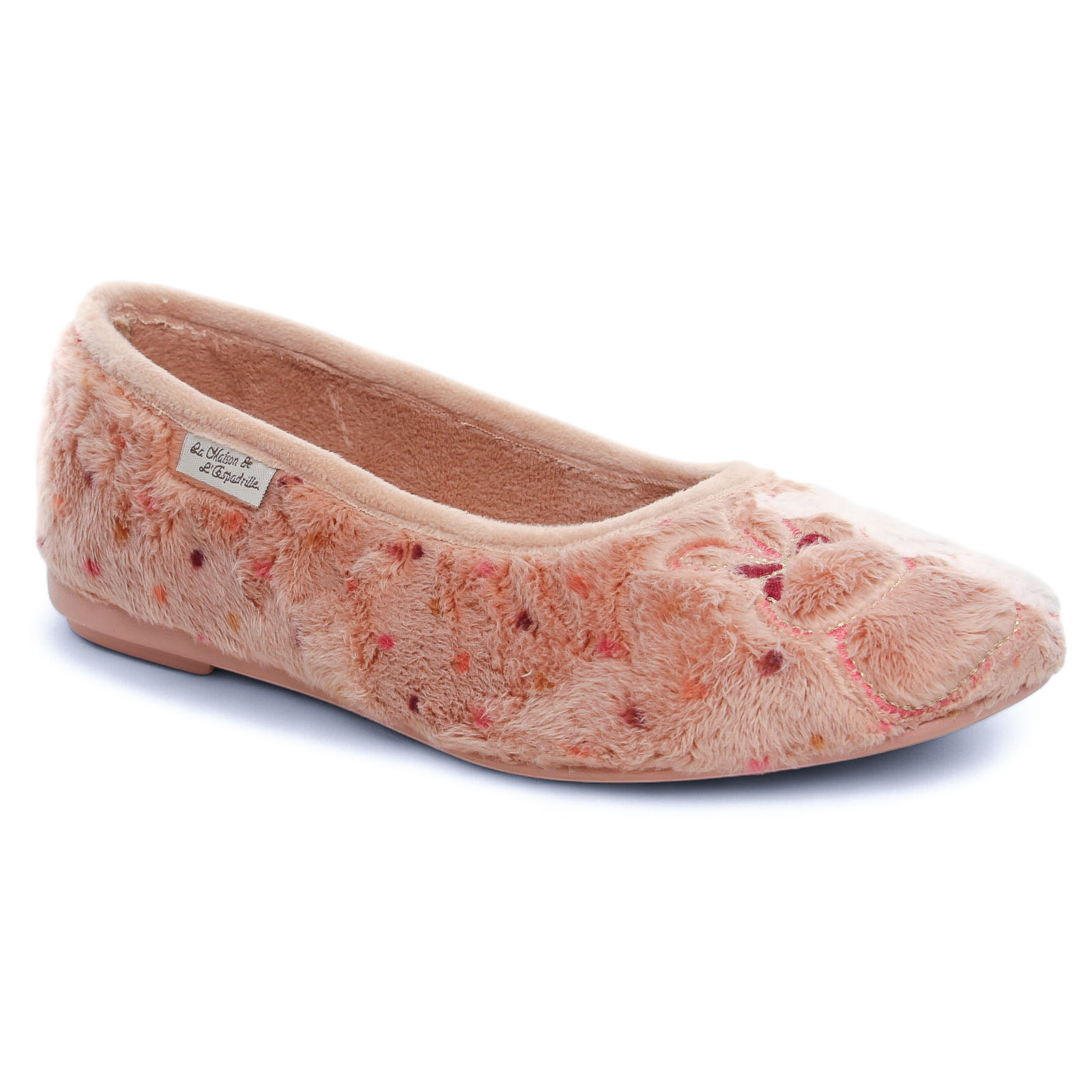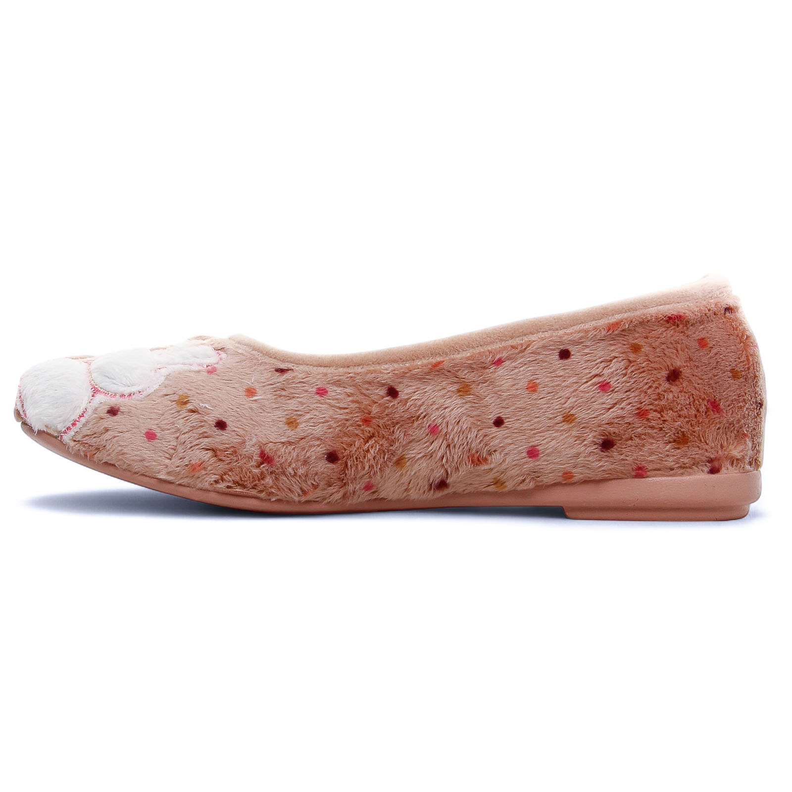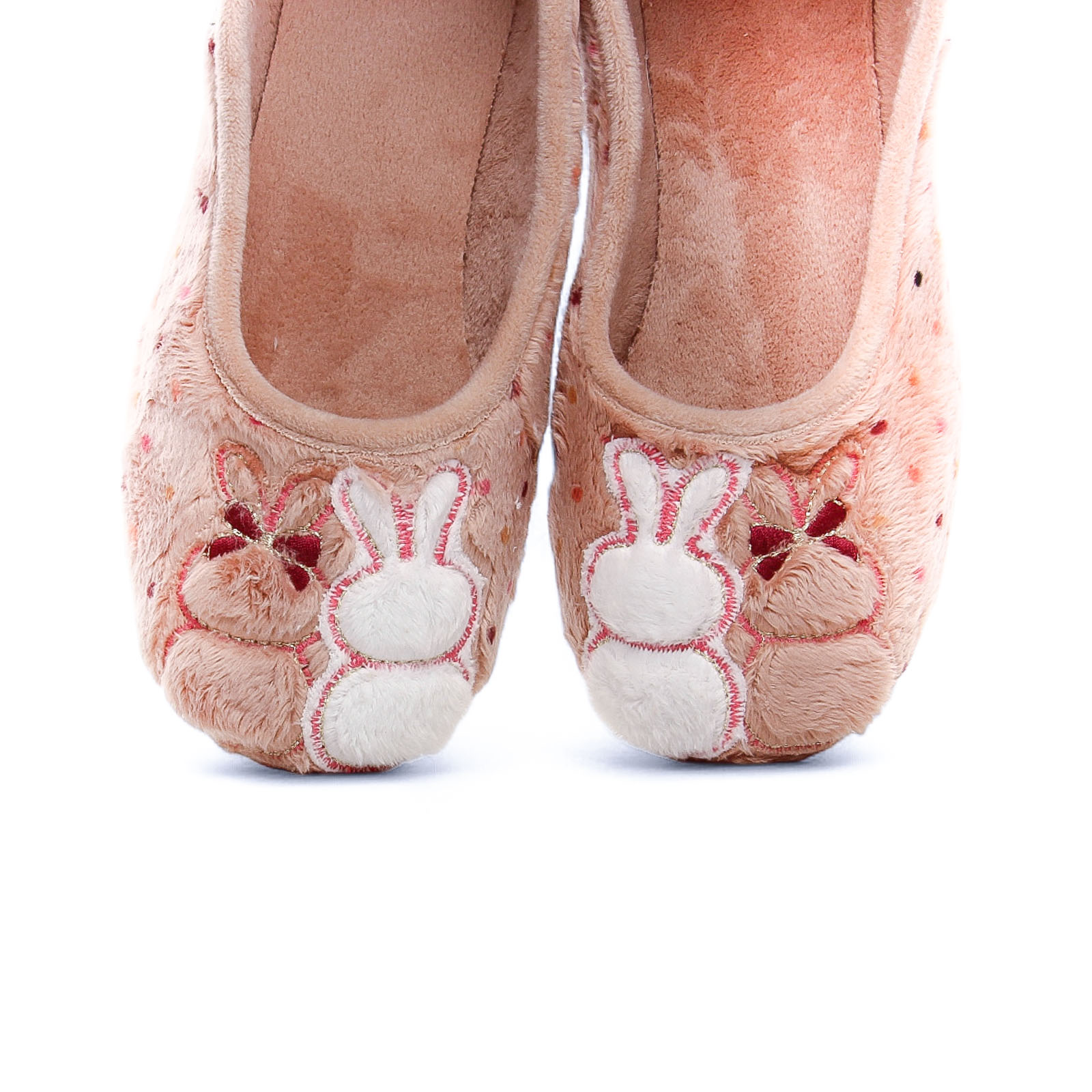 Chaussons de la marque Maison De L'espadrille de couleur rose. Chaussons ballerines avec une doublure chaude, une tige textile et une semelle 100% caoutchouc, chaussons avec un mignon petit lapin brodé sur l'empeigne.