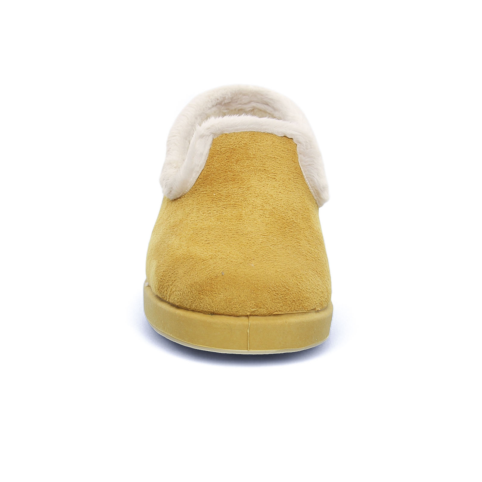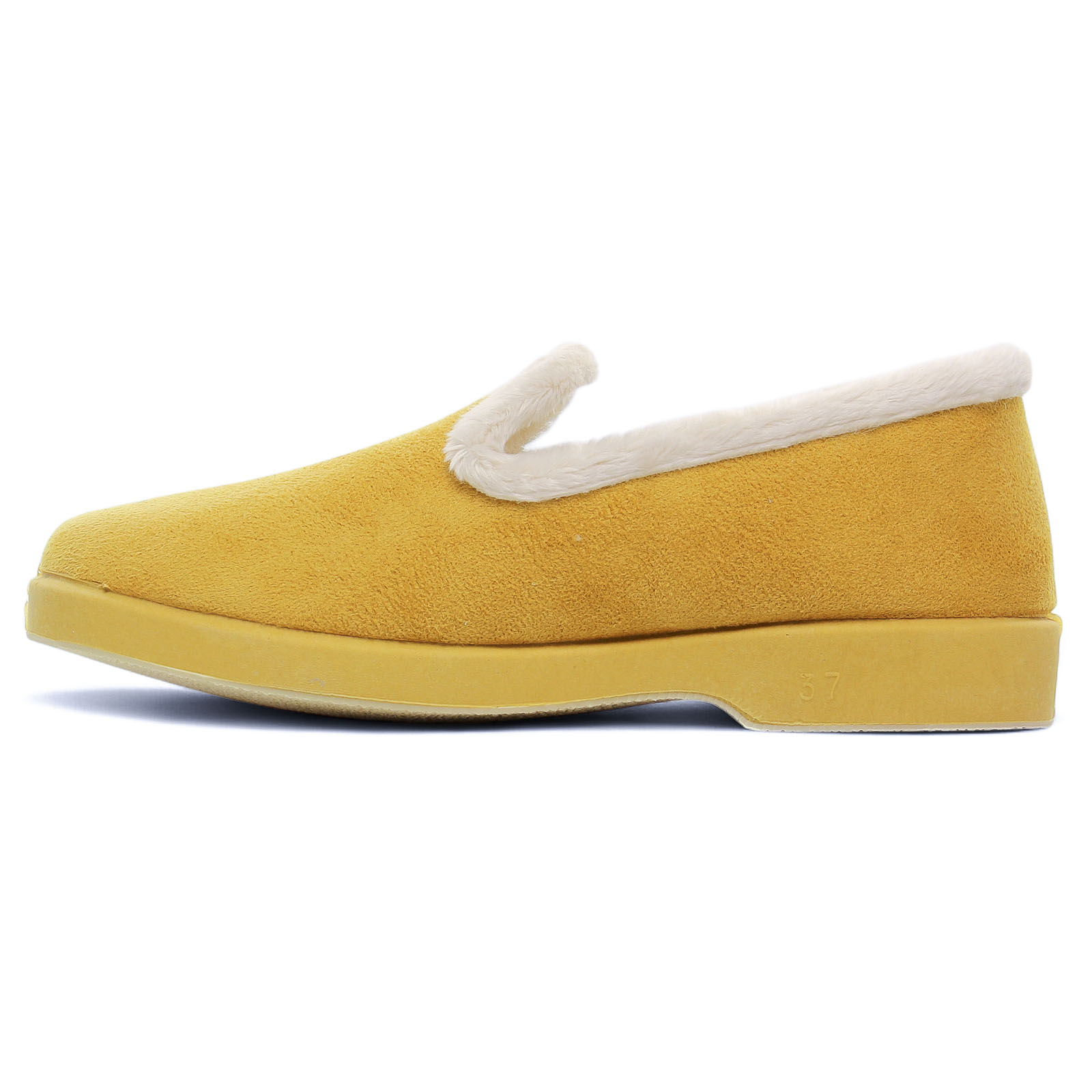 Chaussons de la marque Maison De L'espadrille de couleur jaune. Chaussons avec une doublure chaude 100% laine, une tige textile et une semelle 100% caoutchouc, chaussons signés La Maison de l'Espadrille et disponibles dans de nombreux coloris.
