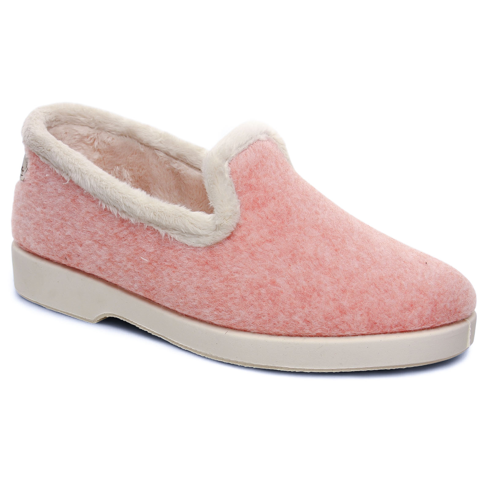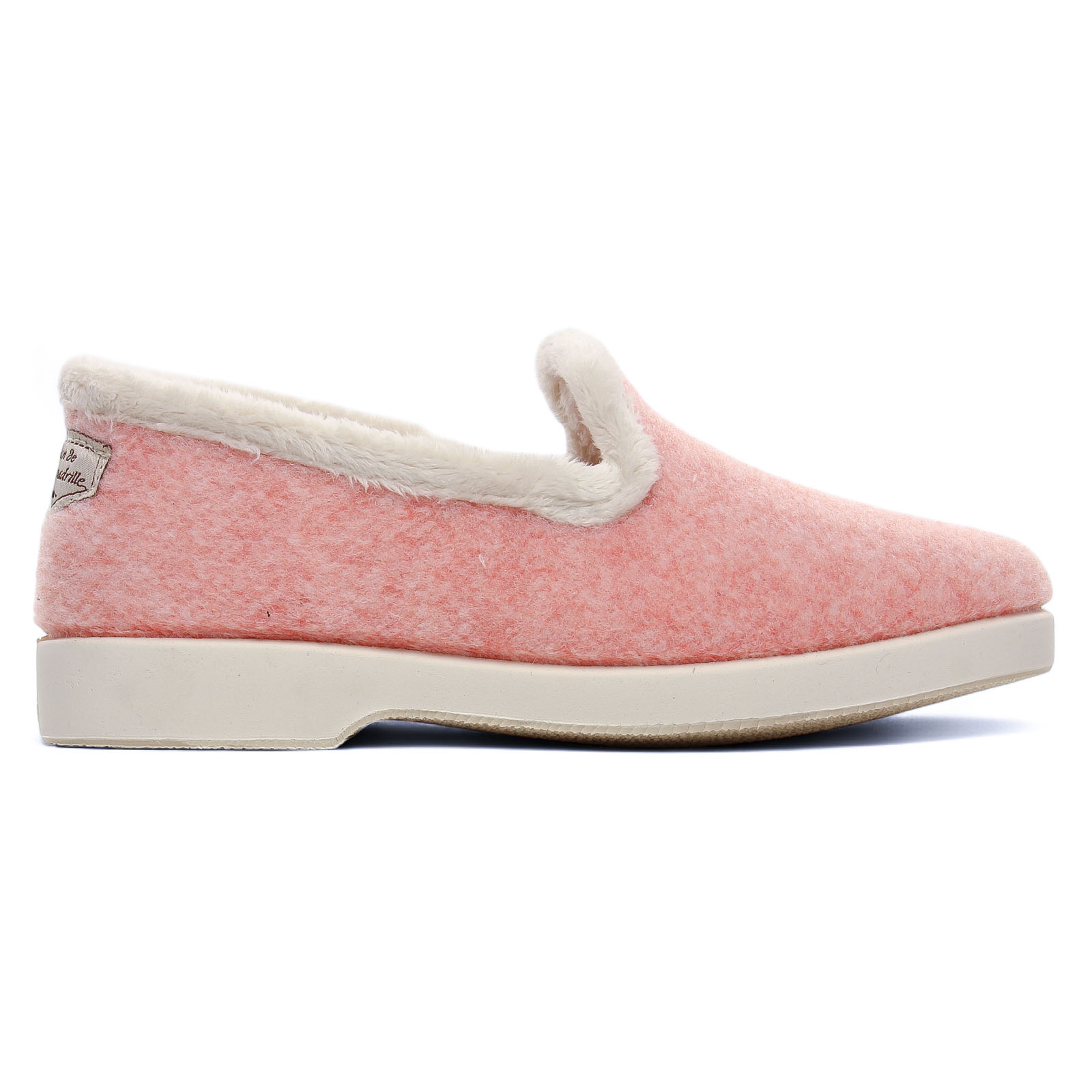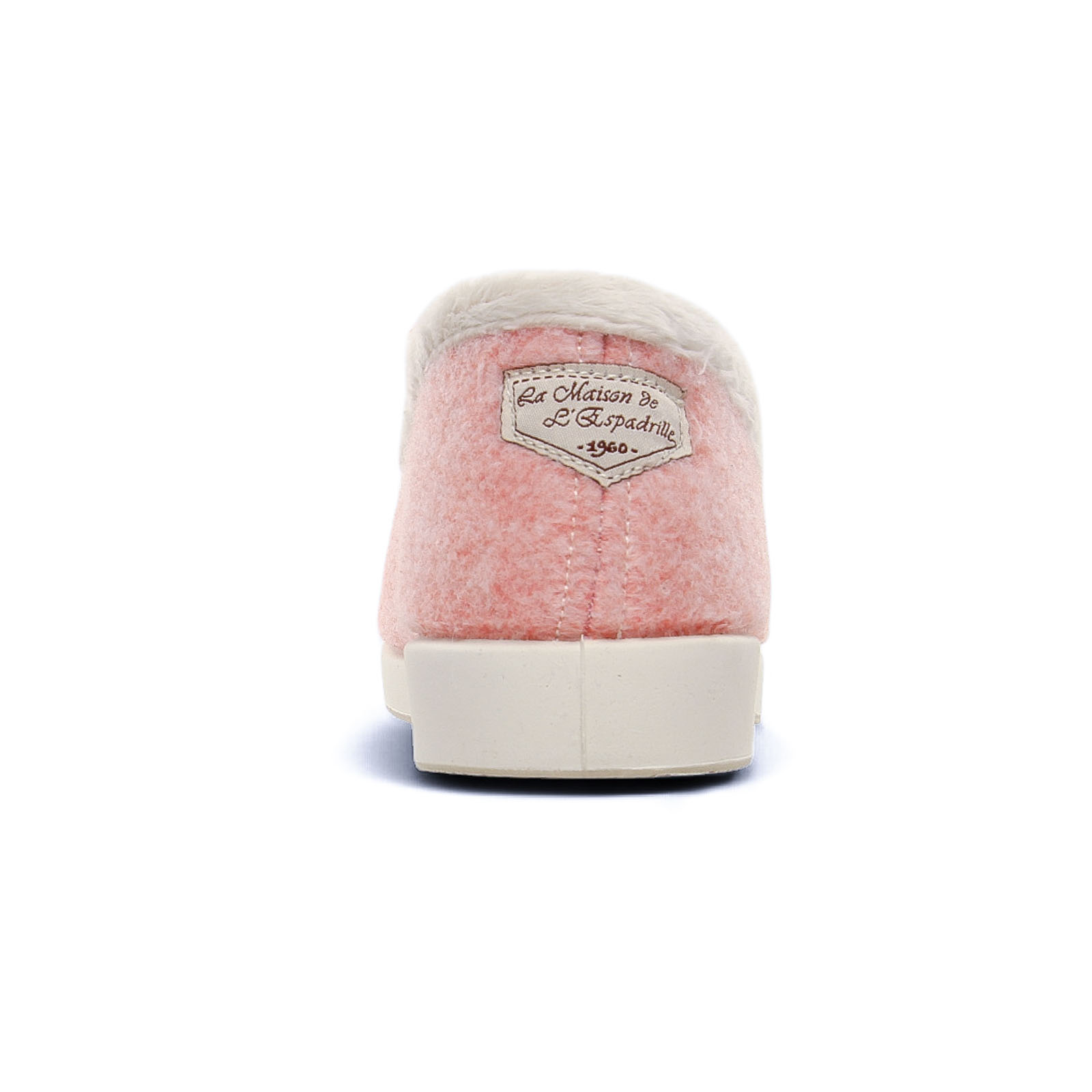 Chaussons de la marque Maison De L'espadrille de couleur rose. Chaussons avec une doublure chaude 100% laine, une tige textile et une semelle 100% caoutchouc, chaussons signés La Maison de l'Espadrille et disponibles dans de nombreux coloris.