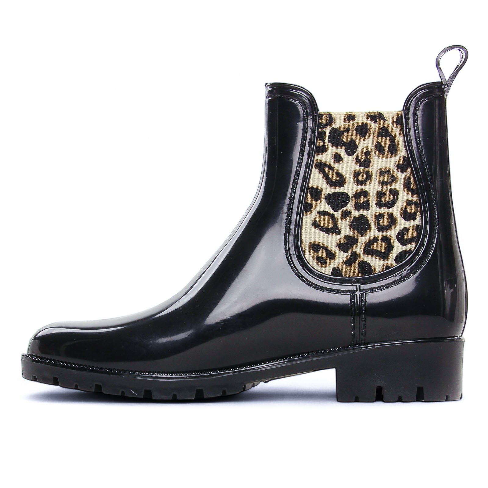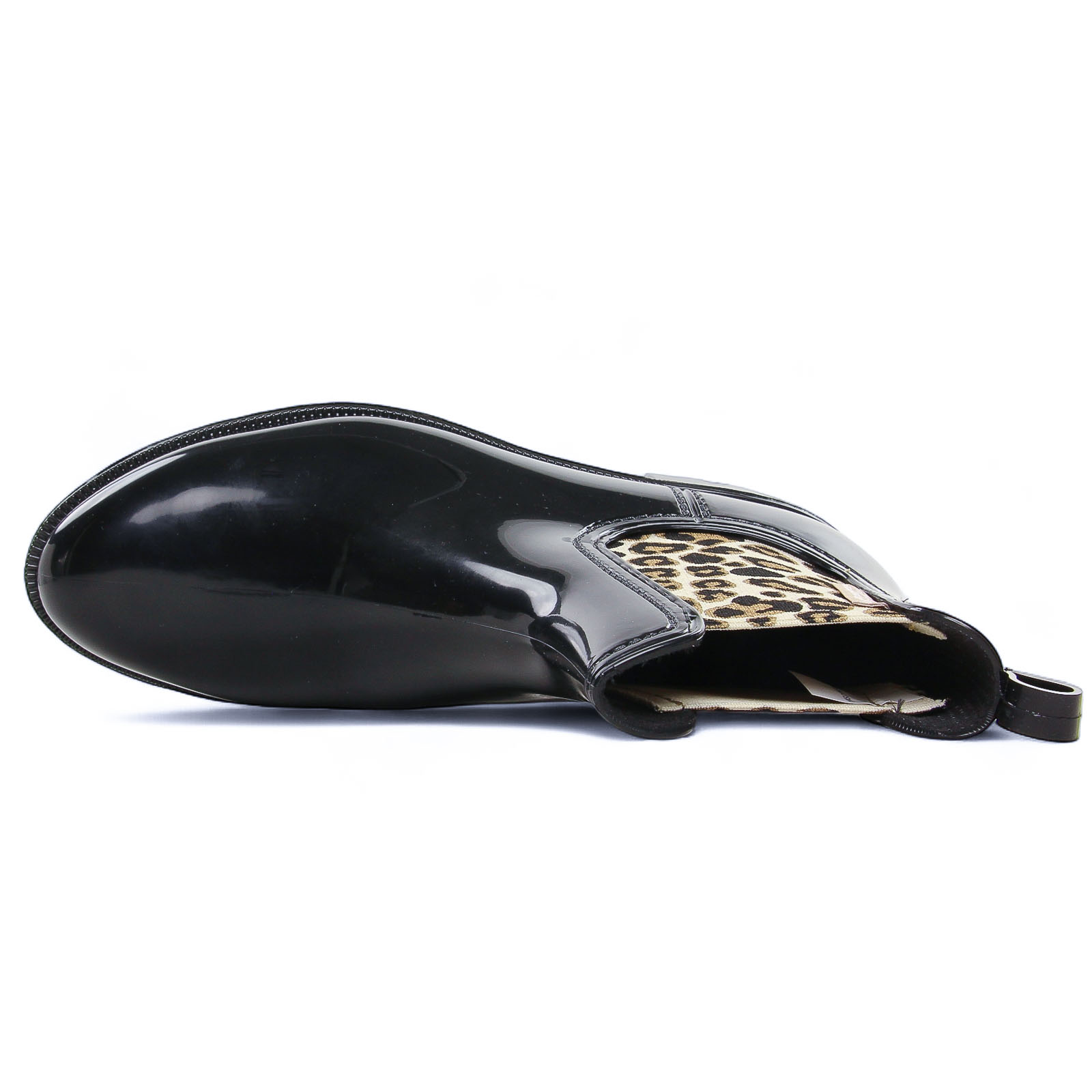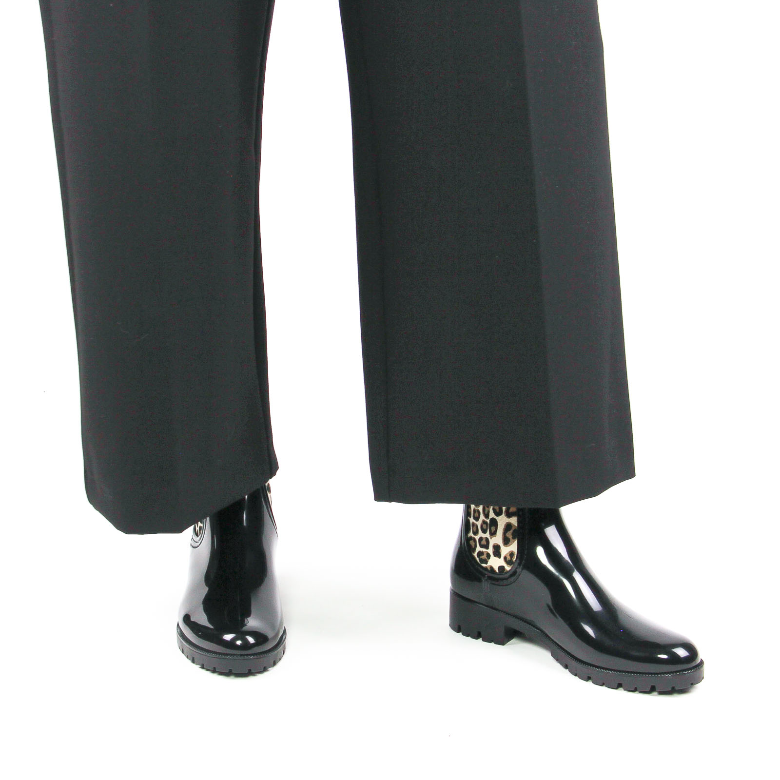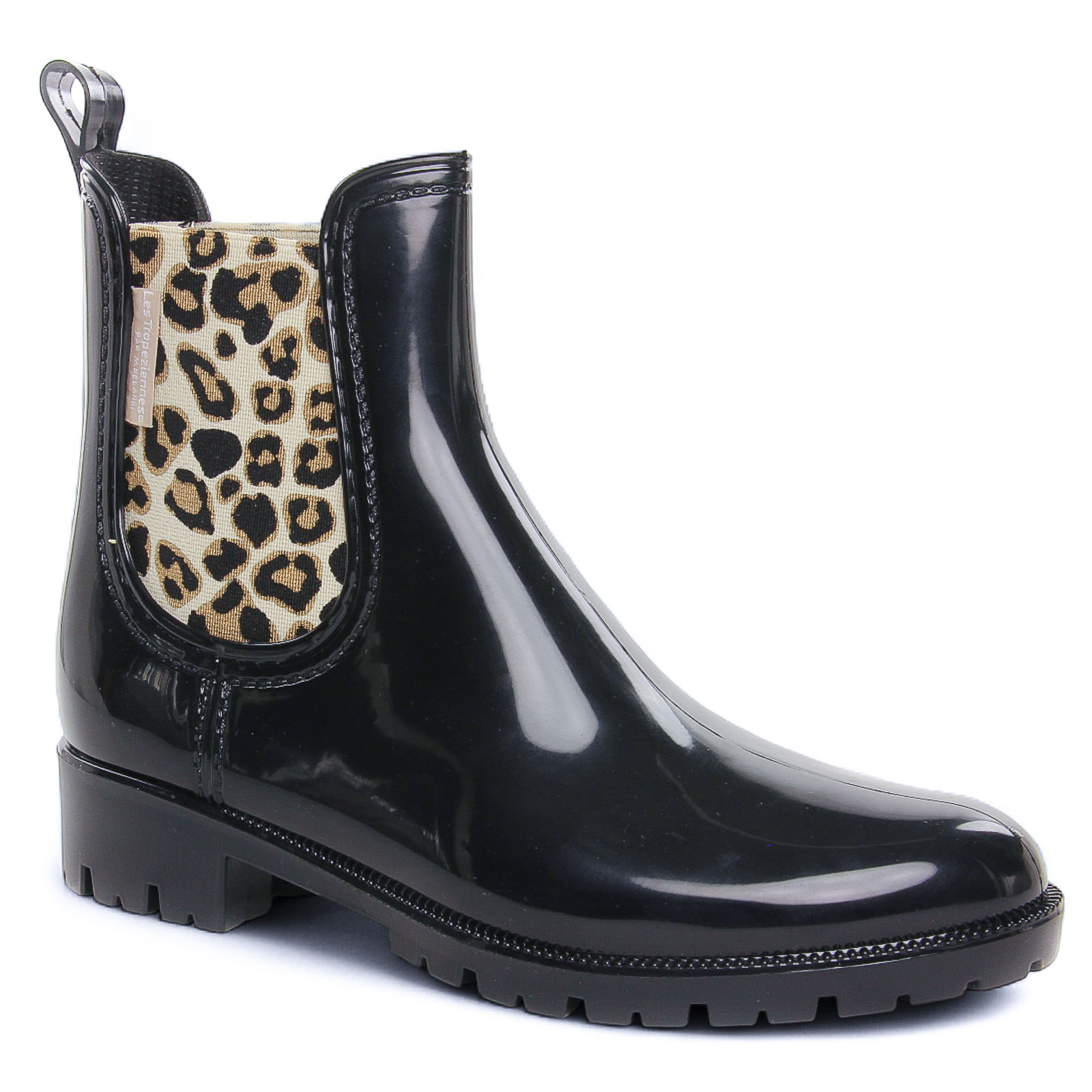 Boots Élastiquées de la marque Les Tropéziennes de couleur noir. Boots de pluie sur le design d'une bottines Chelsea, une tige en caoutchouc imperméable, une touche de glamour avec son insert léopard ou un liseré doré, boots de pluie signées par Les Tropéziennes reviennent pour cette nouvelle colelction automne hiver.