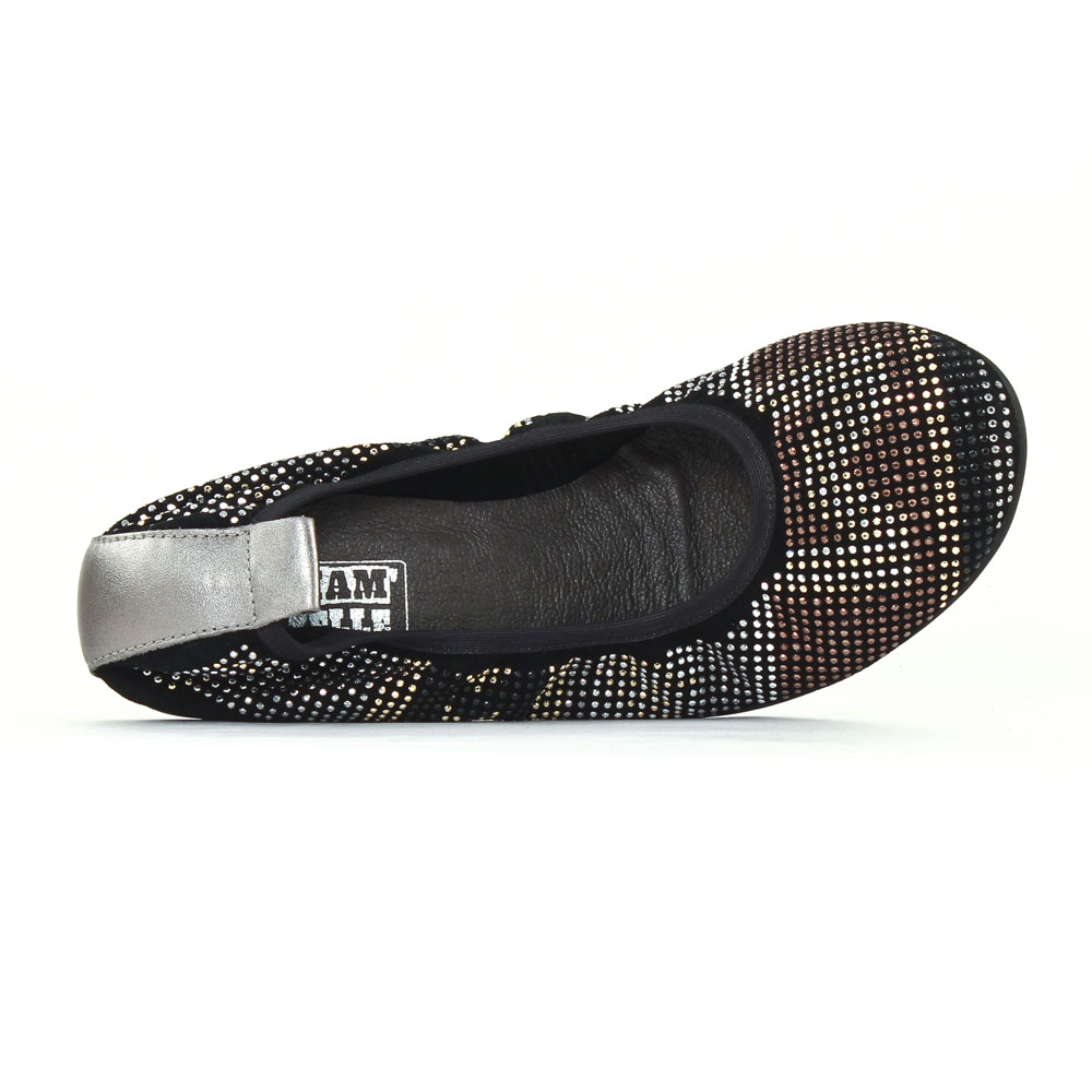 Ballerines de la marque Mamzelle de couleur noir. Ballerines originales et tendances signées par la marque française Mam'Zelle, design branché tendance disco, super confortables, tout cuir sur une semelle souple et tendre en gomme élastomère.