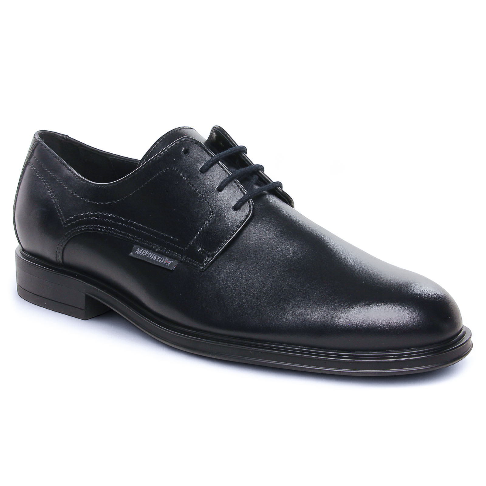 Derbies de la marque Mephisto de couleur noir. La Mephisto Kevin homme est une derbie élégante qui associe style intemporel et confort supérieur. Réalisée en cuir haut de gamme, elle se distingue par ses finitions soignées et sa coupe classique, idéale pour les occasions habillées comme pour le quotidien. Dotée de la technologie exclusive Soft-Air, la Kevin assure une marche souple en réduisant les chocs, tout en préservant vos articulations et votre dos. Sa semelle extérieure robuste et antidérapante garantit stabilité et longévité, même lors d’une utilisation intensive !