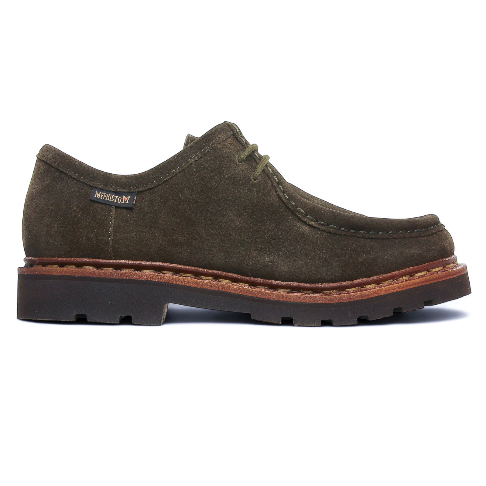 Derbies de la marque Mephisto de couleur vert kaki. Une tige en daim vert kaki ou en cuir lisse noir. Optez pour l'alliance parfaite entre style décontracté et confort absolu avec cette derby Mephisto pour femme, ce modèle à lacets affiche un look casual chic tendance, rehaussé par des surpiqûres authentiques. Grâce à l'intégration de la Technologie SOFT-AIR et du SHOCK-ABSORBER, chaque pas est amorti, réduisant les chocs au minimum pour une marche sans fatigue. La semelle amovible et la semelle crantée robuste en font la chaussure idéale pour vos journées actives en ville.