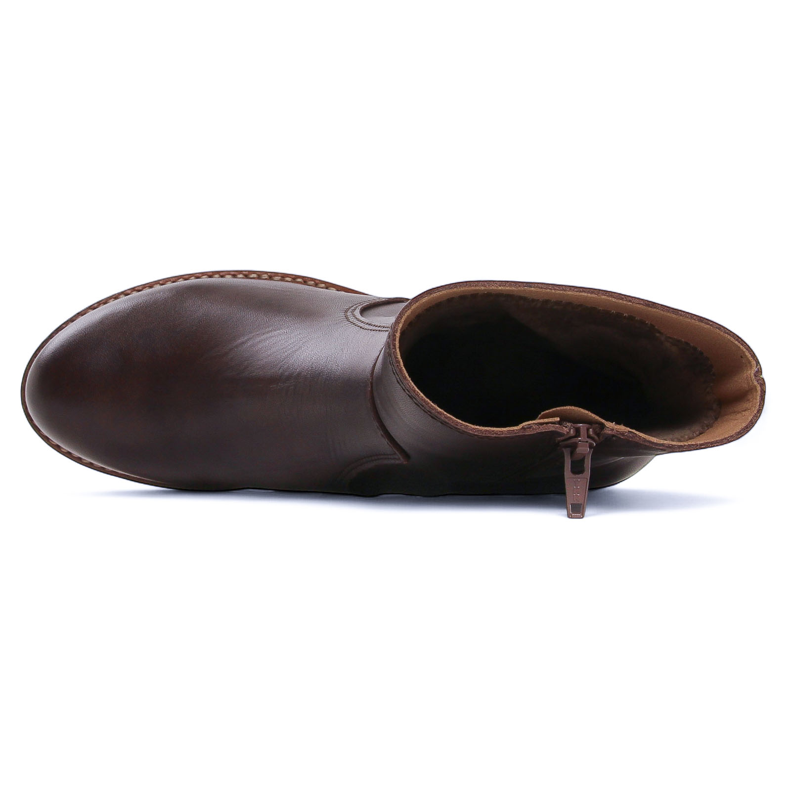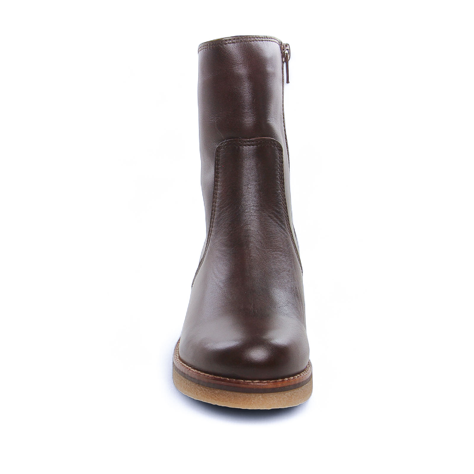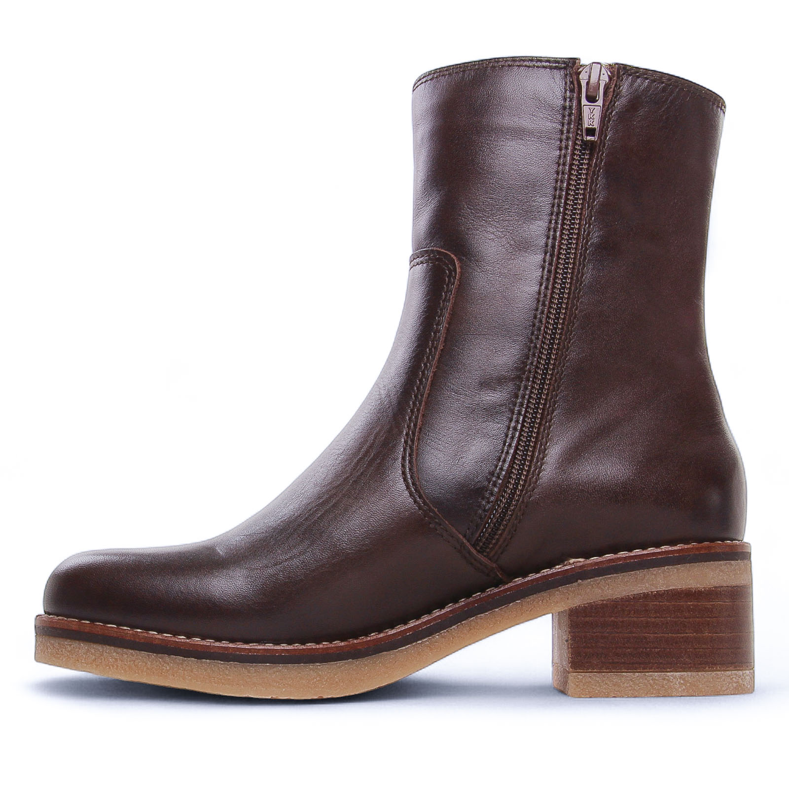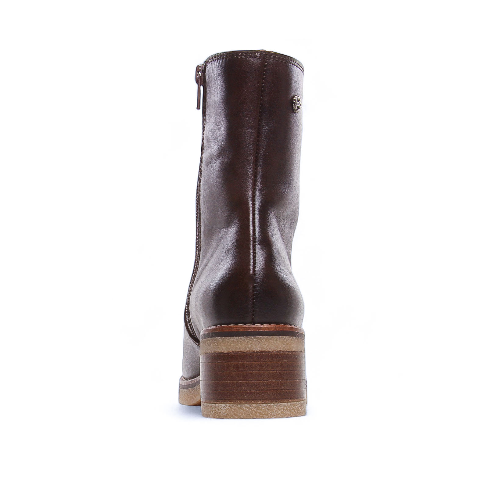 Bottines Cuir de la marque Porronet de couleur marron moka. Superbes bottines à talon avec une tige en cuir lisse marron cognac, un zip coté intérieur, une semelle intérieure et doublure en textile microfibre finition velours, un talon carré bloc d'une hauteur de 5 cm, une semelle crêpe souple et tendre, bottines élégante au design sobre et chic signées Porronet.