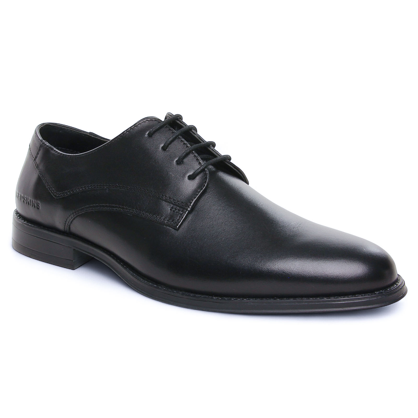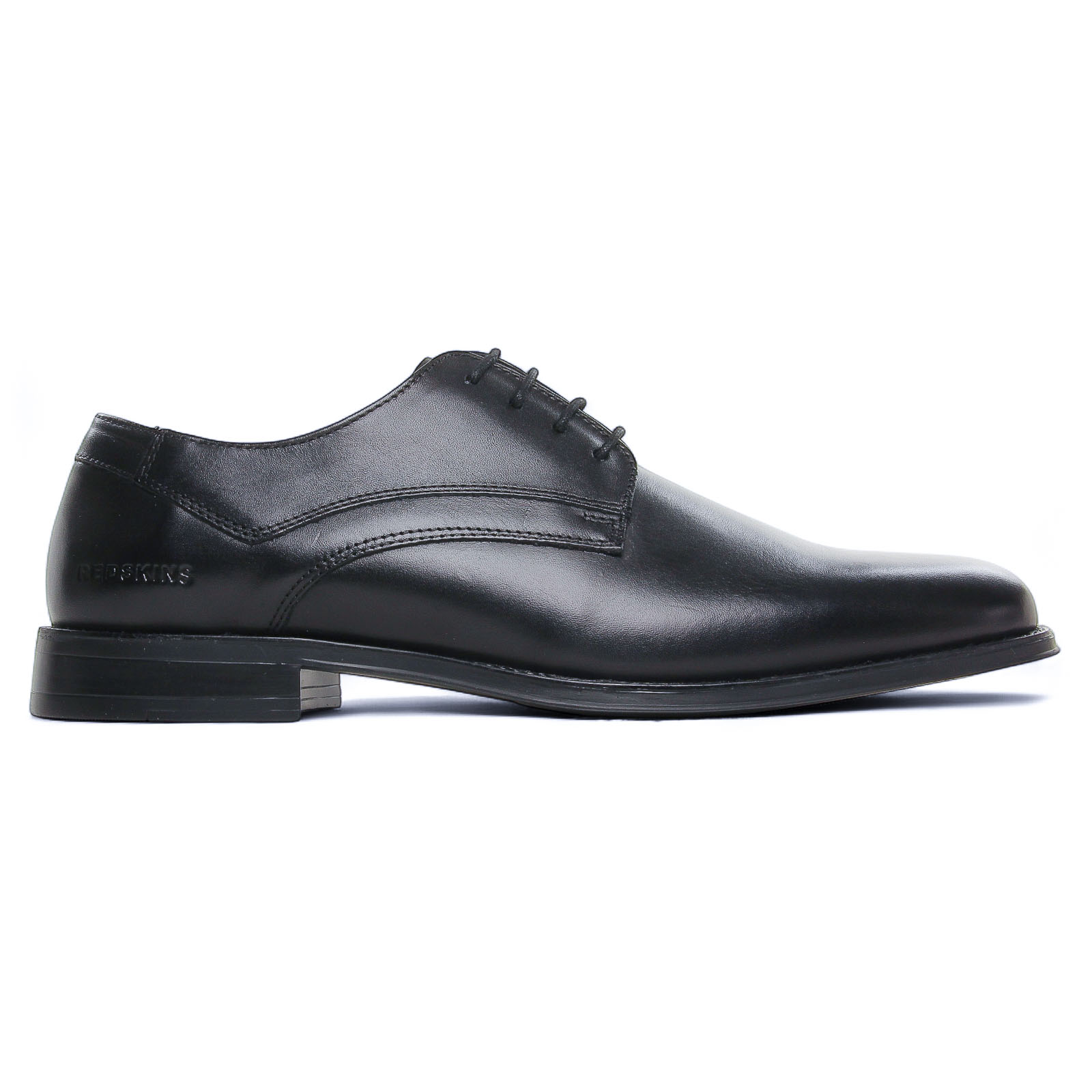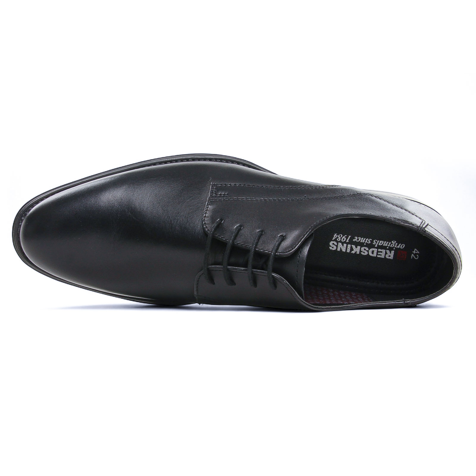 Derbies de la marque Redskins de couleur noir. Une tige en cuir lisse noir, une semelle souple en gomme élastomère très confortable à la marche, une doublure et première de propreté en cuir, chaussures de ville style derbie à bout droit uni signées Redskins.
