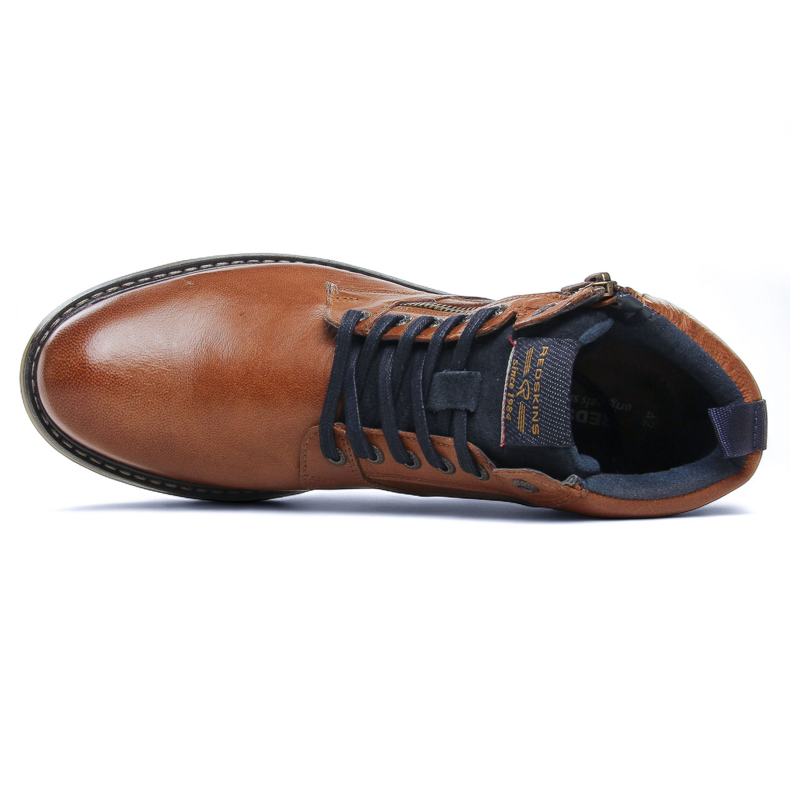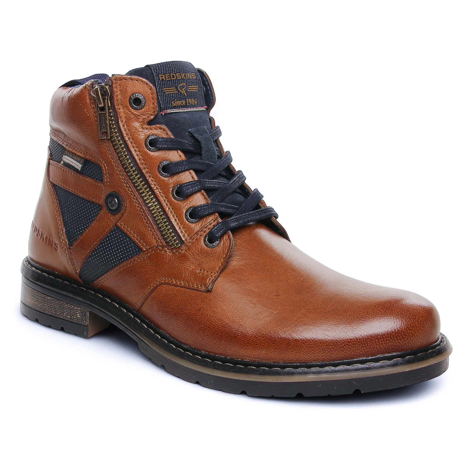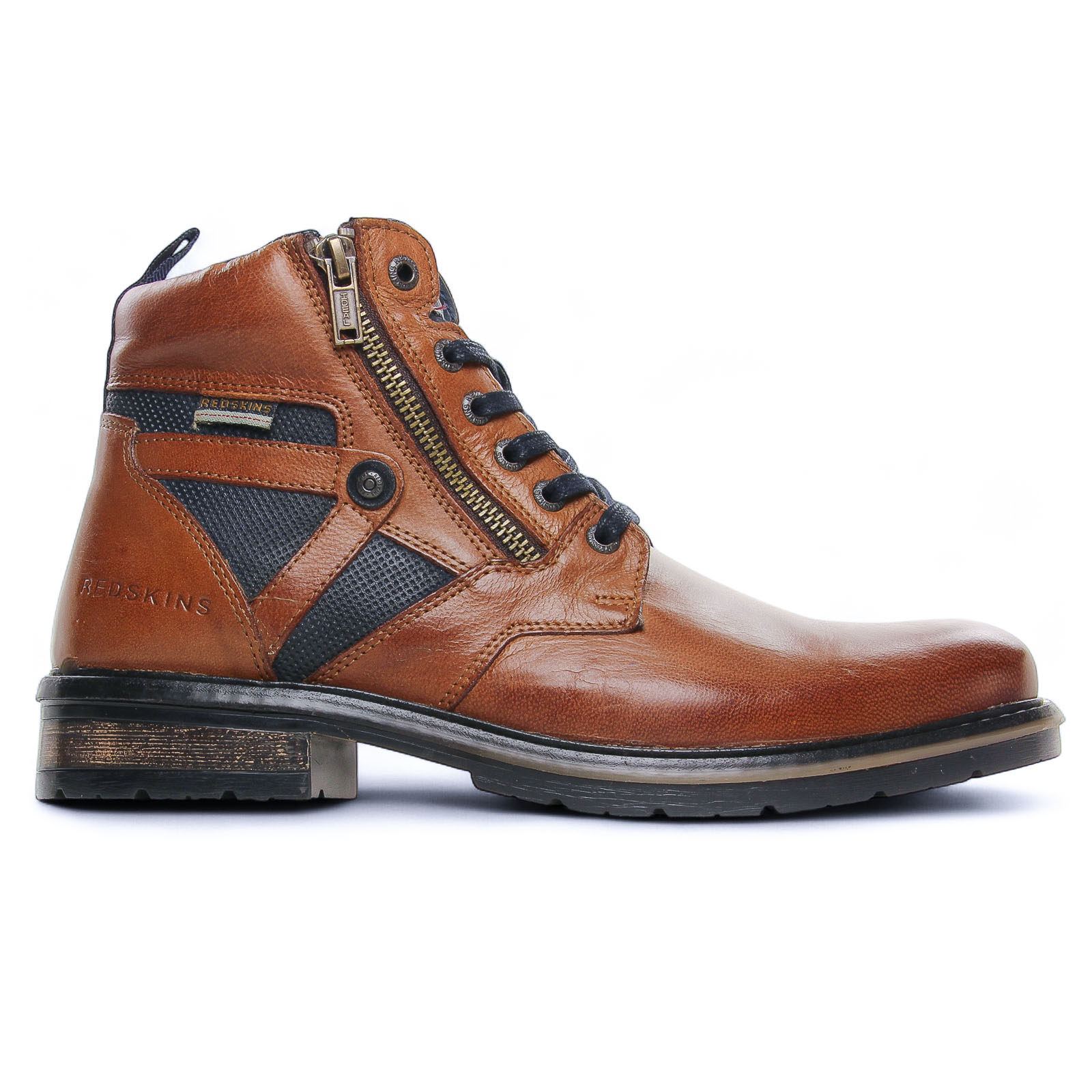 Chaussures Montantes de la marque Redskins de couleur marron marine. Taillées pour l'hiver et ses intempéries, voici des chaussures montantes en cuir avec une doublure textile et première cuir, une semelle souple en gomme élastomère, chaussures disponible en marron cognac ou noir pour cette nouvelle collection signées Redskins automne hiver.