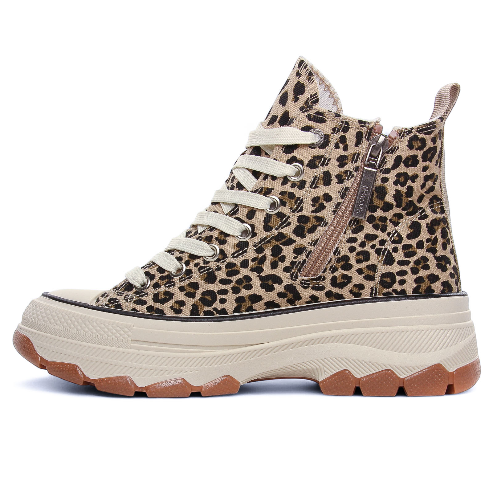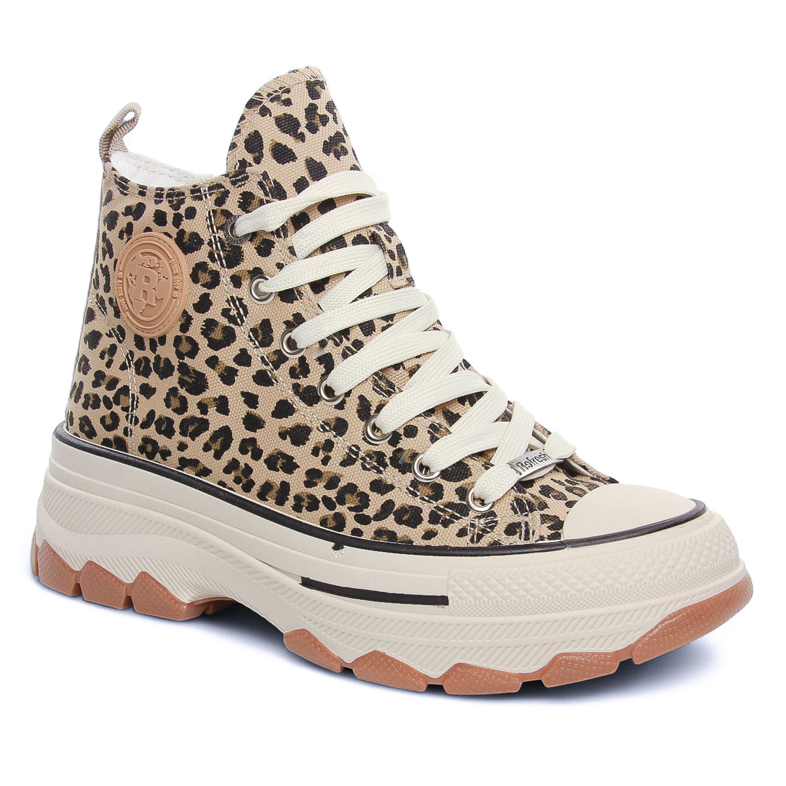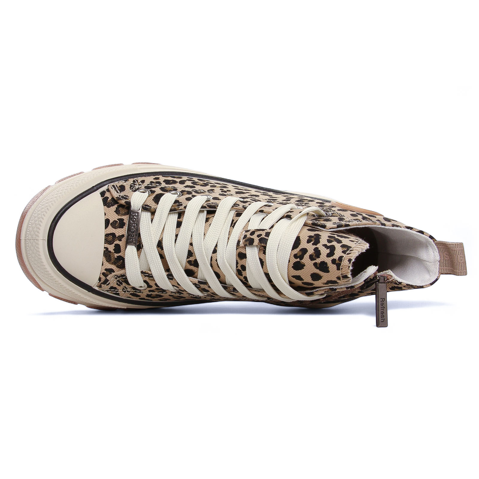 Baskets Mode de la marque Refresh de couleur leopard creme. Affirmez votre style avec ces baskets montantes Refresh femme, un modèle tendance qui combine originalité et confort. Avec leur imprimé léopard audacieux et leur semelle épaisse crantée, elles apportent une touche mode et contemporaine à toutes vos tenues. Fabriquées en matière résistante, elles offrent un excellent maintien grâce à leur tige montante et leur laçage ajustable. La semelle compensée assure un confort optimal tout en allongeant la silhouette, parfaites avec un jean slim ou une robe fluide, ces baskets tendances deviendront un incontournable de vos looks urbains et décontractés.
