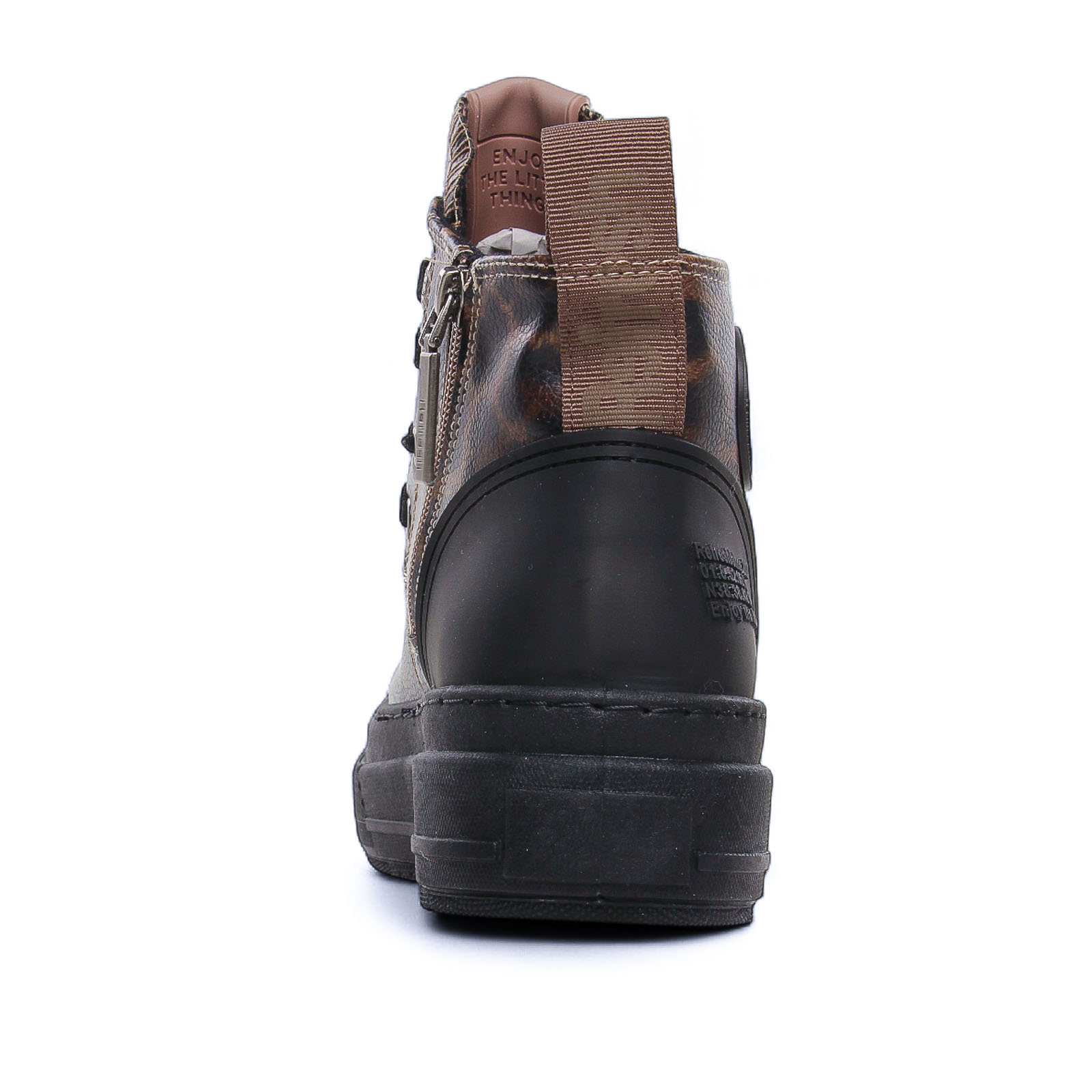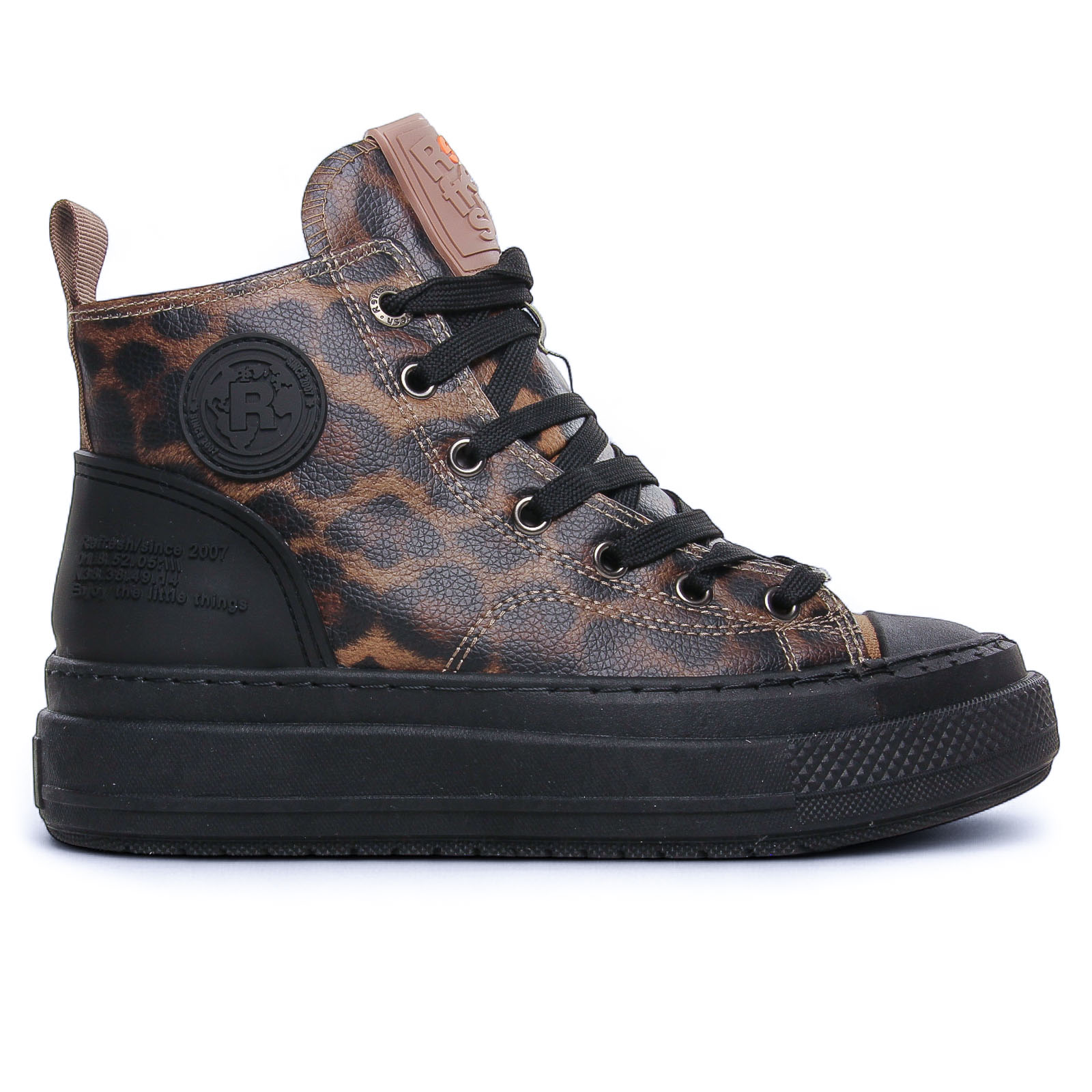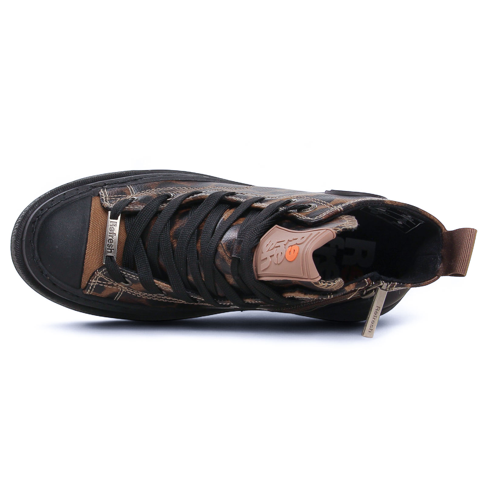 Baskets Mode de la marque Refresh de couleur fauve noir. Adoptez un look tendance avec les baskets montantes Refresh femme, disponibles en deux versions pour s’adapter à toutes vos envies. Avec leur design moderne, leur semelle épaisse crantée et leur confort optimal, elles sont parfaites pour un style urbain et décontracté. Leur tige montante assure un maintien idéal, tandis que le laçage classique permet un ajustement personnalisé. Que vous optiez pour une version imprimée audacieuse ou une version unie plus discrète, ces baskets Refresh apportent une touche stylée et contemporaine à votre look.