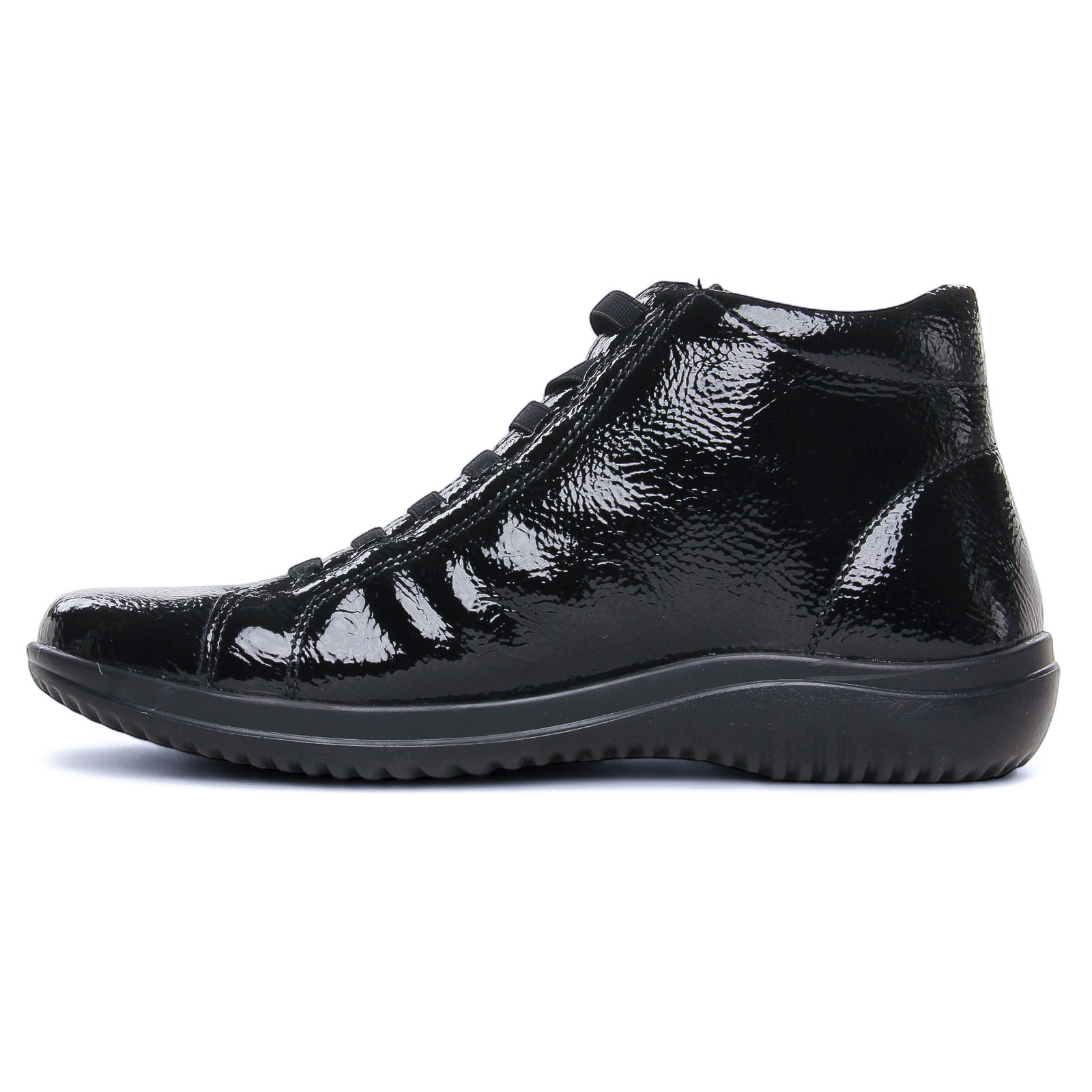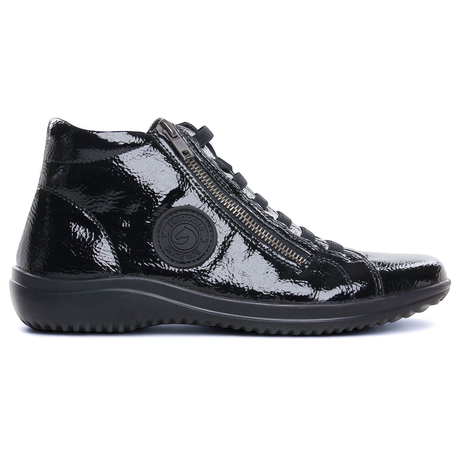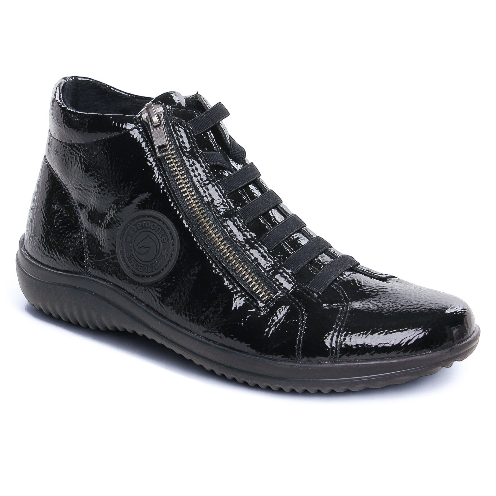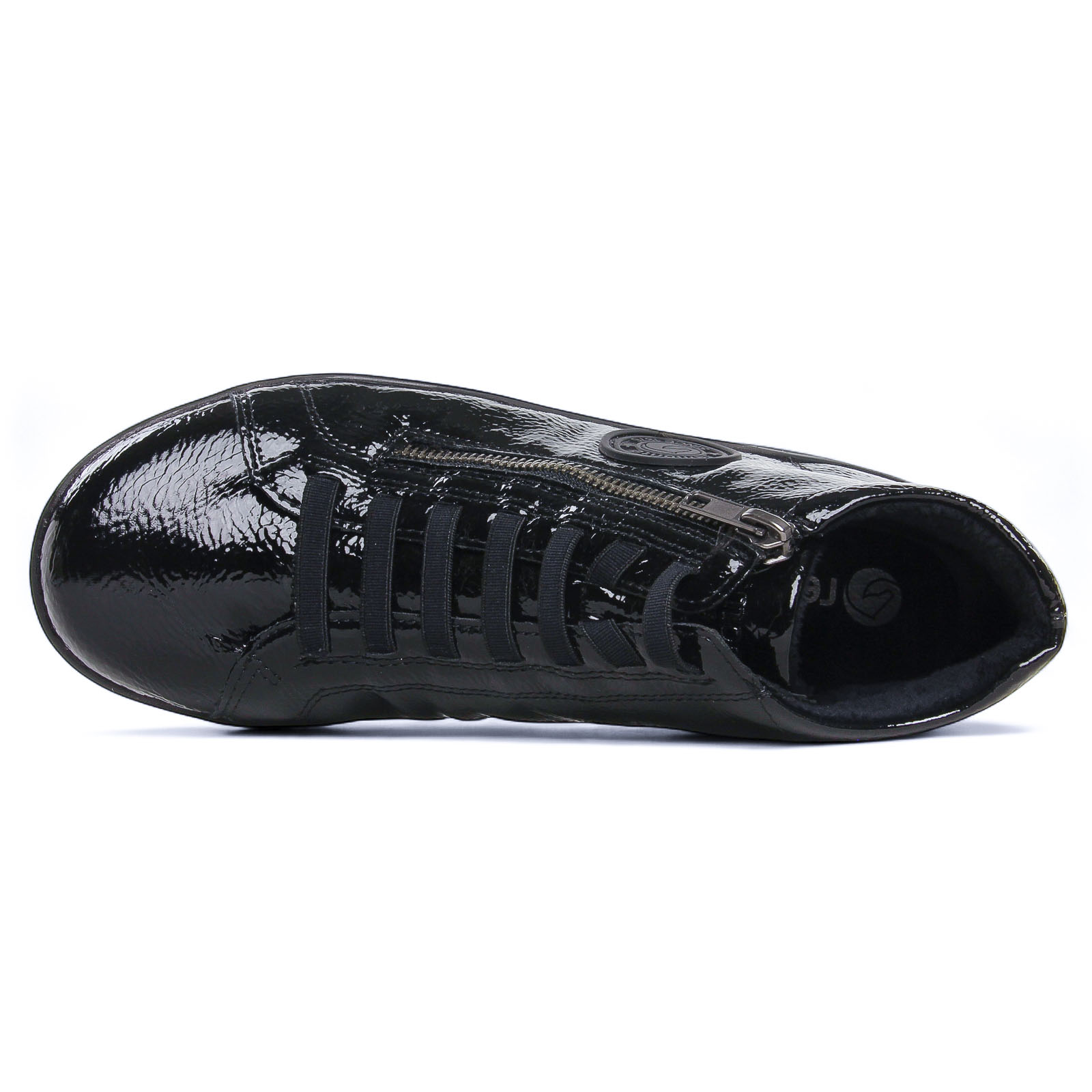 Low Boots de la marque Remonte de couleur noir. La basket Remonte D1E70-02 noir combine confort et élégance décontractée dans un design moderne. Confectionnée en simili cuir vernis, elle séduit par sa souplesse, sa respirabilité et sa finition de qualité. Dotée d’une semelle souple et légère, elle assure une marche agréable et sans fatigue, polyvalente, cette chaussures mi-montante se porte aussi bien au quotidien qu’en voyage, avec un pantalon casual ou une tenue plus habillée.