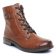 Bottines À Lacets de la marque Rieker de couleur marron. Une tige en simili cuir marron cognac, une doublure textile chaude parfaite pour cet hiver, bottines à lacets fourrées pourvues d'une glissière pour les enfiler facilement, semelle en gomme élastomère souple et confortables à la marche.