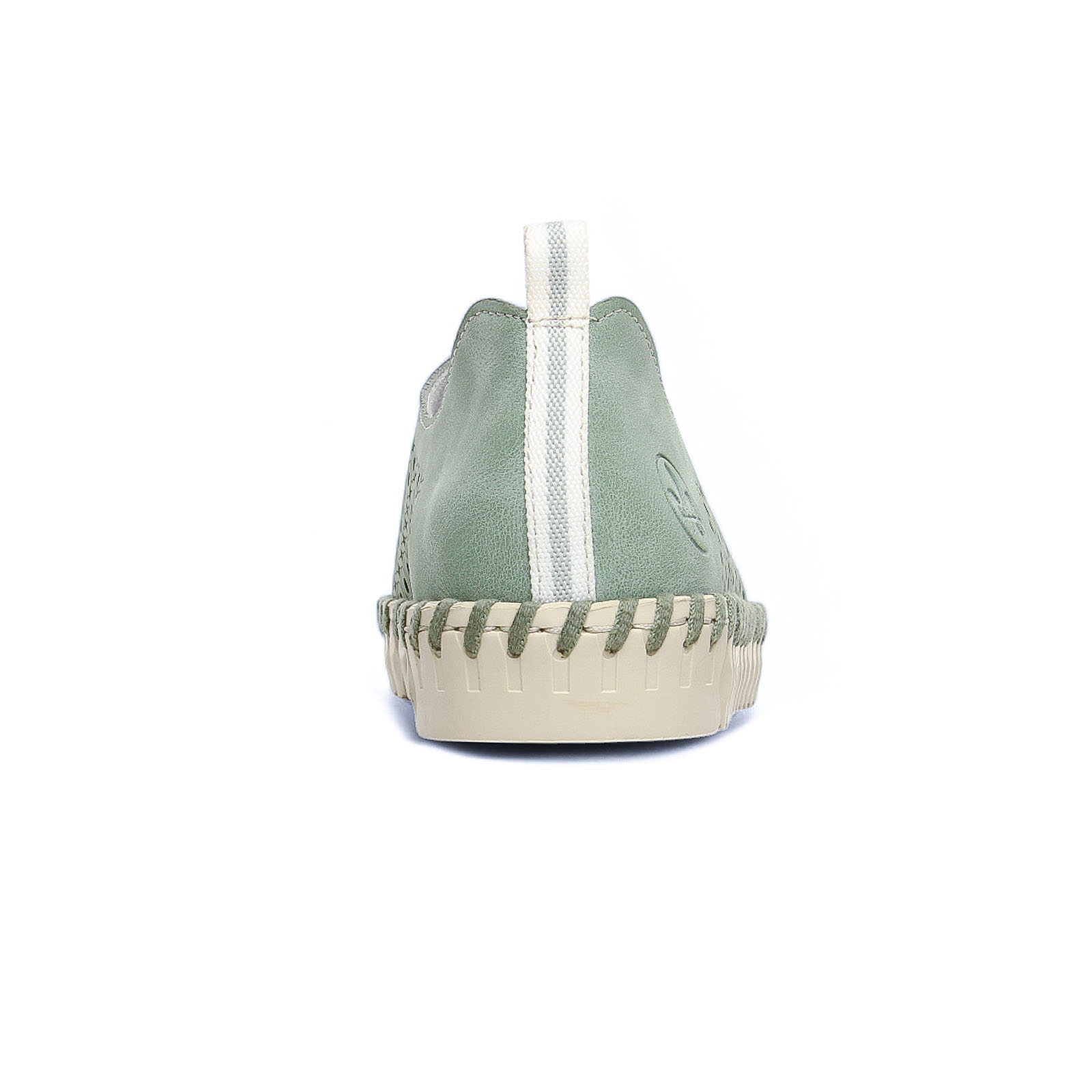 Mocassins Confort de la marque Rieker de couleur vert. Slip-on tige en imitation cuir vert, facile à mettre grâce au soufflet d'aisance sur le coup de pied, première cuir amovible, semelle gomme texturée et souple.