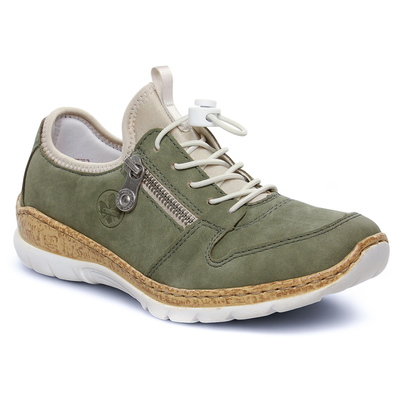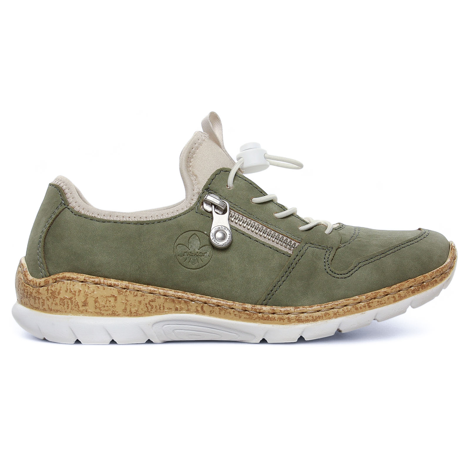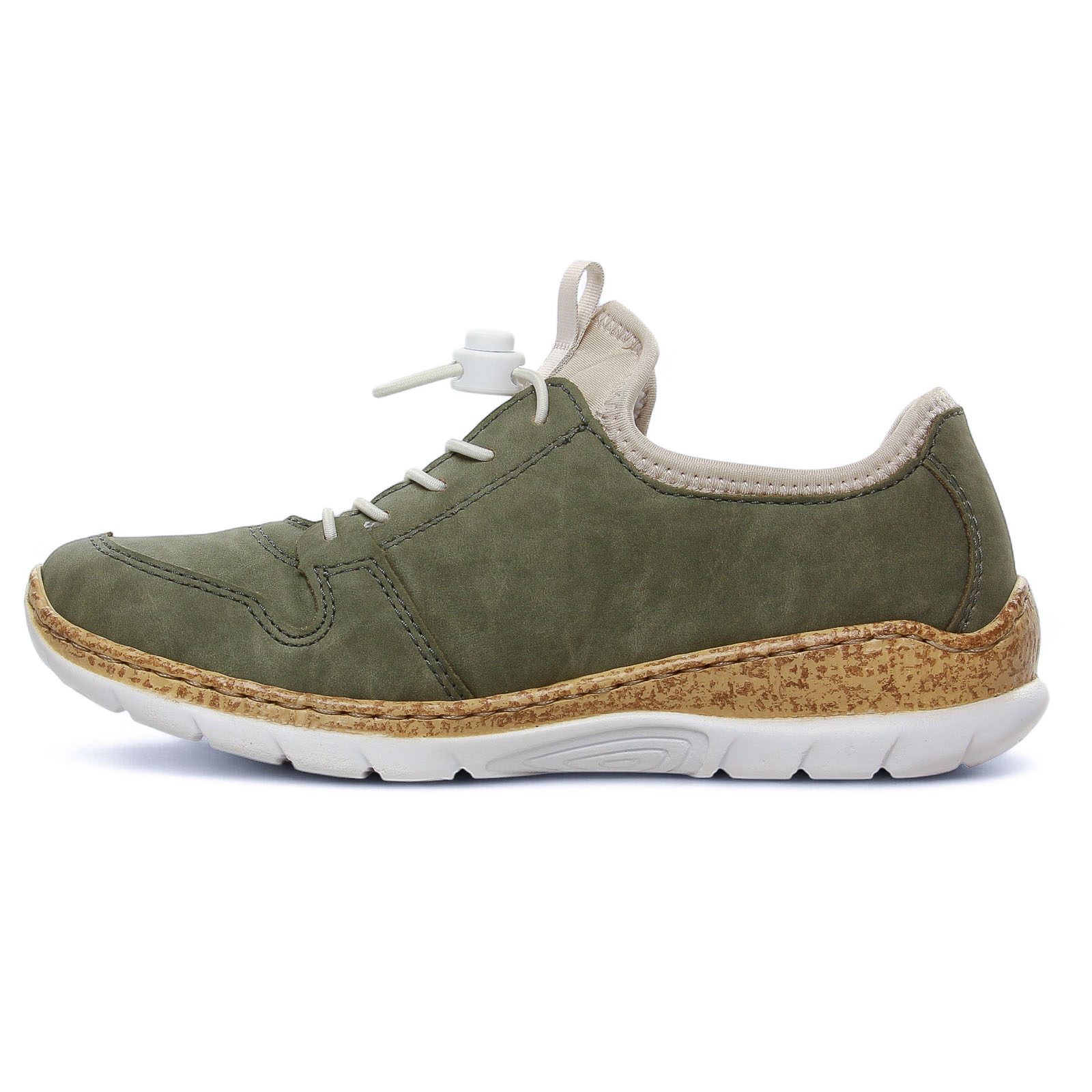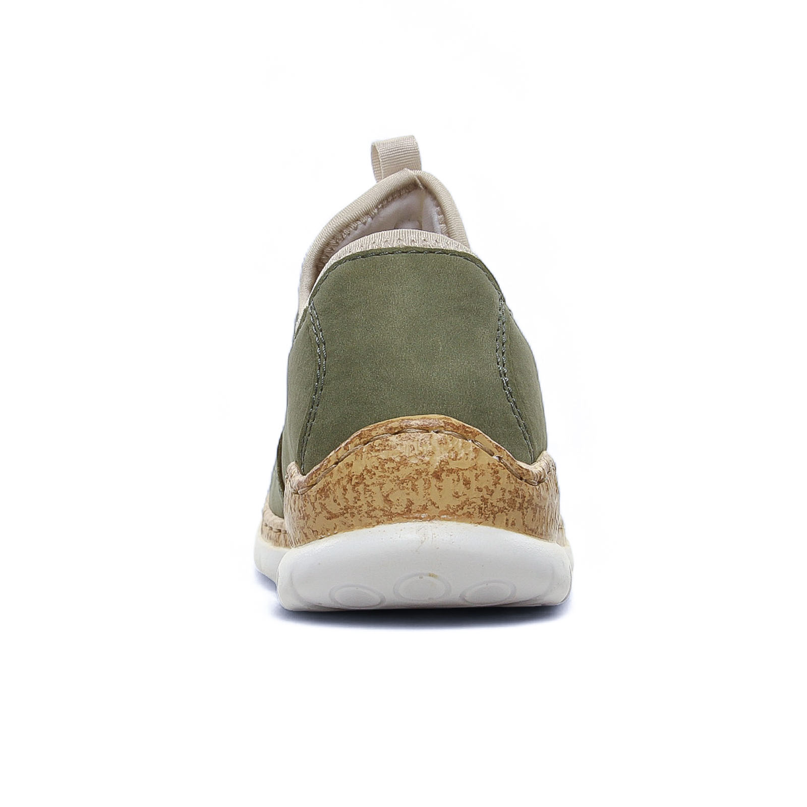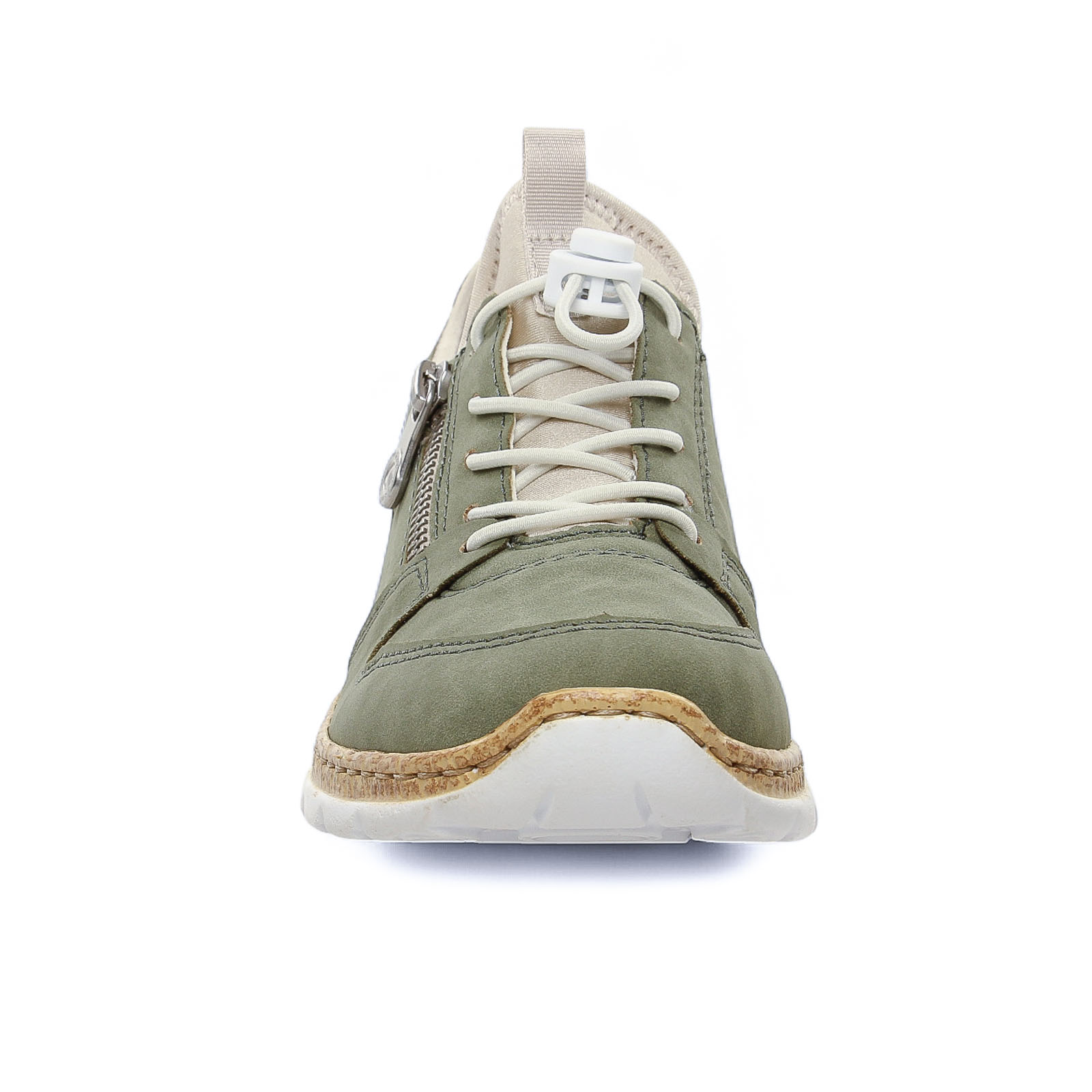 Tennis de la marque Rieker de couleur vert kaki. Pour votre tenue décontracte, optez pour ces baskets slip-on confort signées par la marque suisse allemande Rieker Femme Anti Stress. Tige à lacets élastiques, un zip fantaisie, une semelle gomme tendre et souple pour un bon amorti des chocs. Une première à mémoire de forme : sensation de confort garanti !