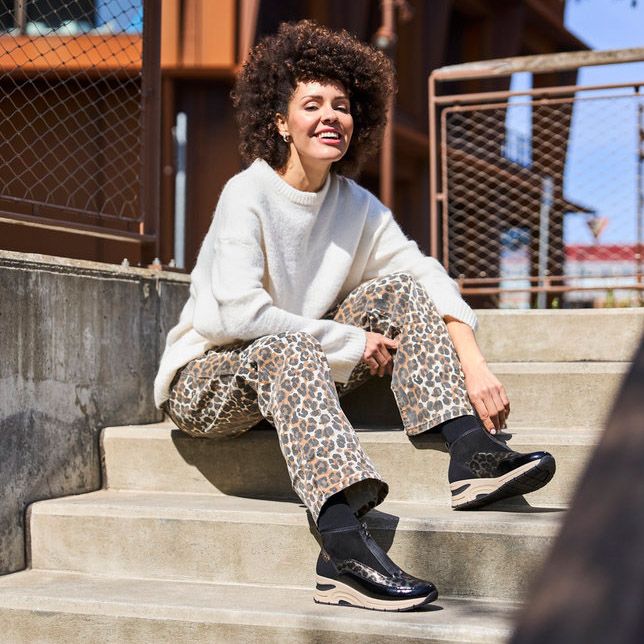 | Caractéristiques | semelle amovible, zip, vernis, léopard |