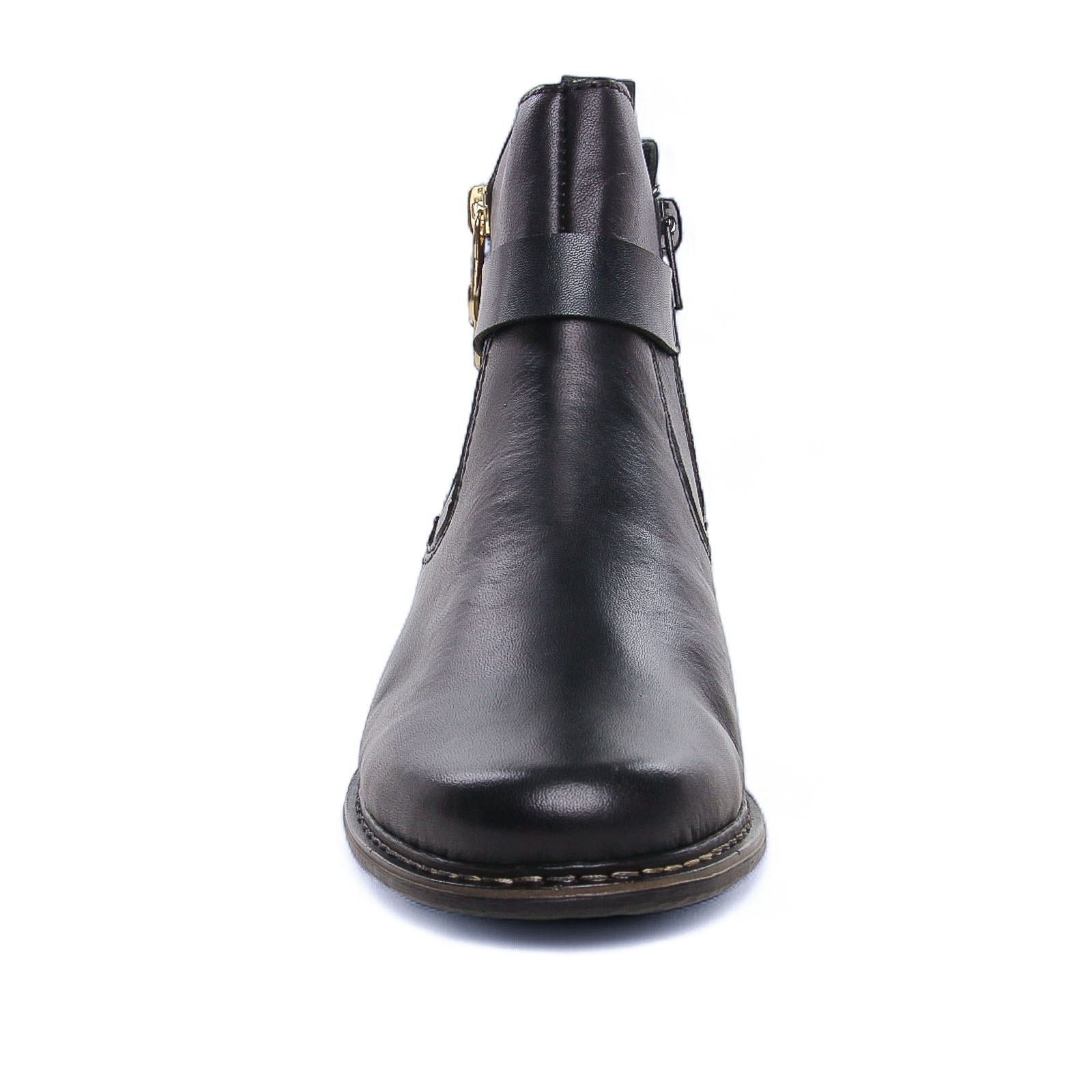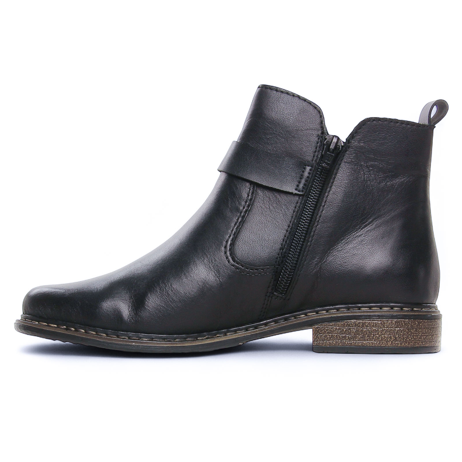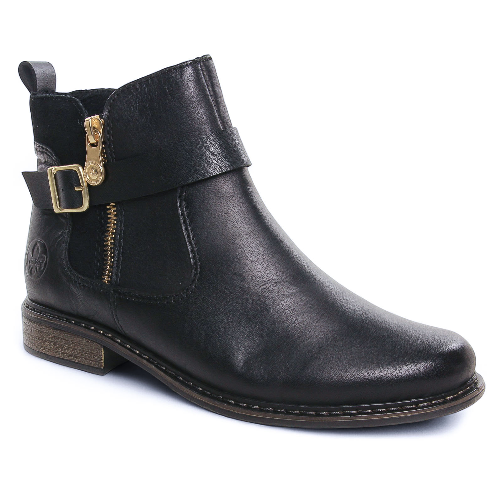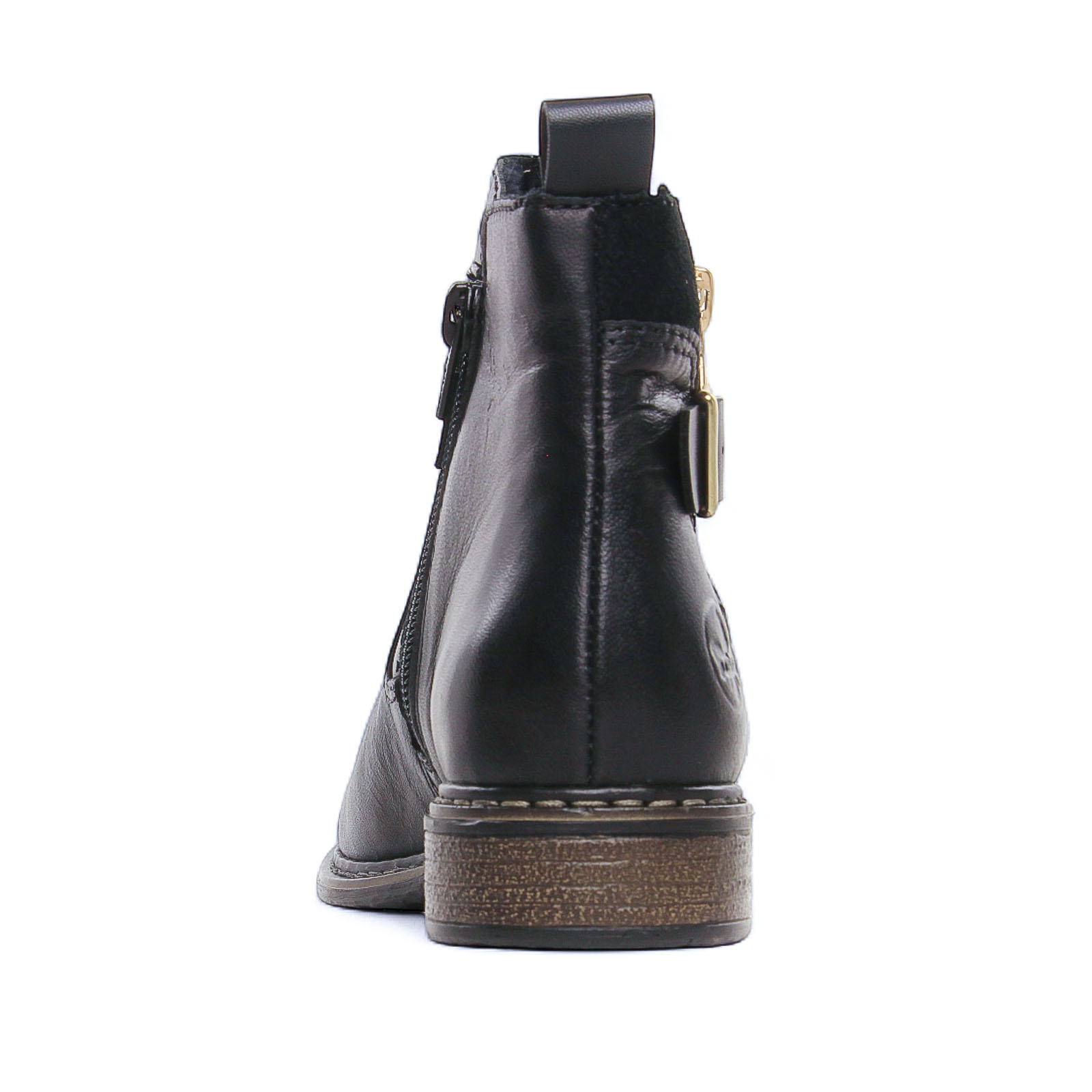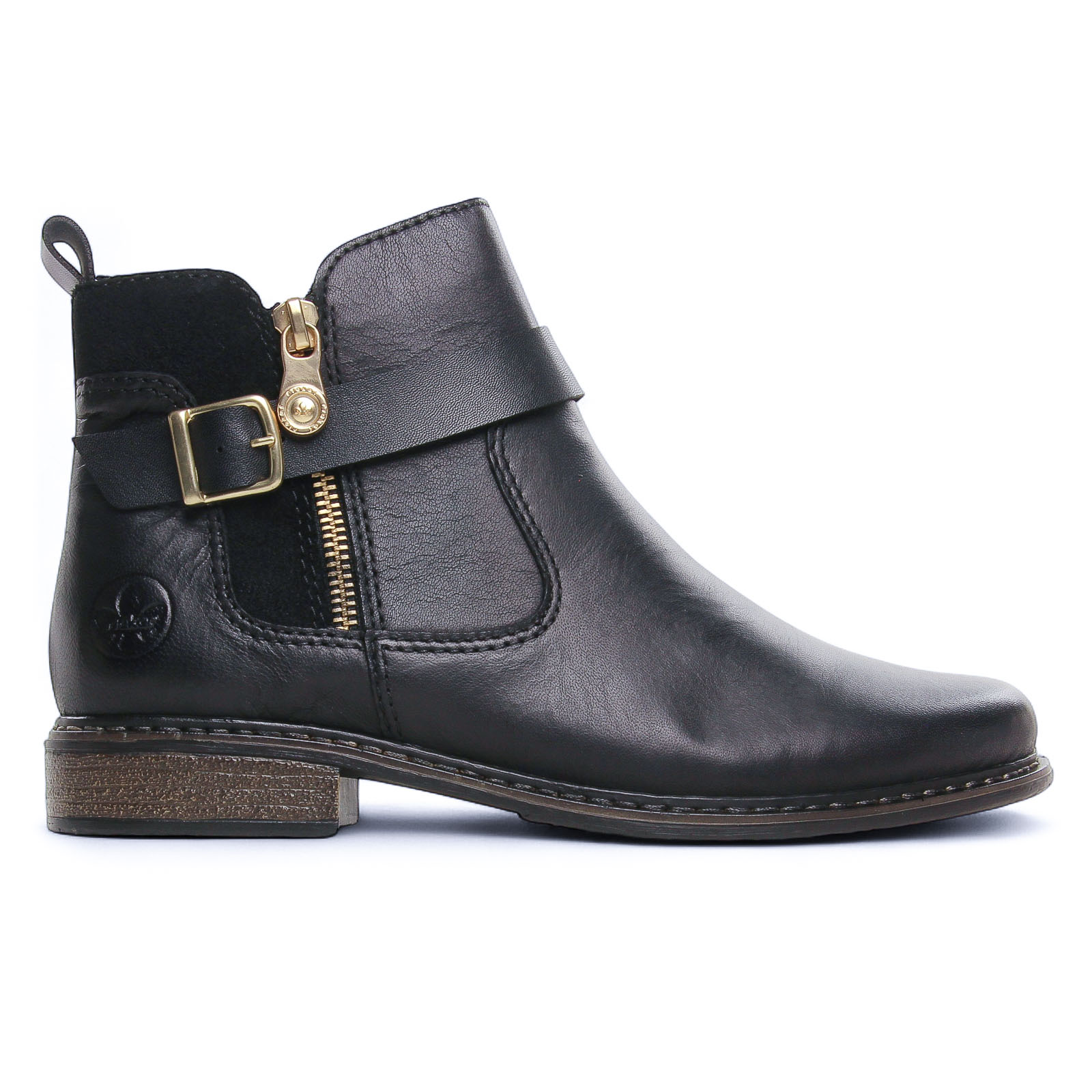 Bottines de la marque Rieker de couleur noir. Superbes boots influence Jodhpur, une tige en cuir noir, une doublure textile chaude, une première de propreté en textile également, une fermeture éclair doré décorative et une coté intérieur pour les chausser rapidement, bottines Rieker z4959 qui reviennent pour cette nouvelle collection Automne Hiver.