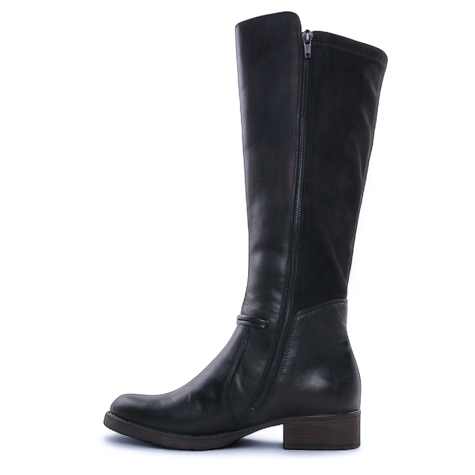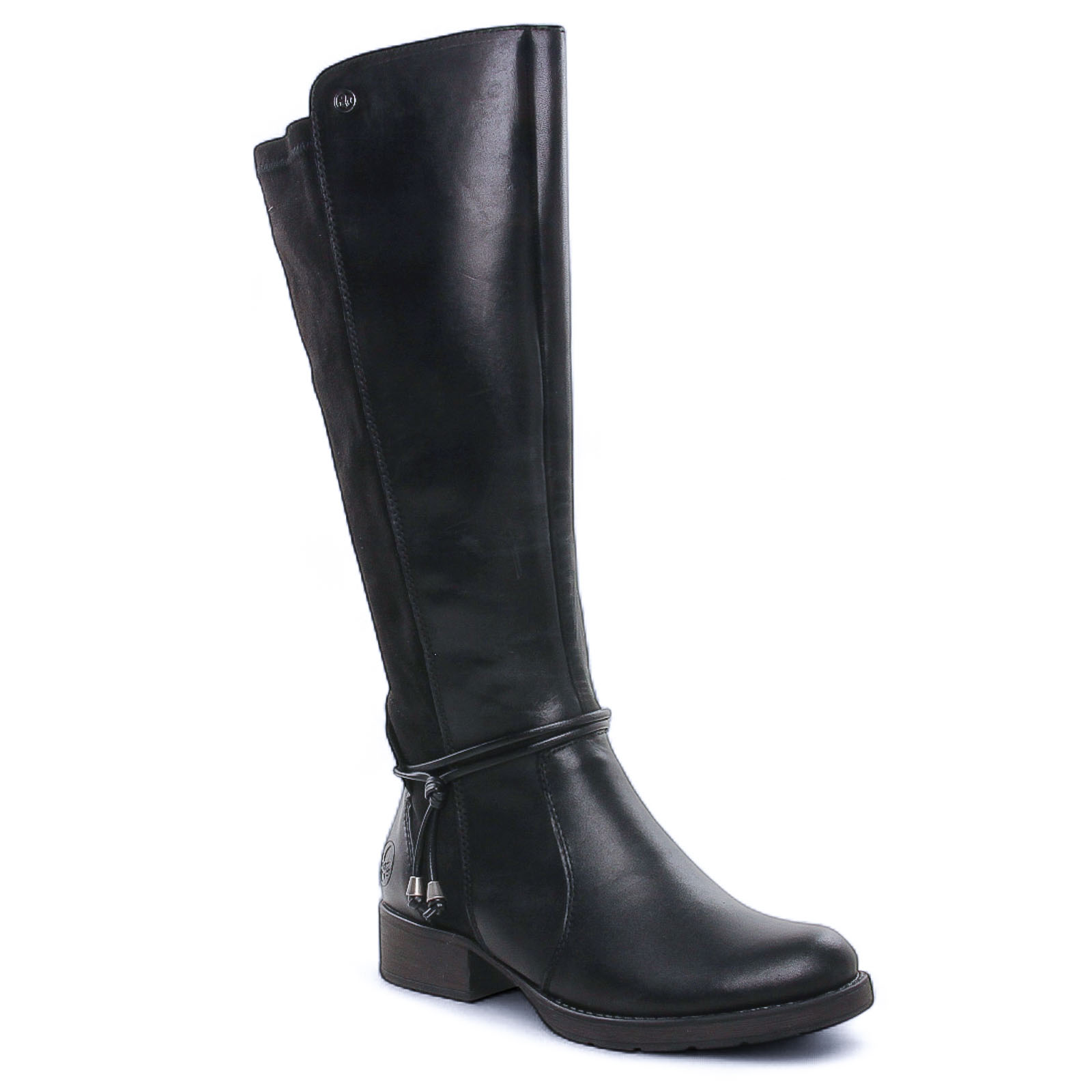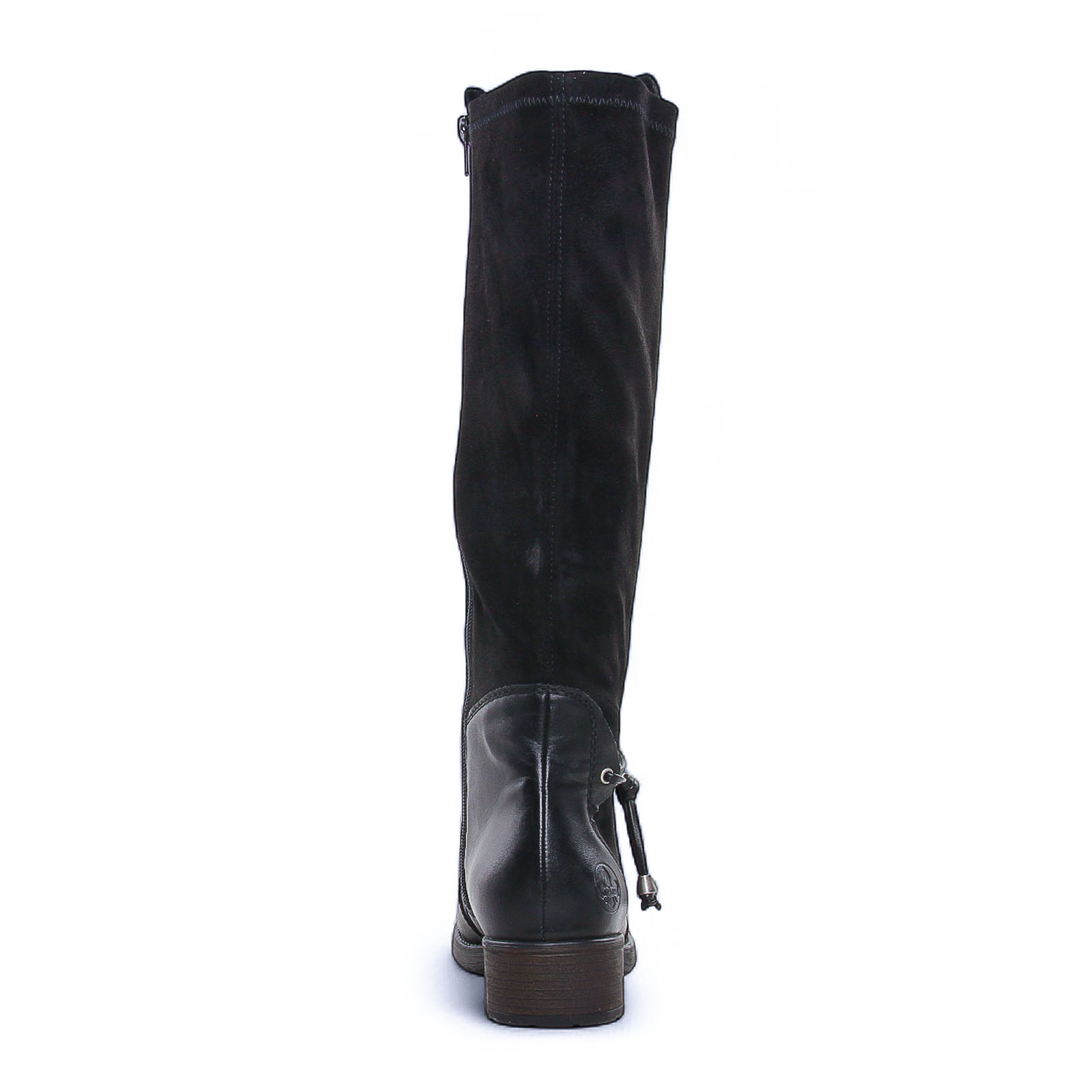 Bottes Stretch de la marque Rieker de couleur noir. Bottes cavalières avec un arrière de la tige extensible et une empeigne en cuir lisse, parfaites pour les mollets un peu fort, une botte qui s’adapte à vos formes grâce au système Rieker Vario, disponibles en cuir noir, botte de la nouvelle collection Rieker hiver !