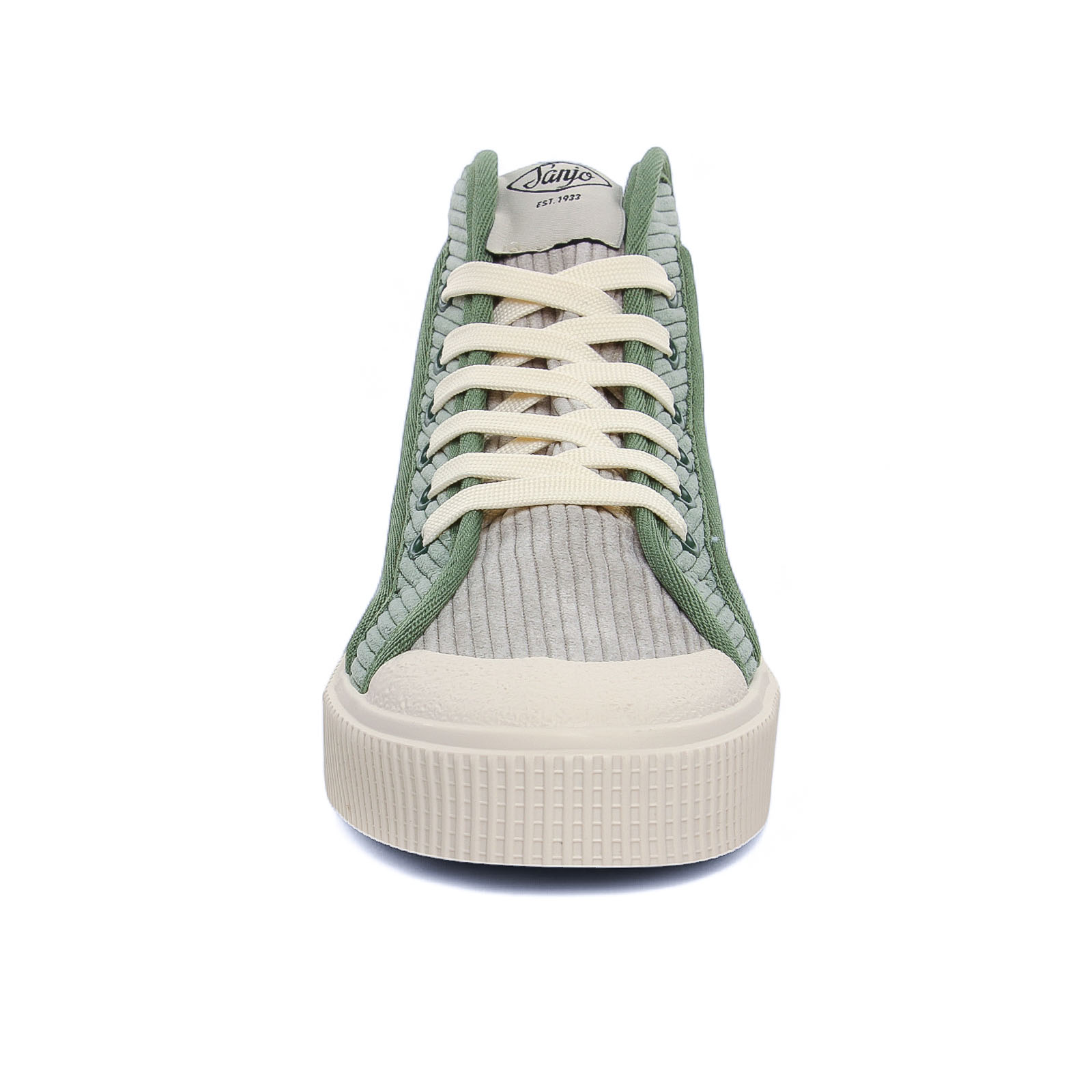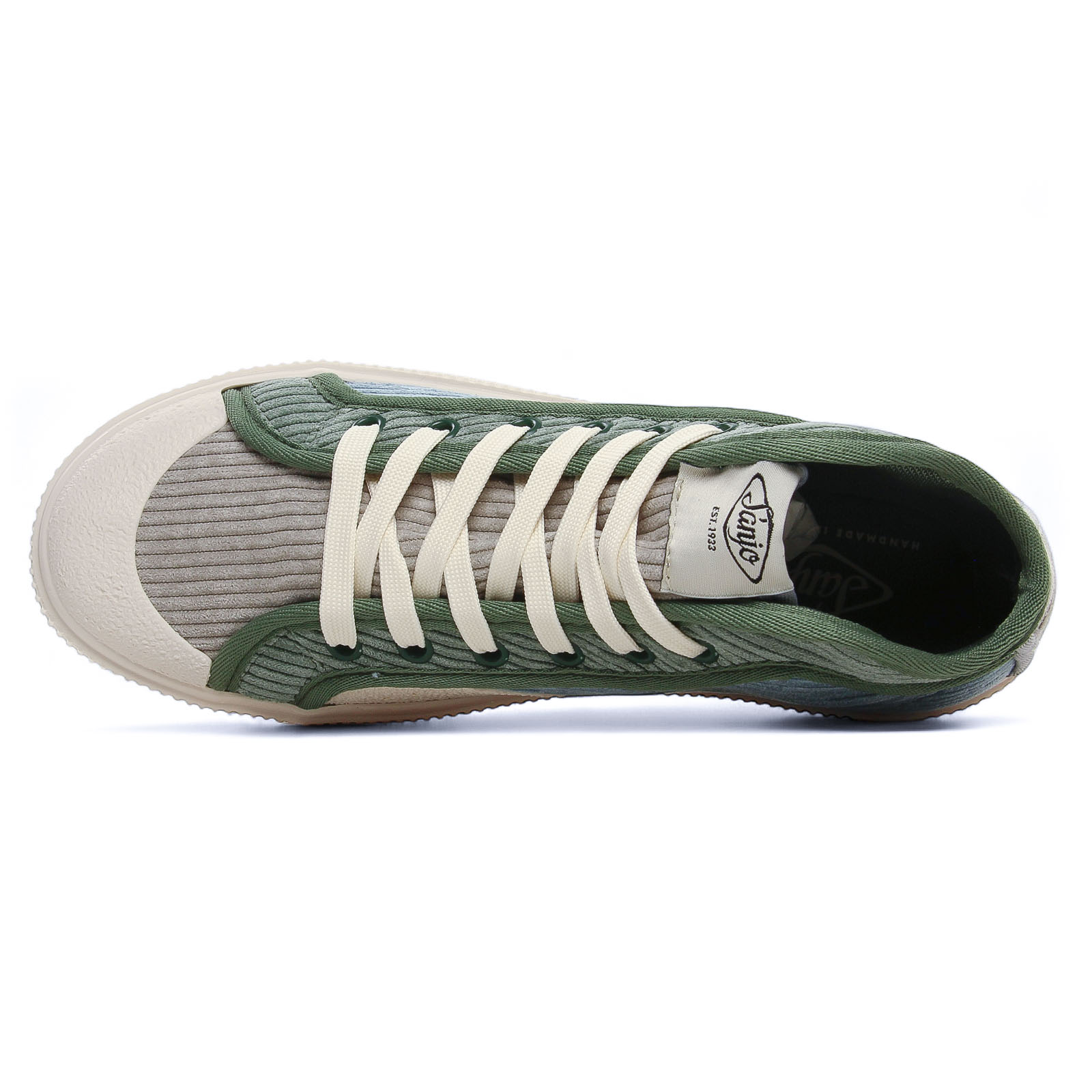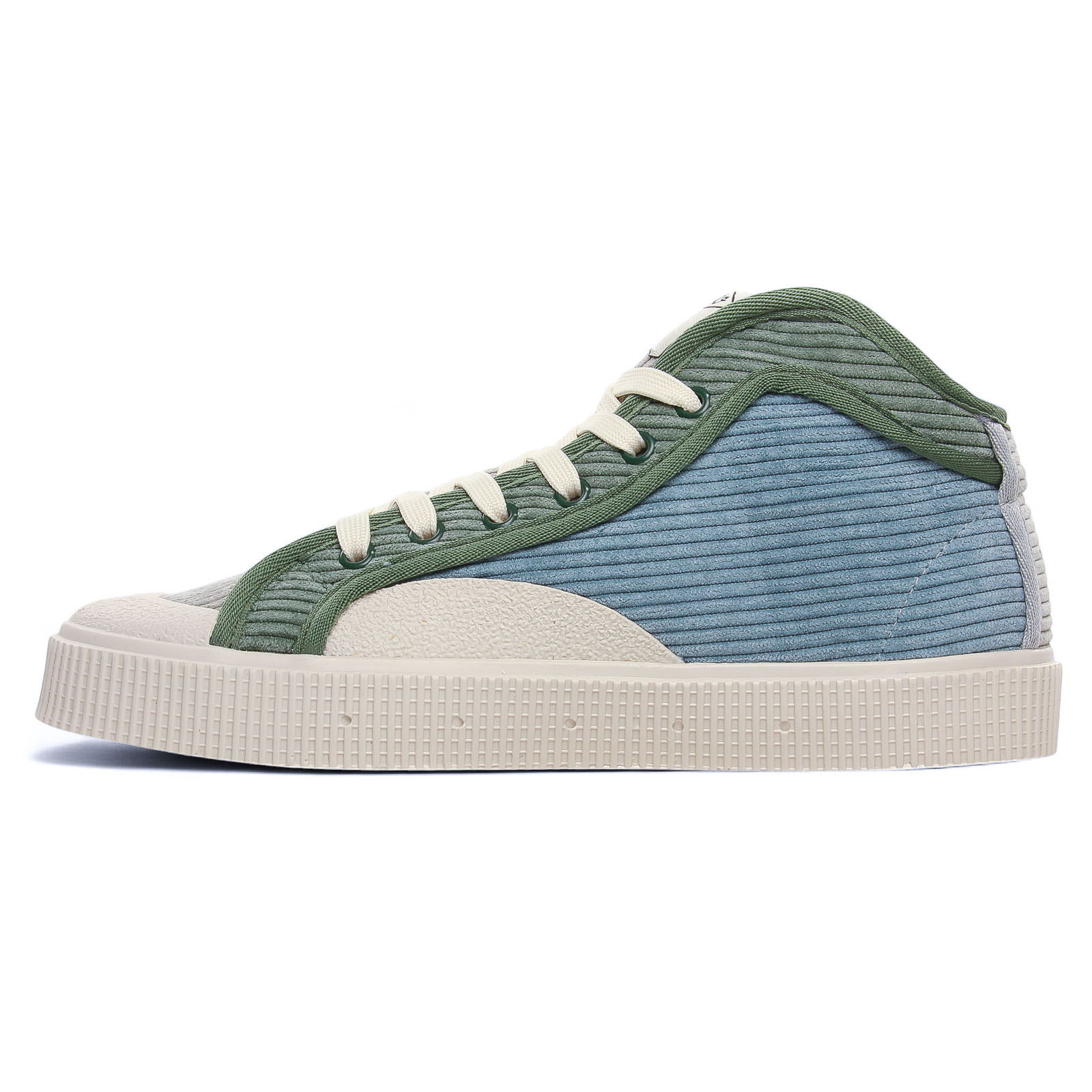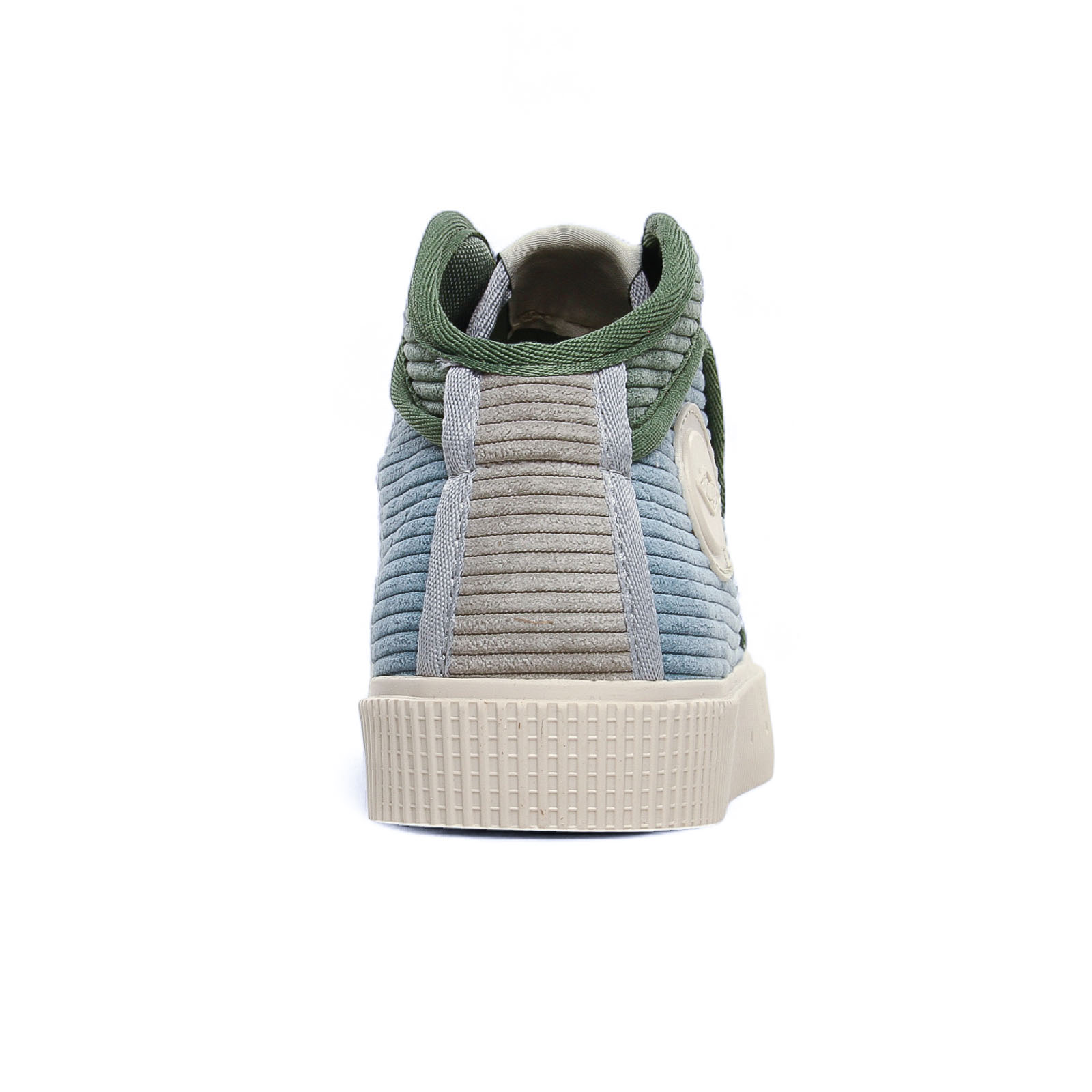 Baskets Mode de la marque Sanjo de couleur bleu vert. Superbes baskets originales signées SANJO, baskets mi montantes avec une tige textile velours côtelé ou effet lainage, doublées toile et première amortissante et amovible si besoin, des lacets blanc et sur le coté pastille logo type blanc, une semelle blanche crème : on adore !