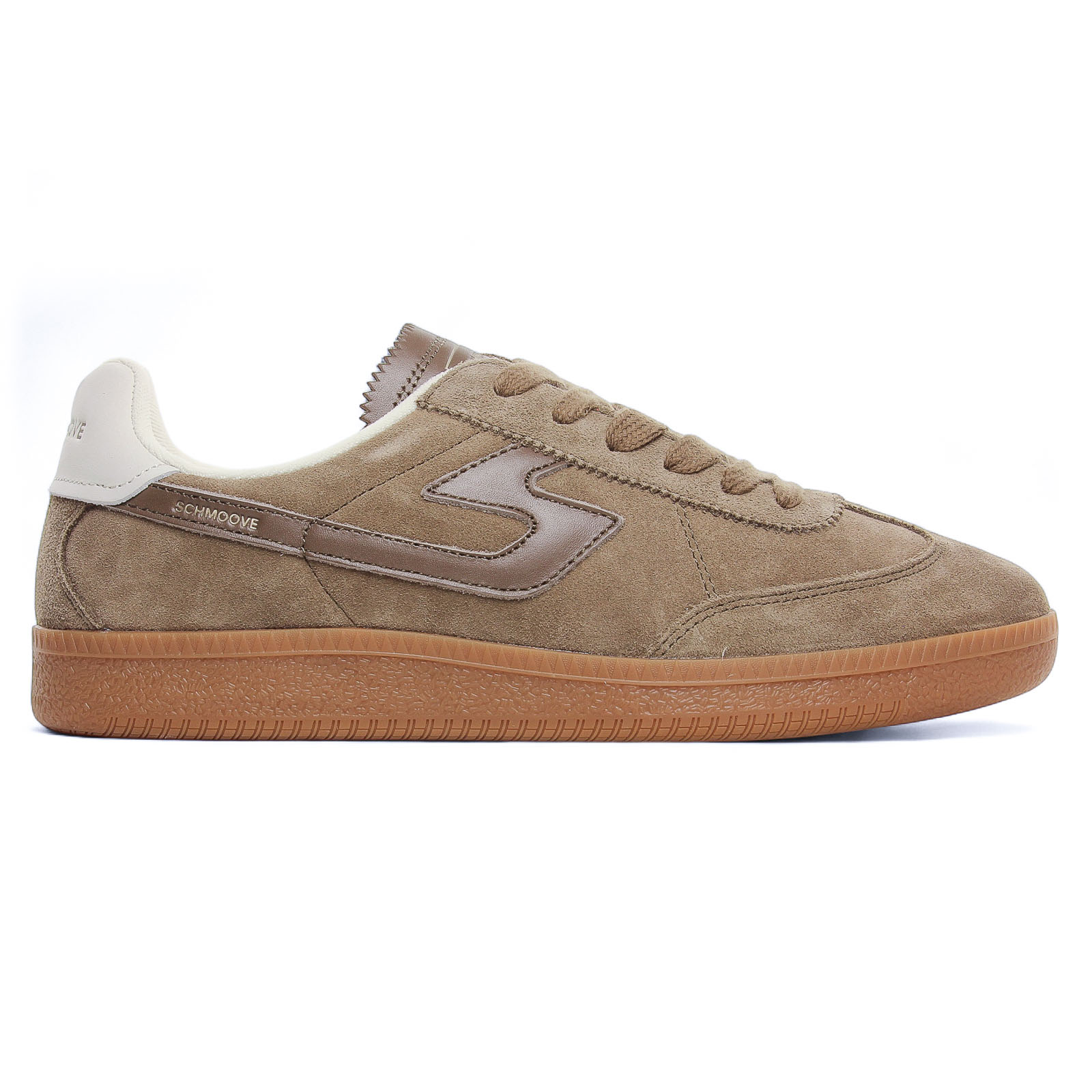 Tennis de la marque Schmoove de couleur beige taupe. Sneakers basses signées Schmoove, des tennis en cuir velours, doublées textile, parfaites pour un style chic et décontracté, plusieurs versions disponibles pour les Sheffield de la nouvelle collection automne hiver.