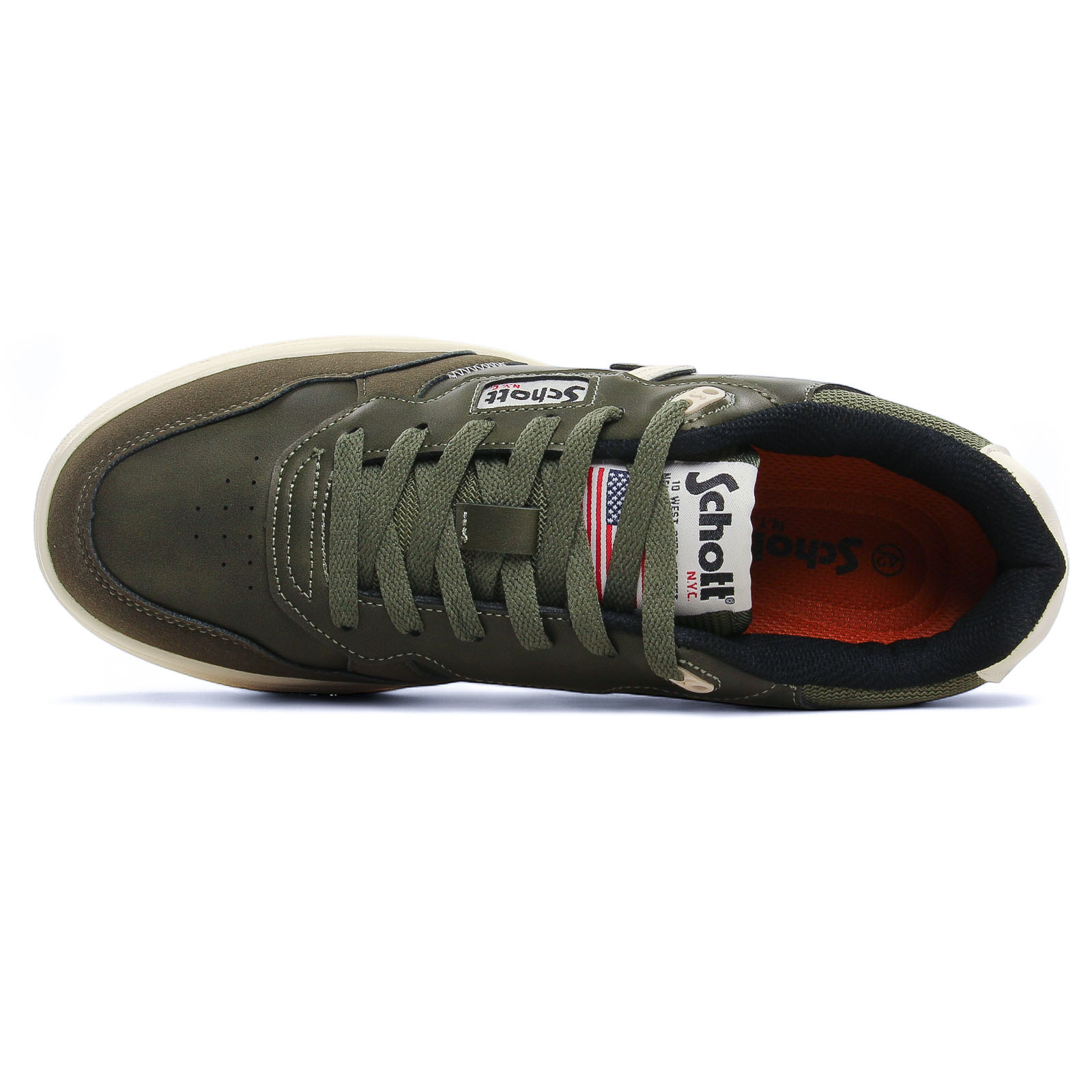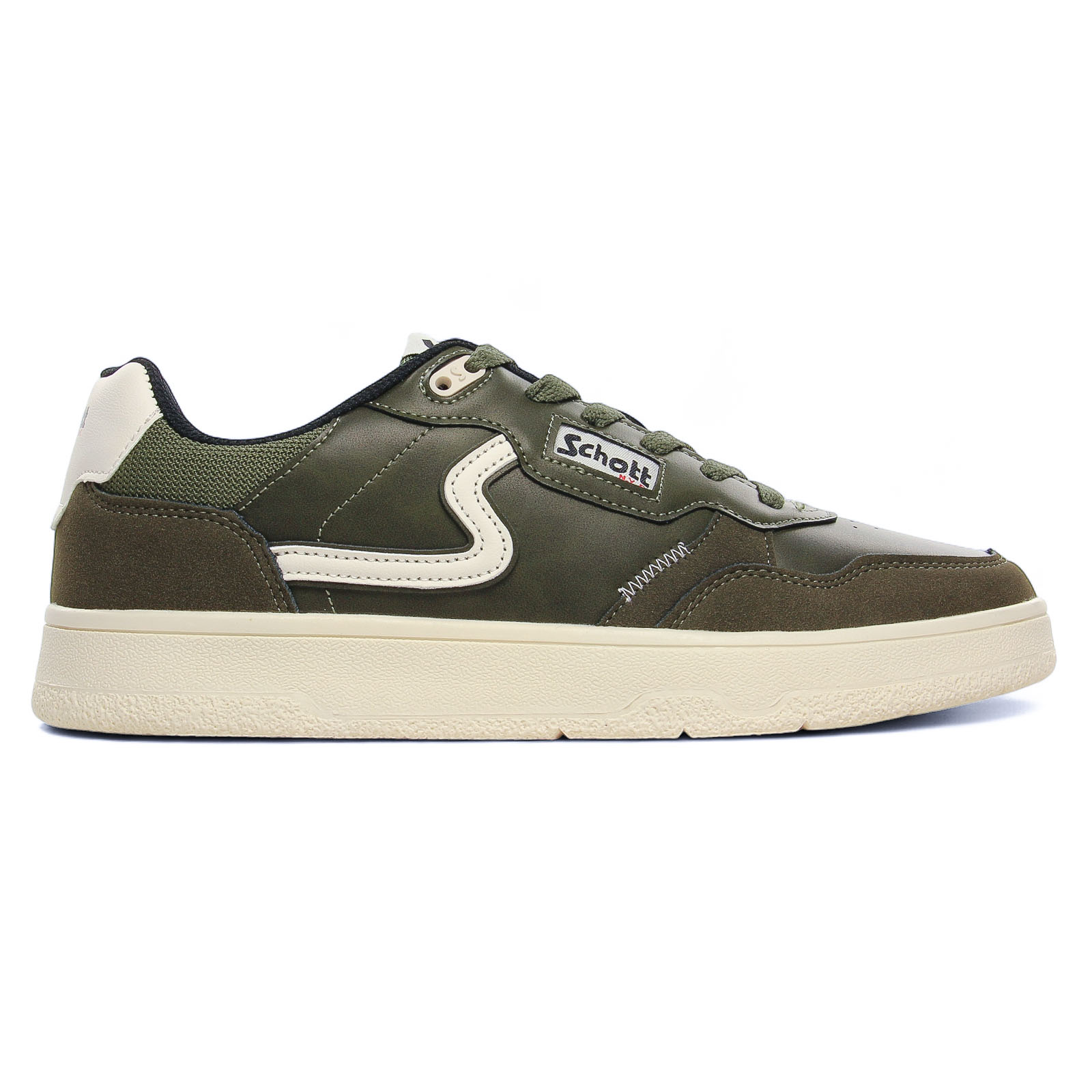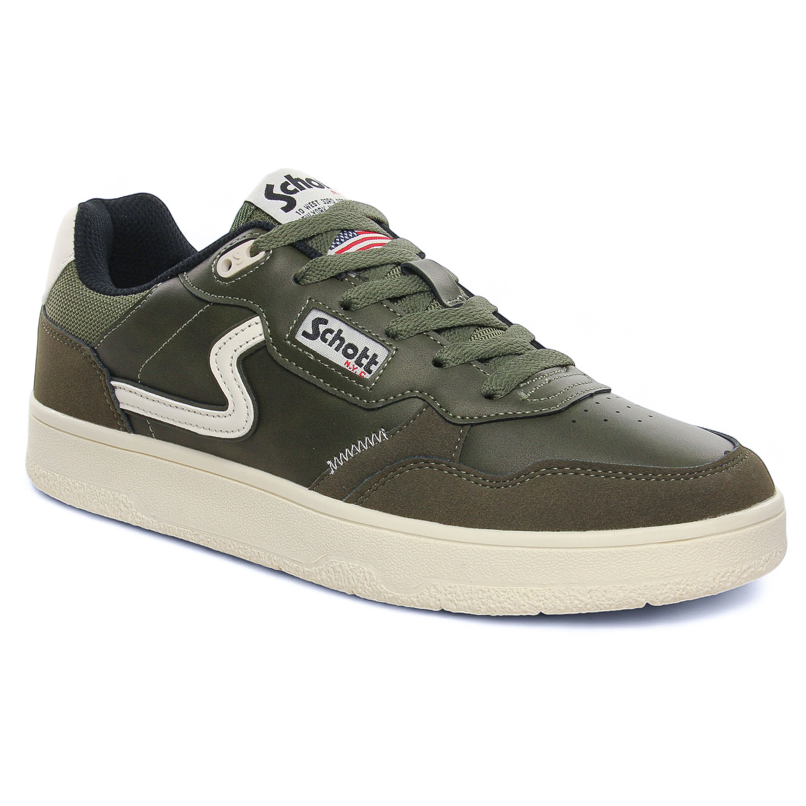 Tennis de la marque Schott de couleur vert kaki. Tennis basses disponibles dans 2 versions une marron et une kaki pour cette nouvelle collection automne, lacets ton sur ton, semelle en gomme souple, un petit prix pour beaucoup de style !