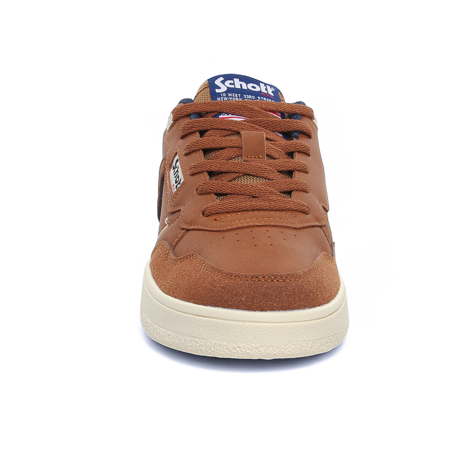 Tennis de la marque Schott de couleur marron. Tennis basses disponibles dans 2 versions une marron et une kaki pour cette nouvelle collection automne, lacets ton sur ton, semelle en gomme souple, un petit prix pour beaucoup de style !