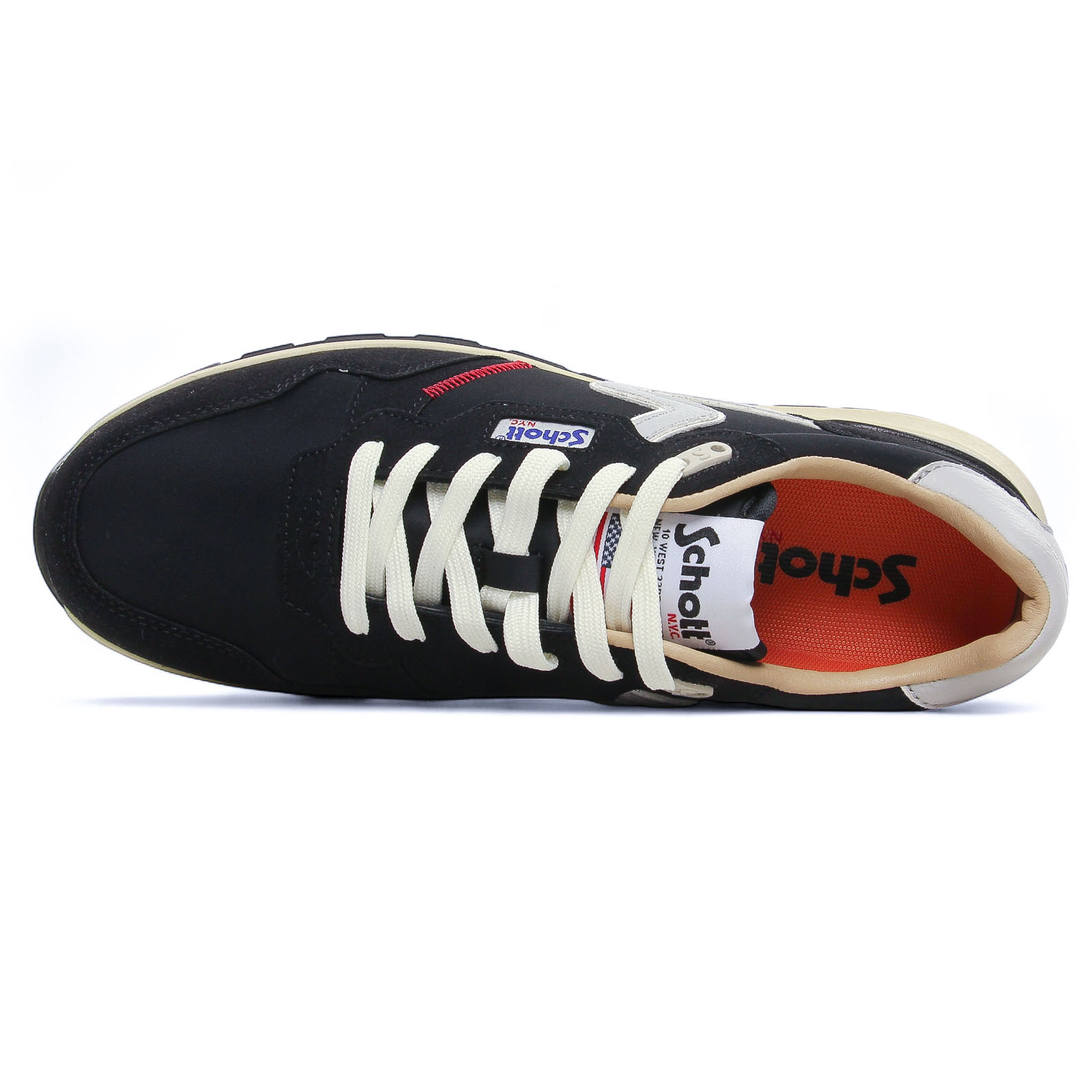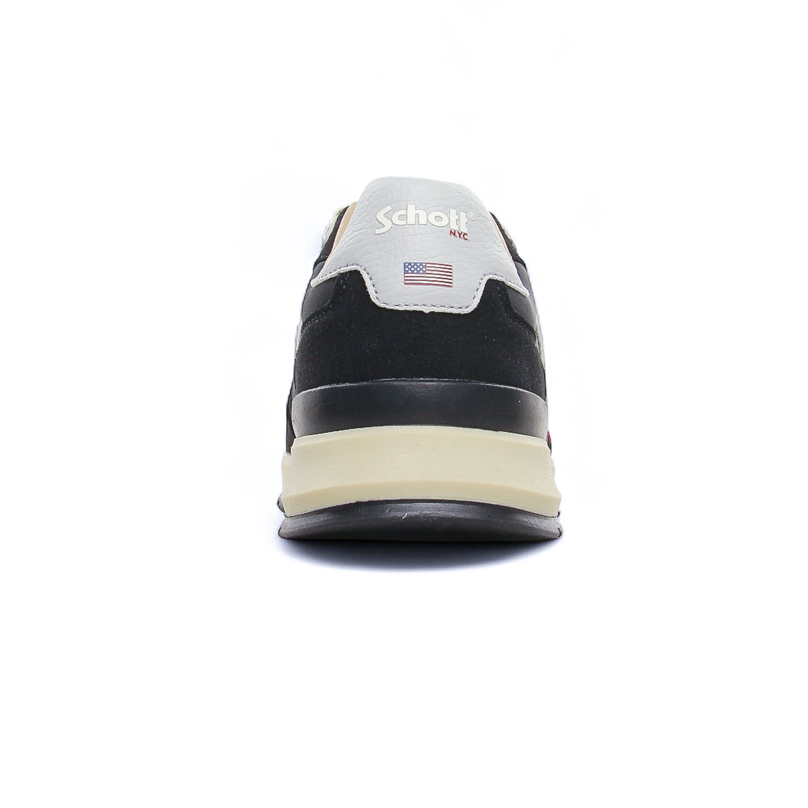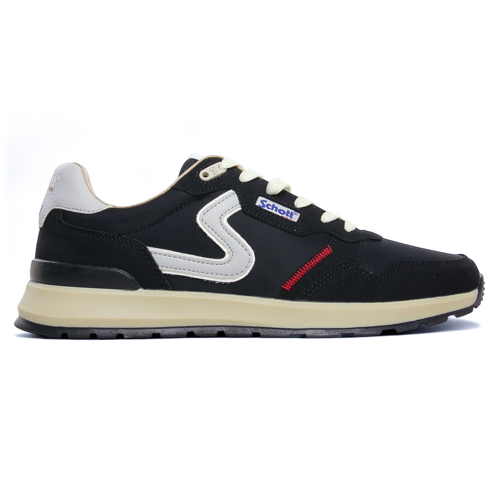 Tennis de la marque Schott de couleur noir. Sneakers basses style running, tennis disponibles en noir, marine et jaune pour cette nouvelle collection 2025, lacets blancs, semelle texturée, une première amovible, un petit prix pour beaucoup de style !