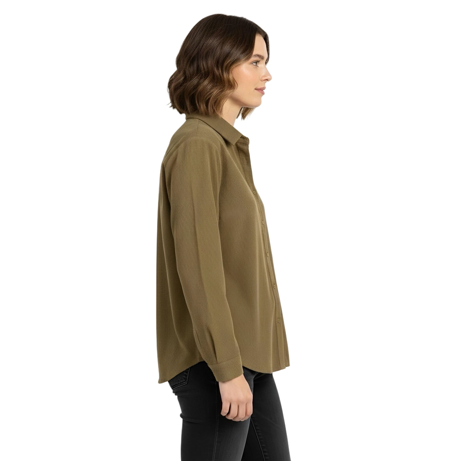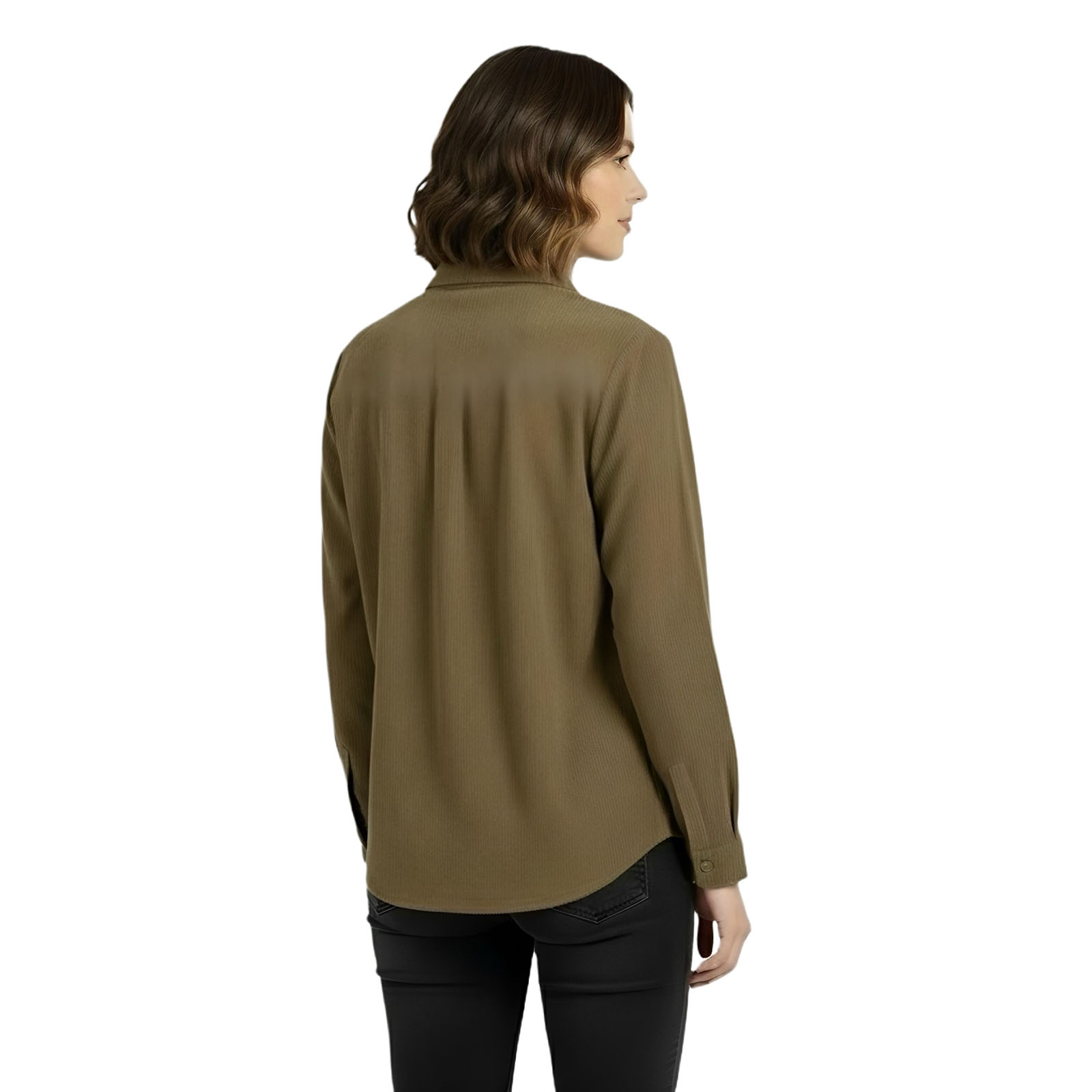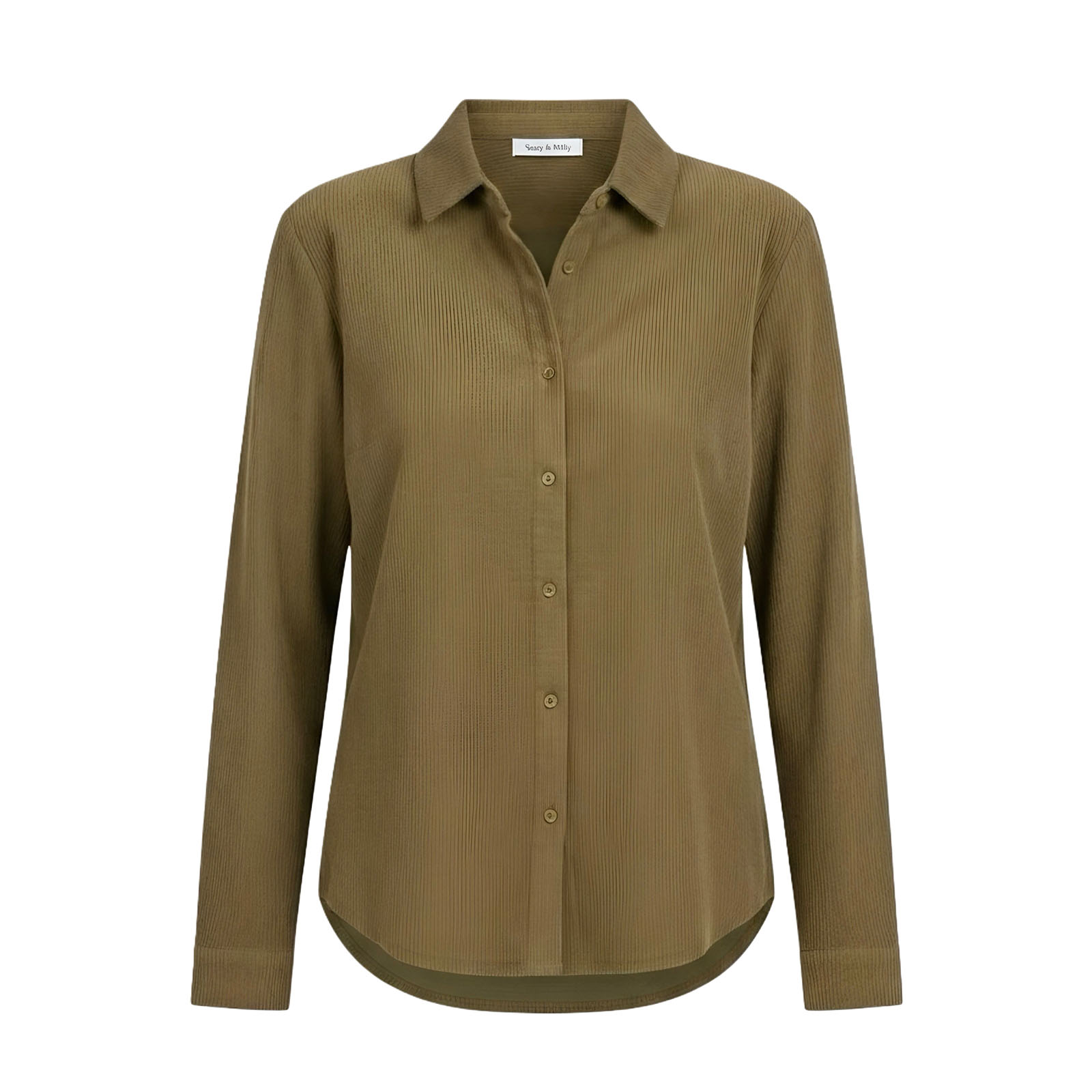 Chemisiers de la marque Suzzy et Milly de couleur vert kaki. Cette chemise kaki ou bordeaux est une pièce décontractée et polyvalente, confectionnée dans un tissu à fines côtes pour un style moderne. Avec sa coupe droite classique, son col chemisier et ses boutons assortis, elle offre un confort facile à porter et une élégance casual. Associez-la à un jean noir pour un contraste chic et une tenue idéale pour le quotidien.
